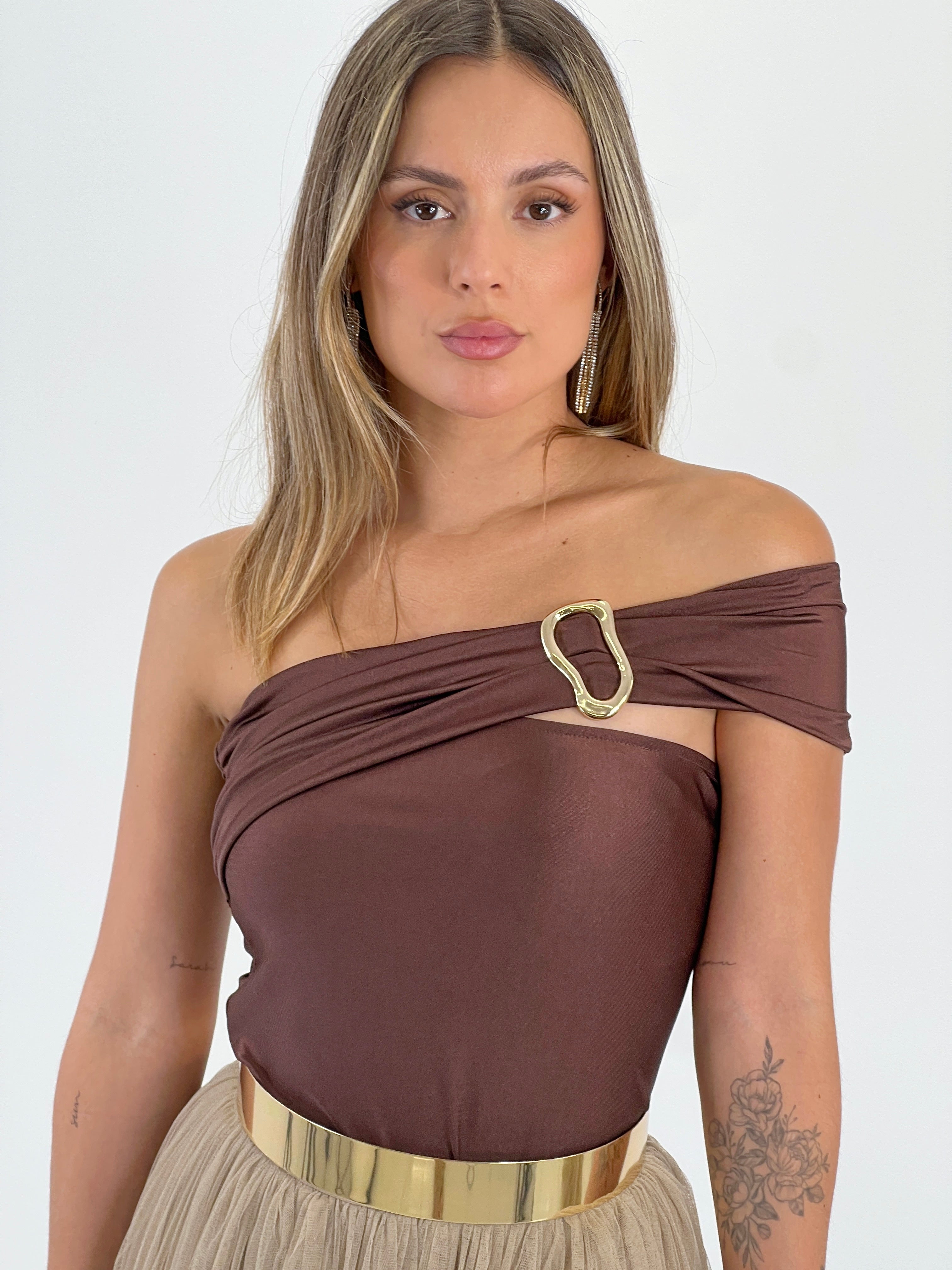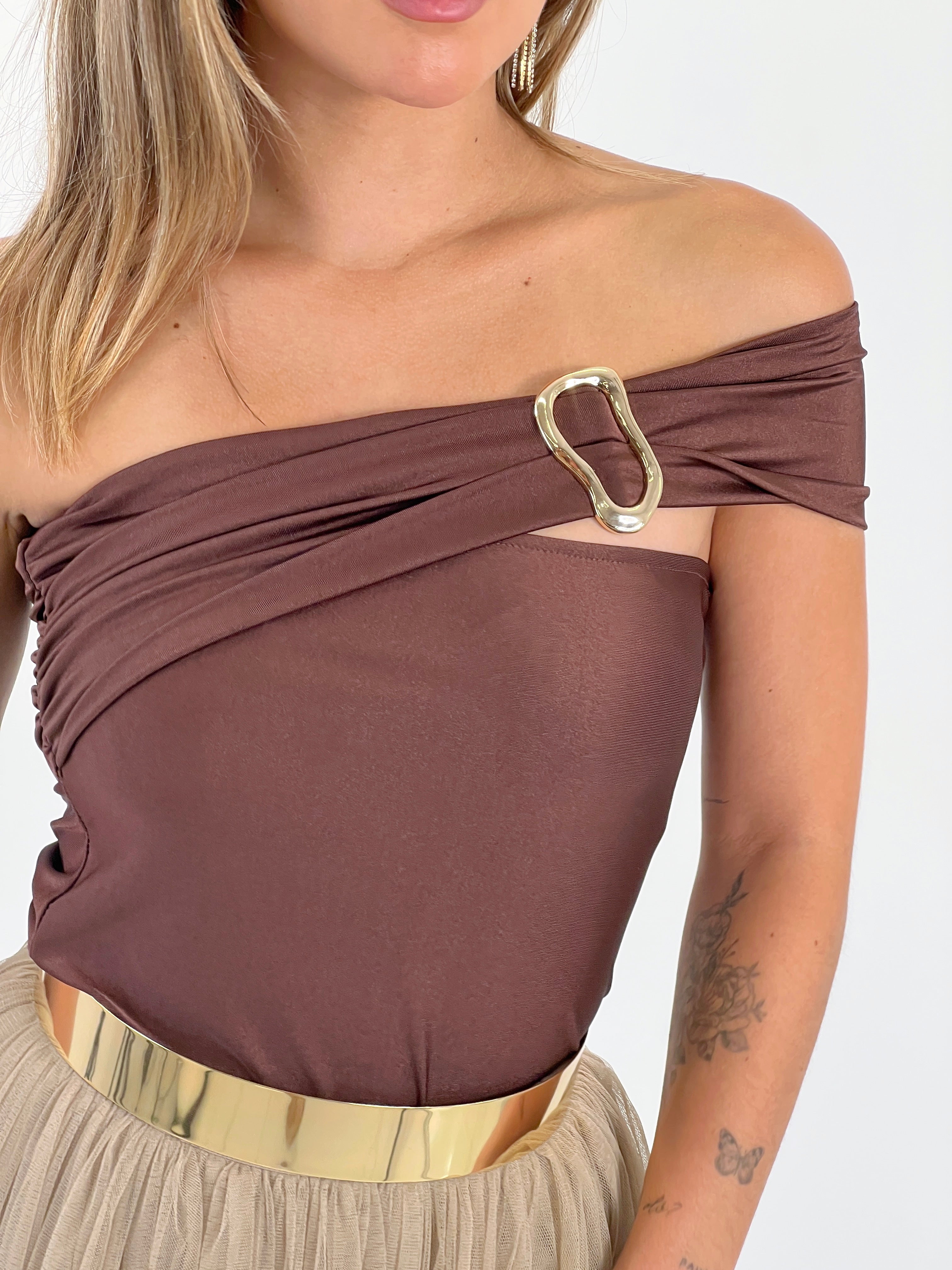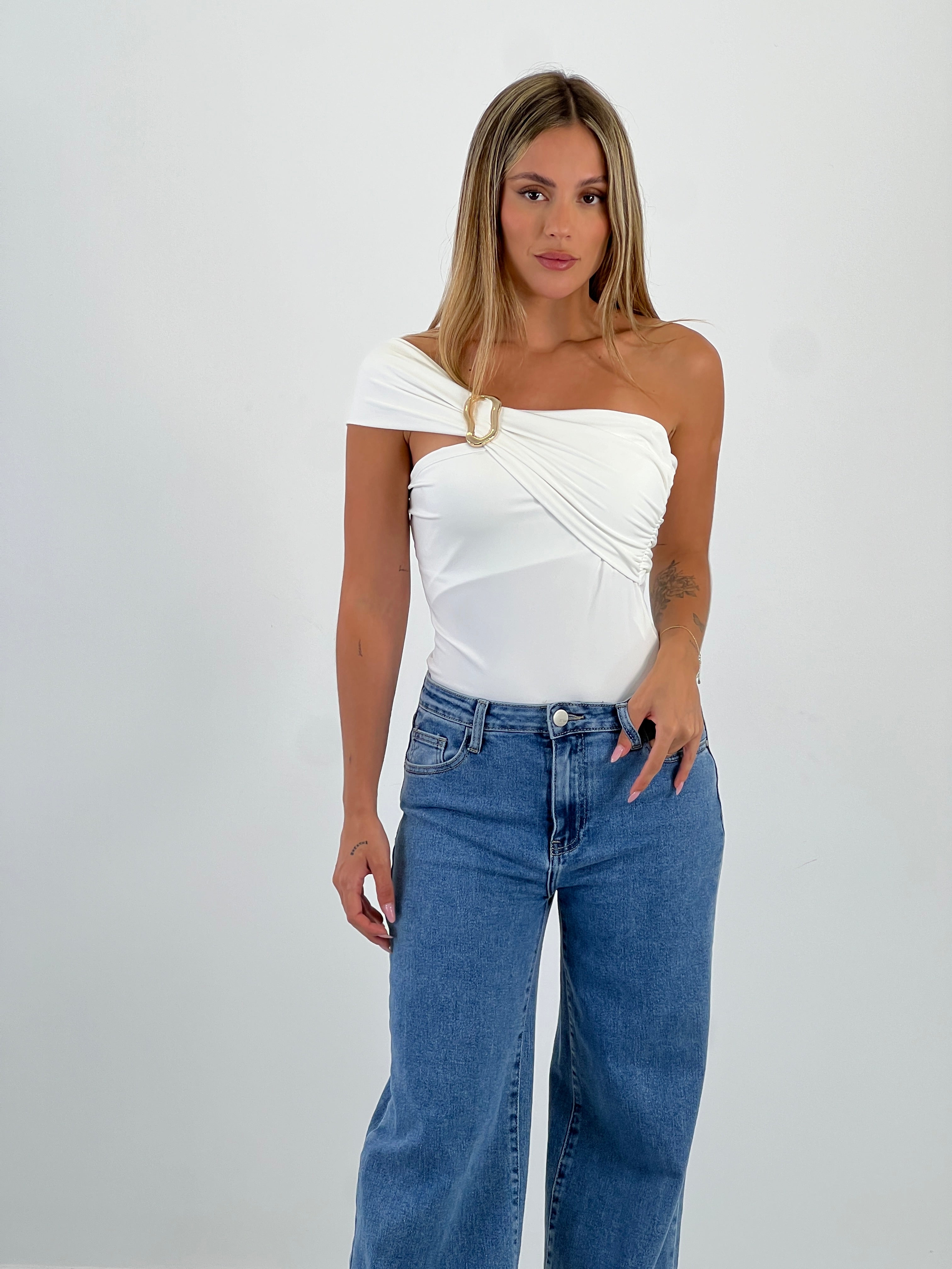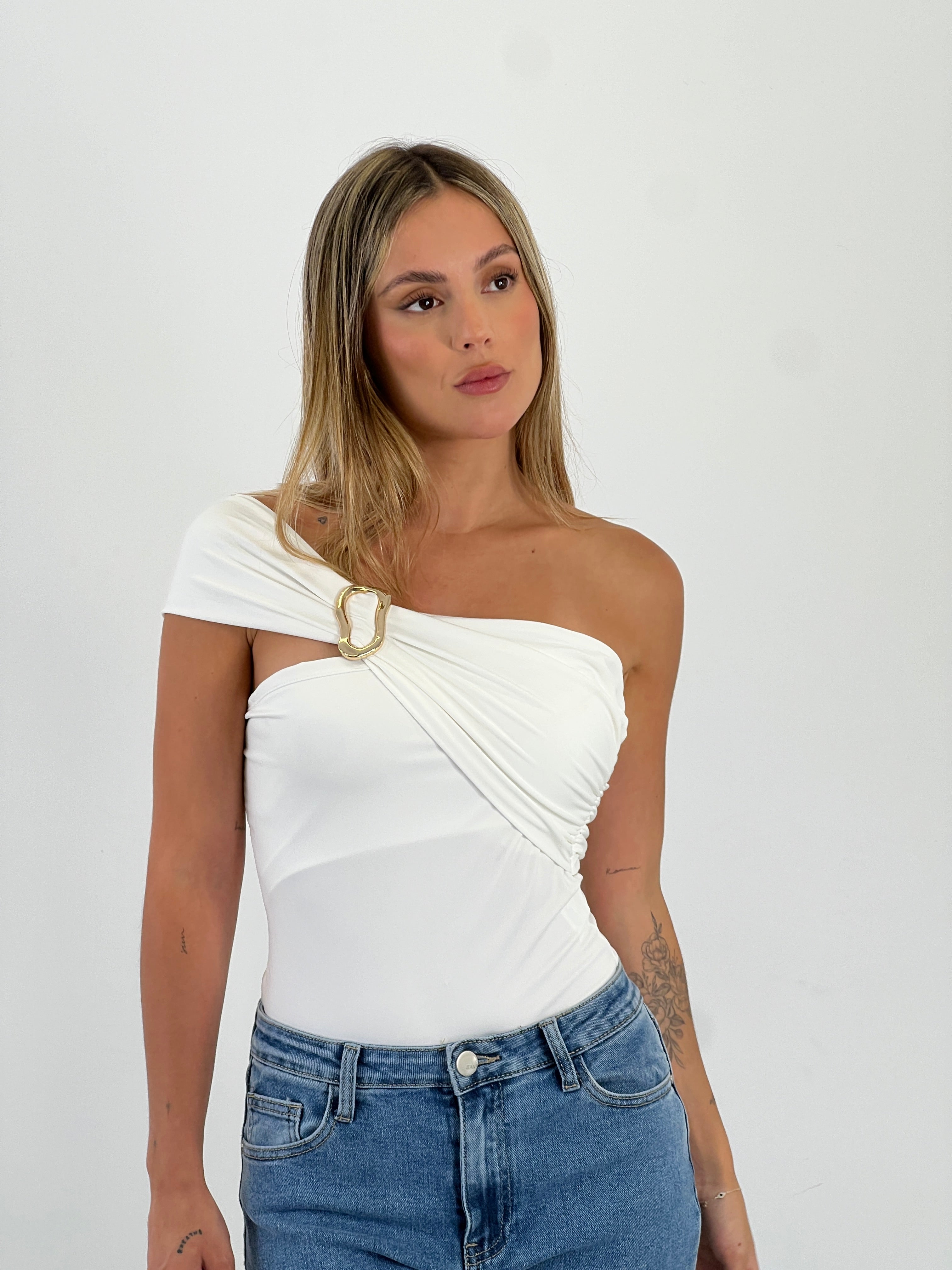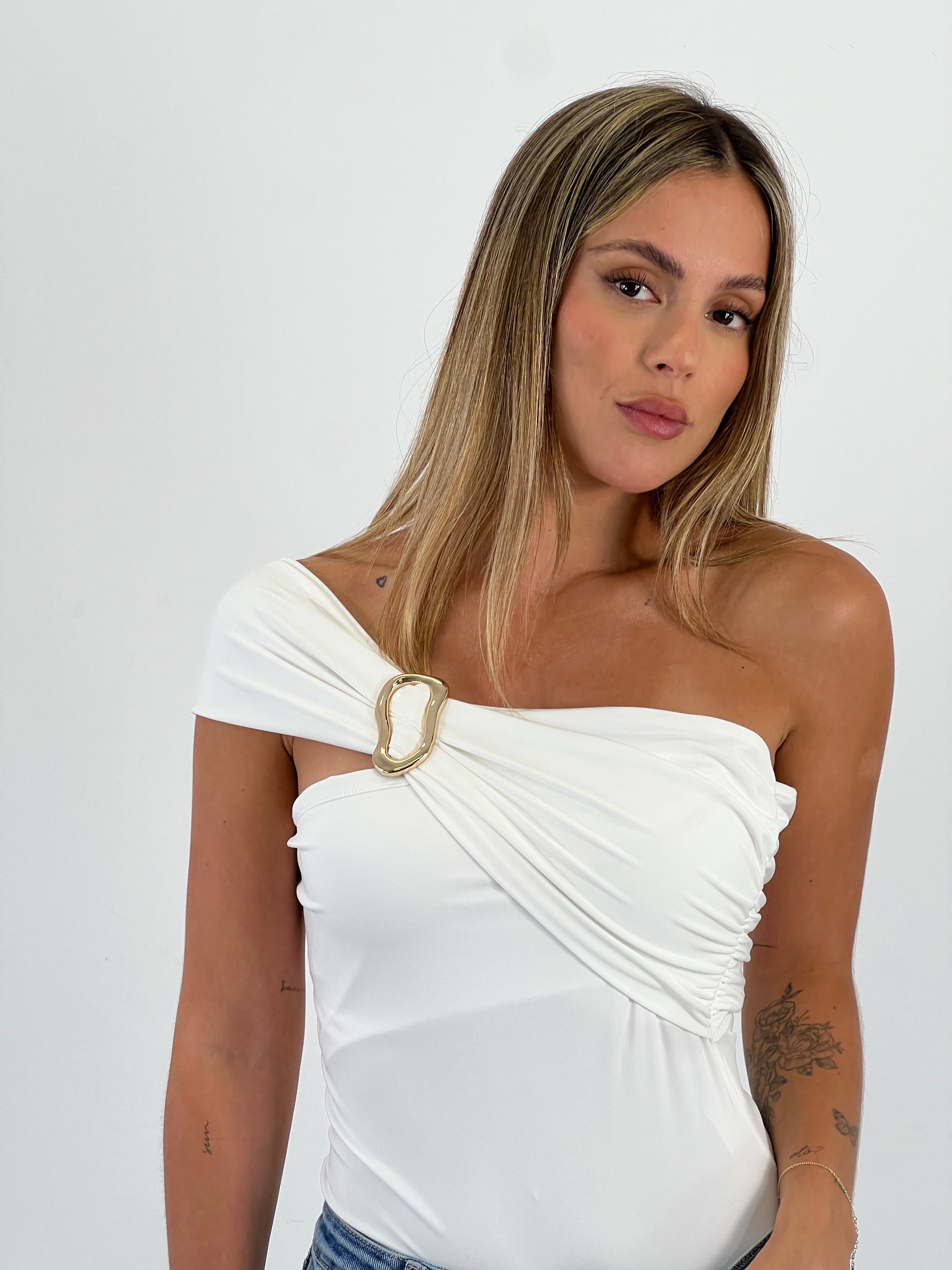 El body asimétrico con abalorio y palabra de honor es elegante y moderno. Su diseño único y versátil permite una gran variedad de combinaciones de ropa. Perfecto para una ocasión especial o para un look casual sofisticado.