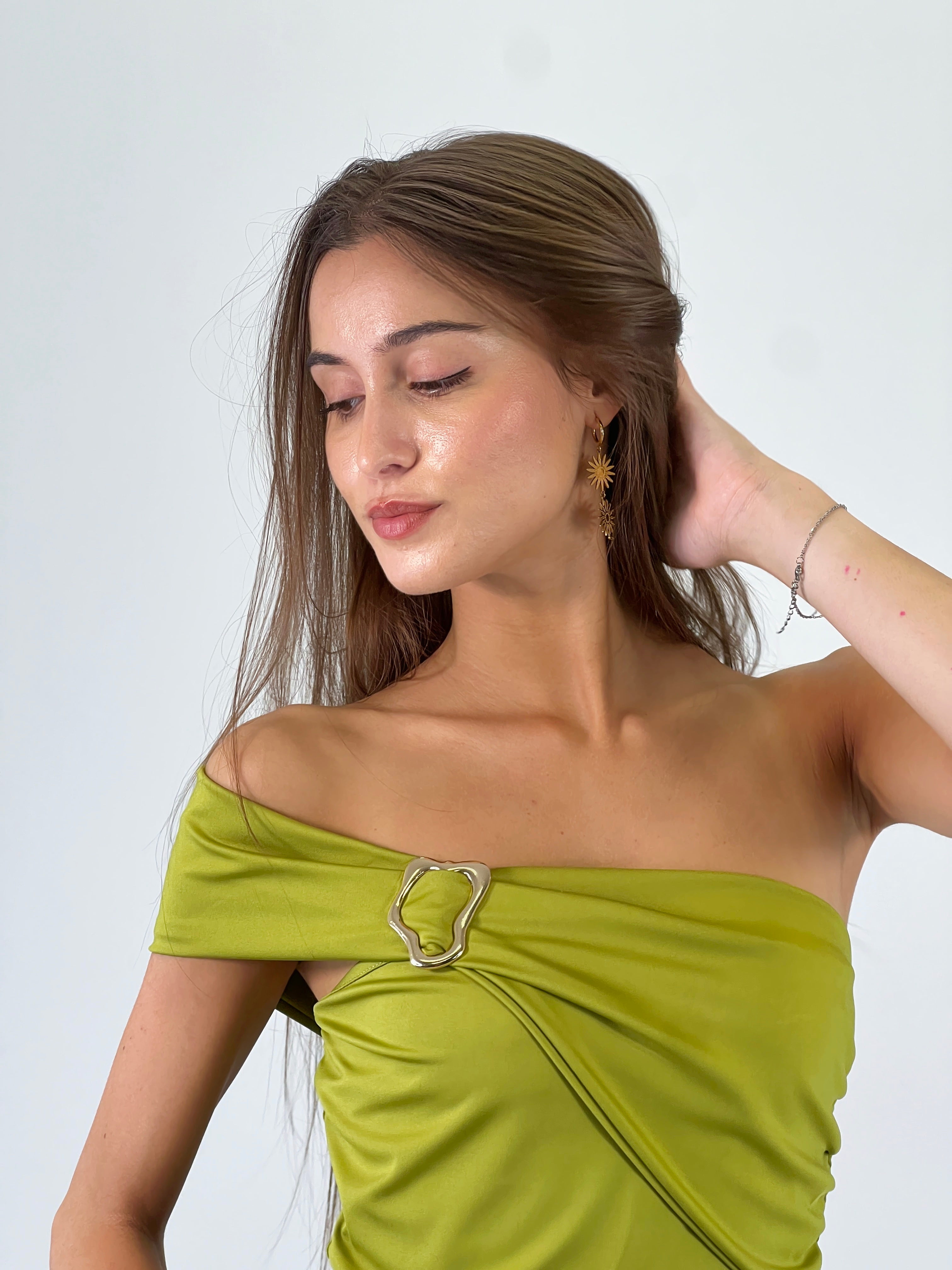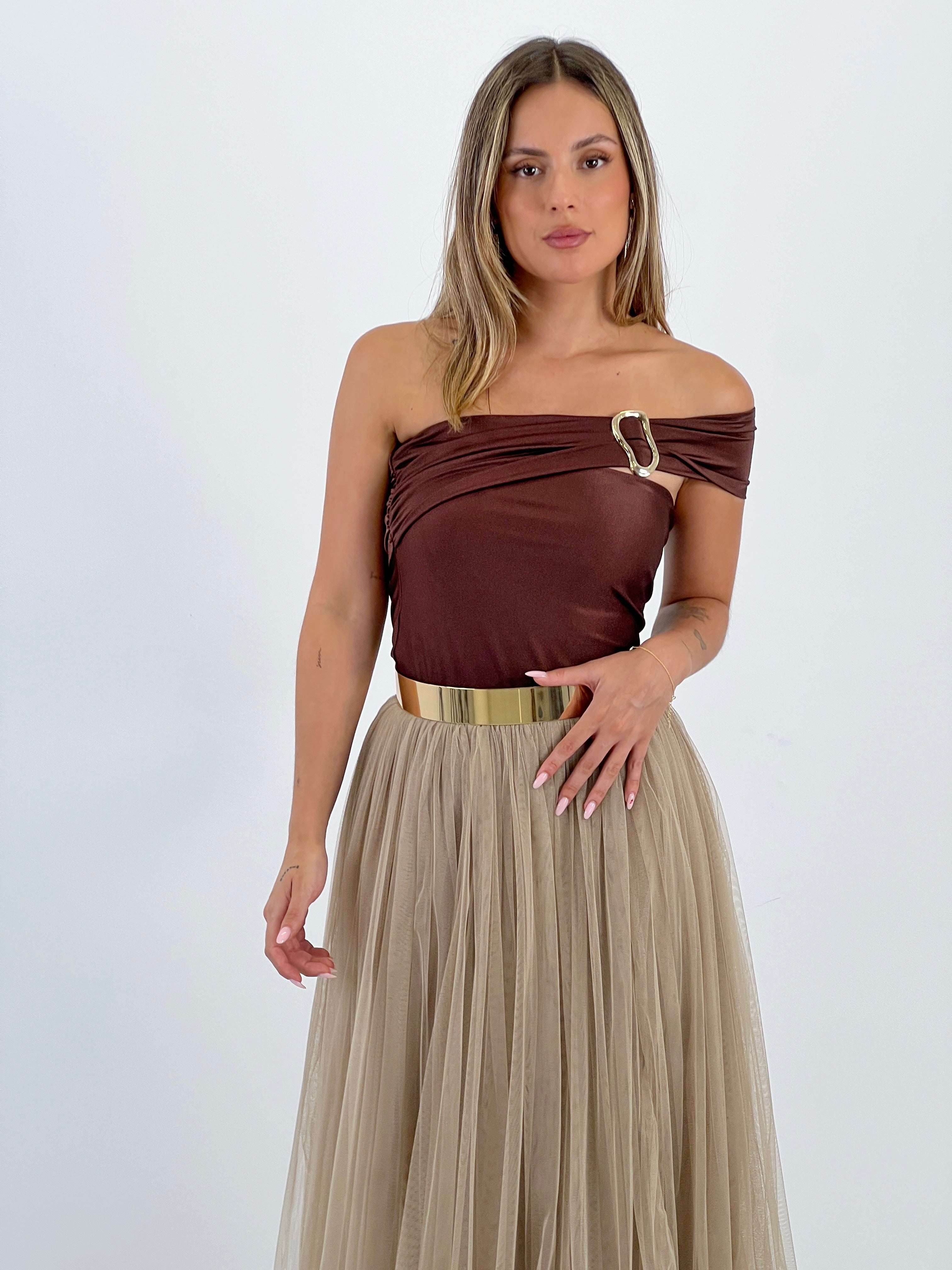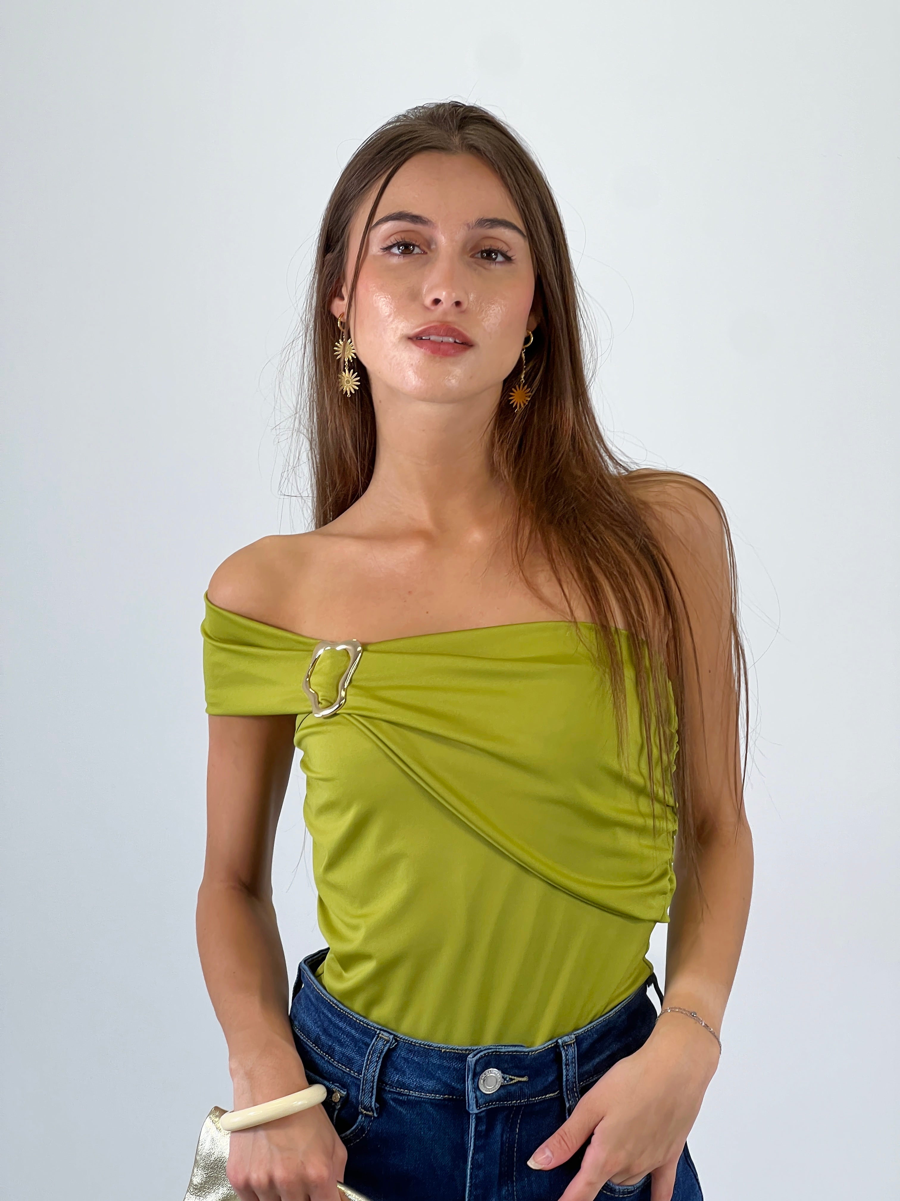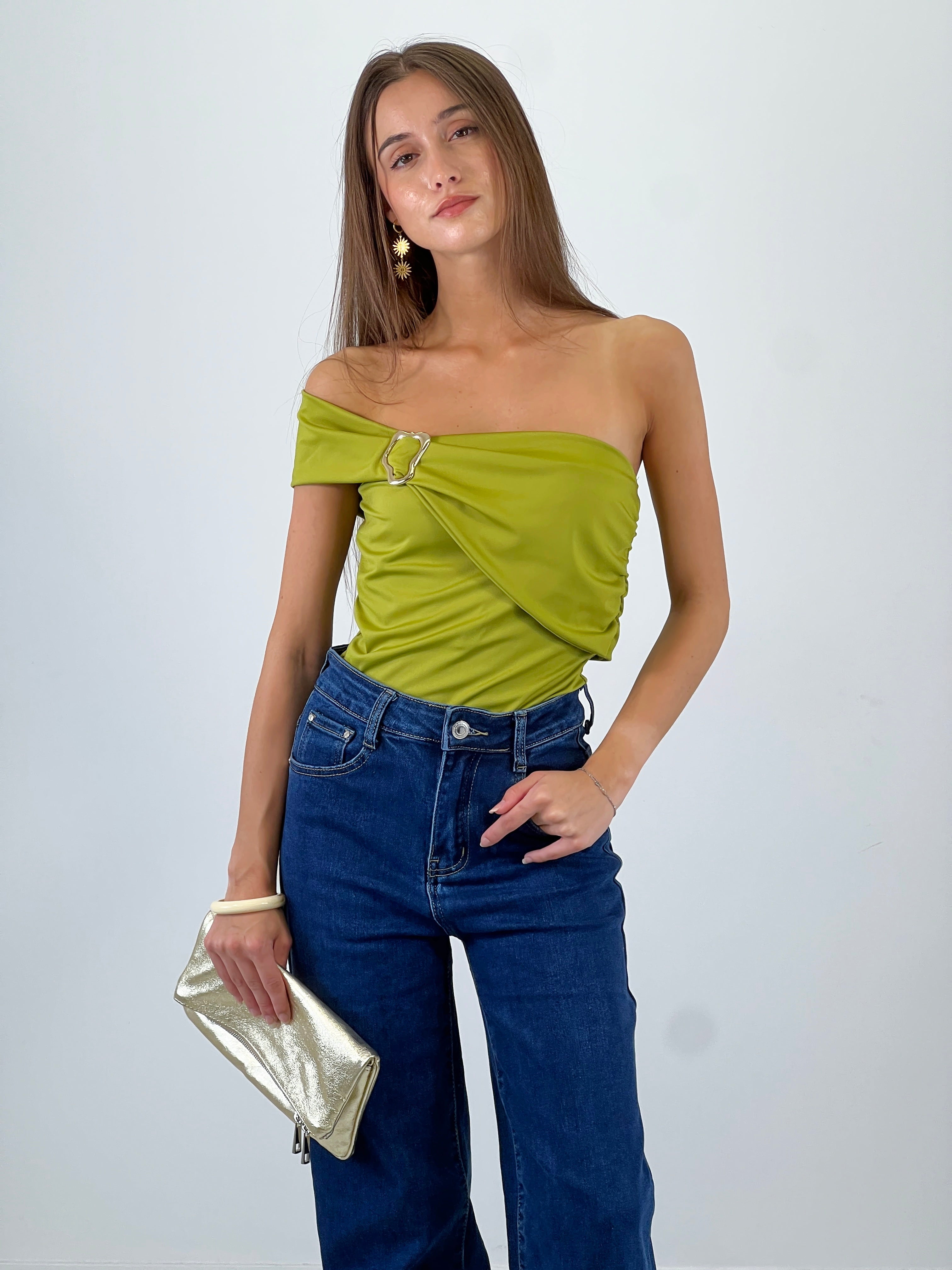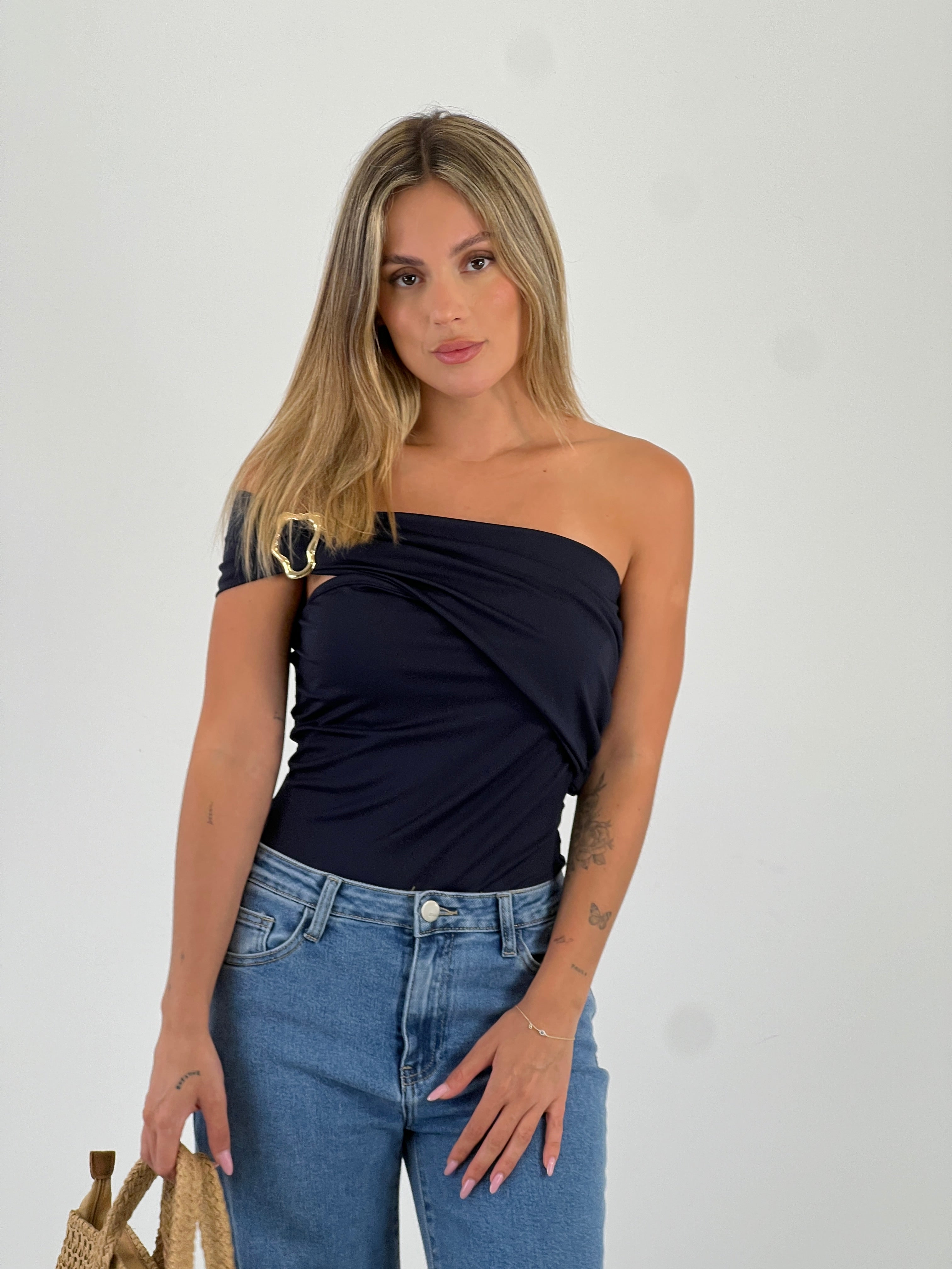 El body asimétrico con abalorio y palabra de honor es elegante y moderno. Su diseño único y versátil permite una gran variedad de combinaciones de ropa. Perfecto para una ocasión especial o para un look casual sofisticado.