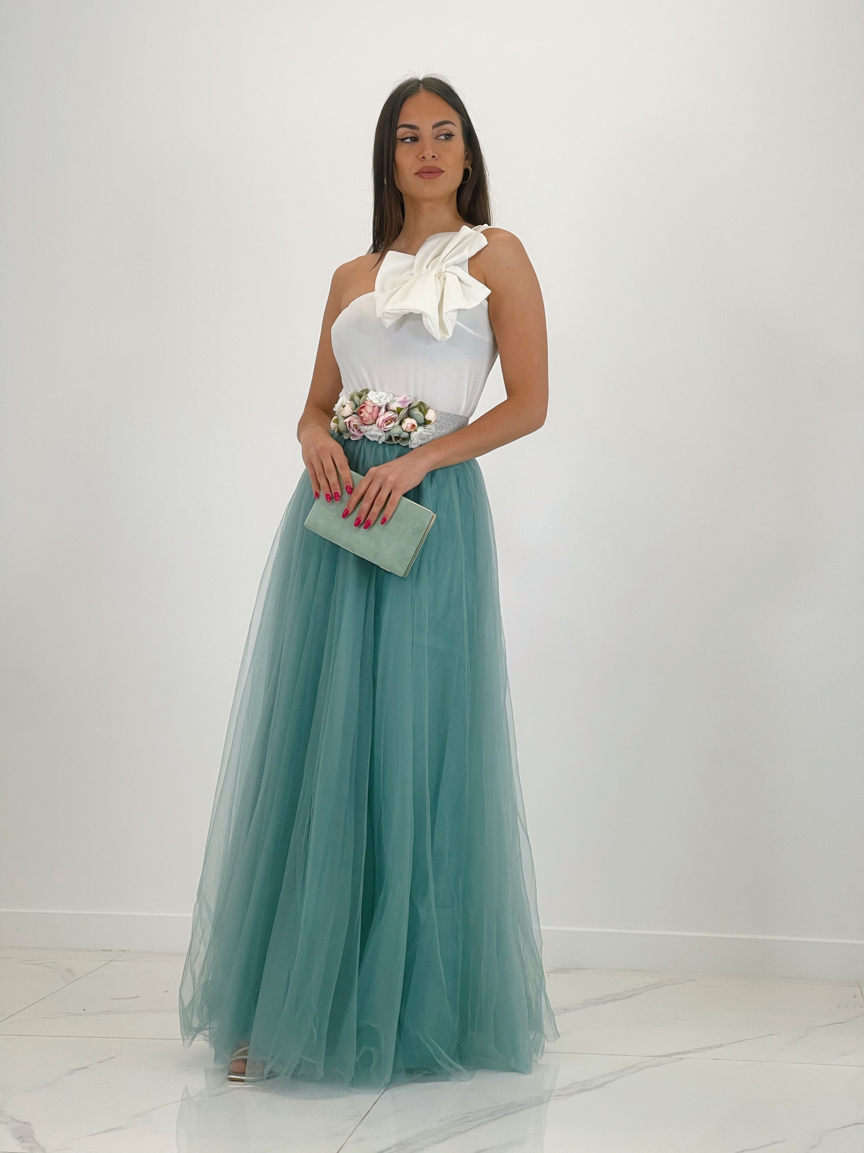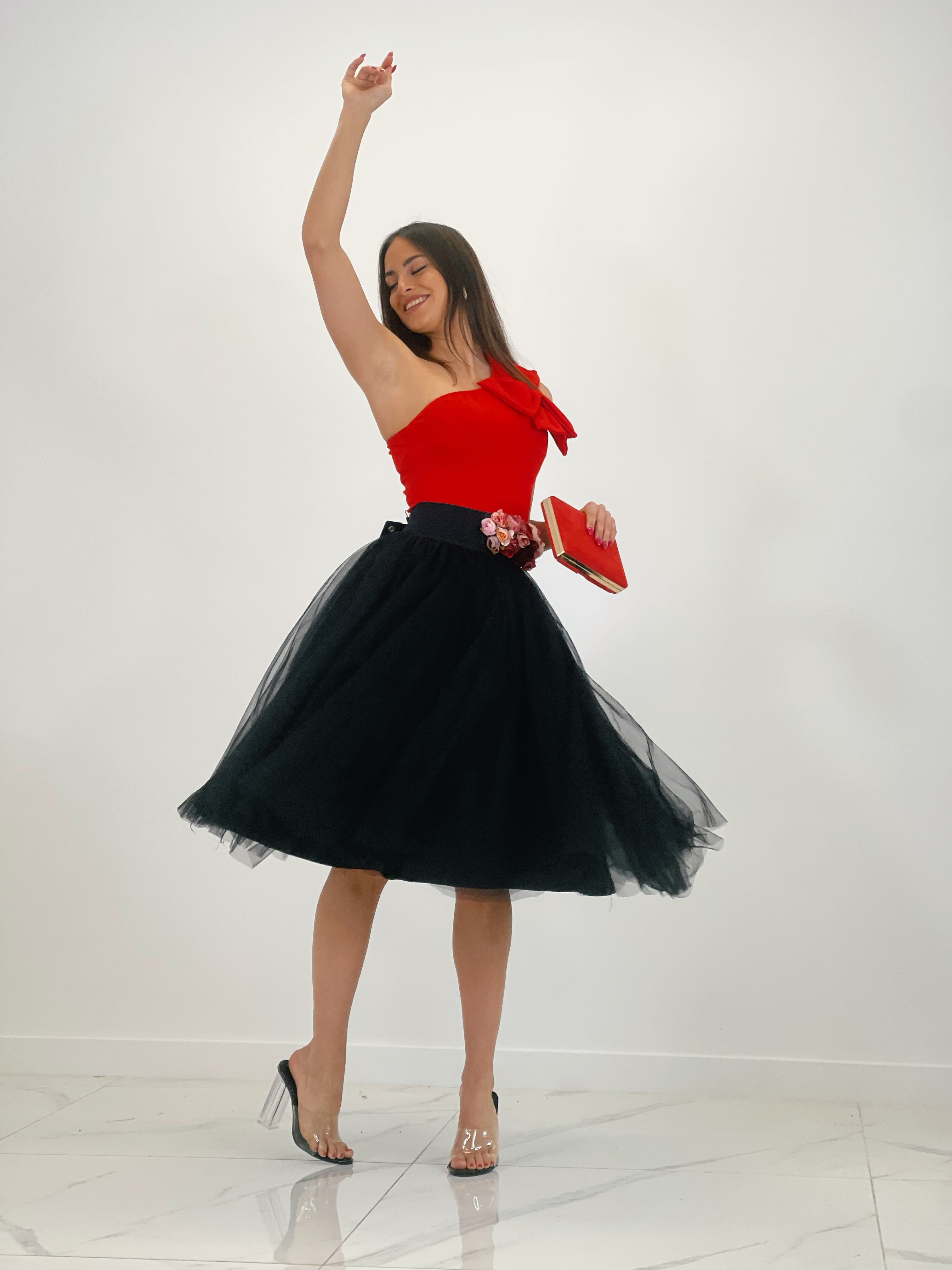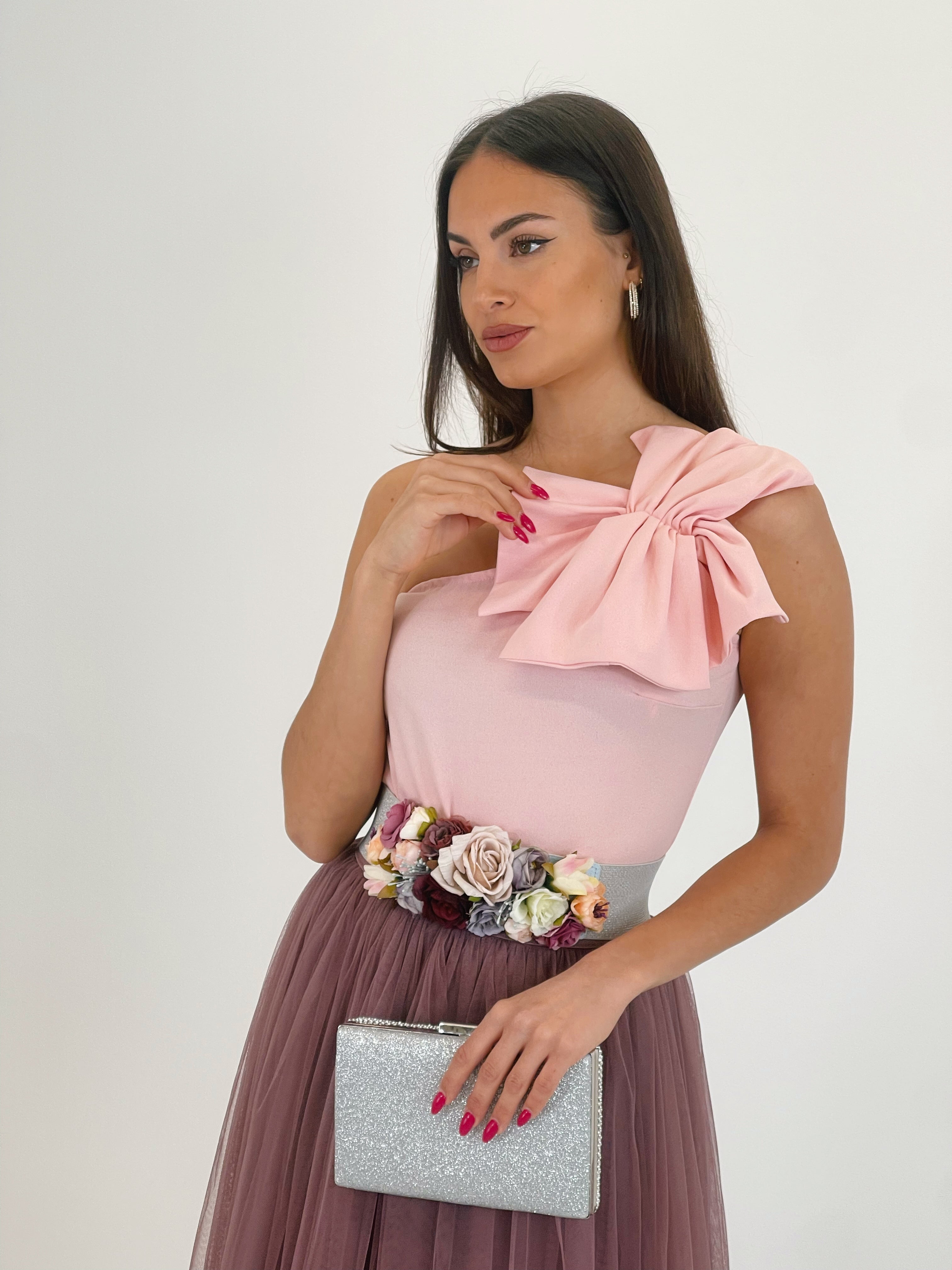 Este body asimétrico cuenta con un único tirante decorado con un lazo en la parte delantera del hombro. Su diseño original y elegante te hará destacar en cualquier evento, mientras que su corte asimétrico te permite lucir un estilo único y moderno.