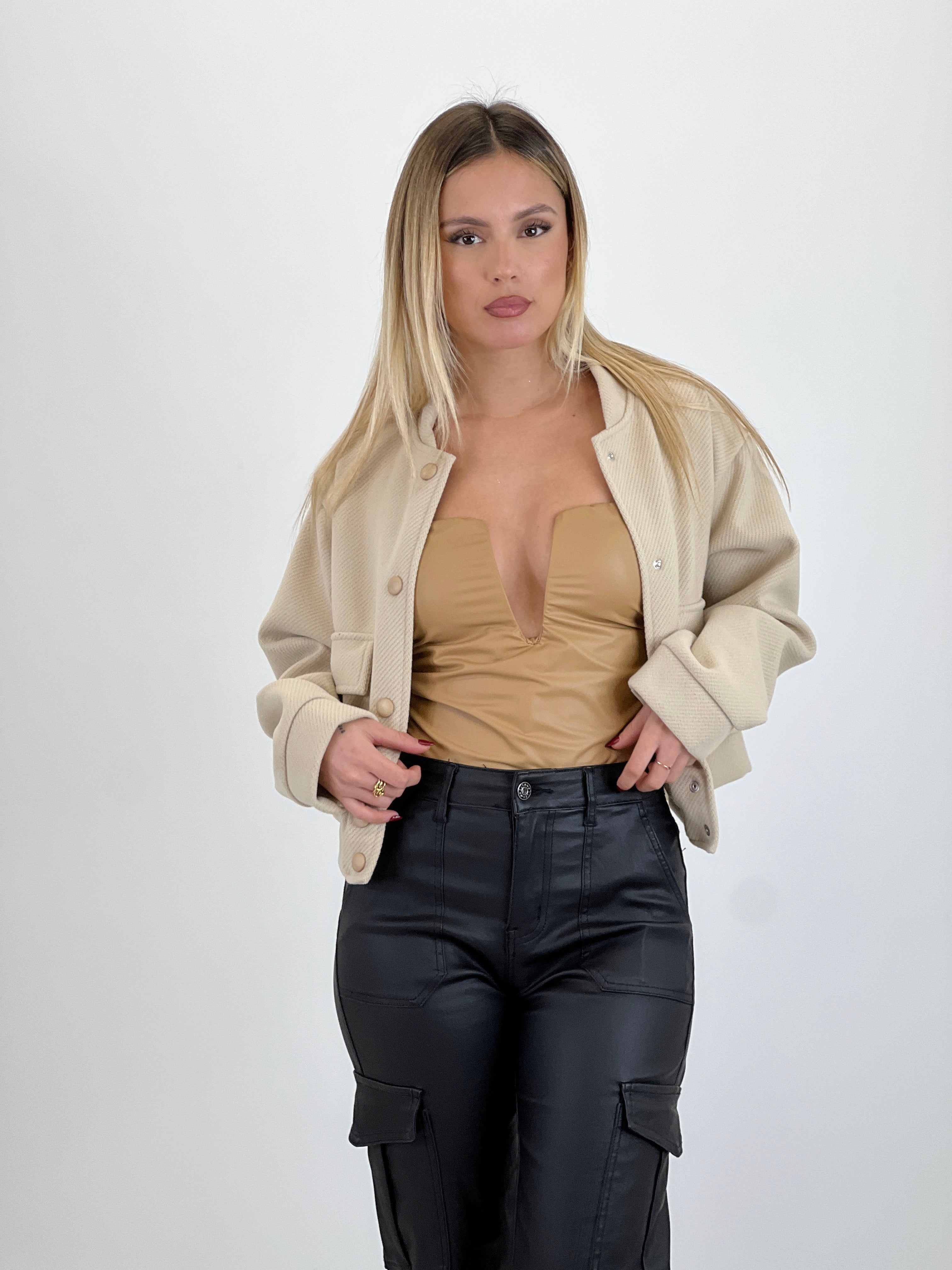 Body escote V acabado piel