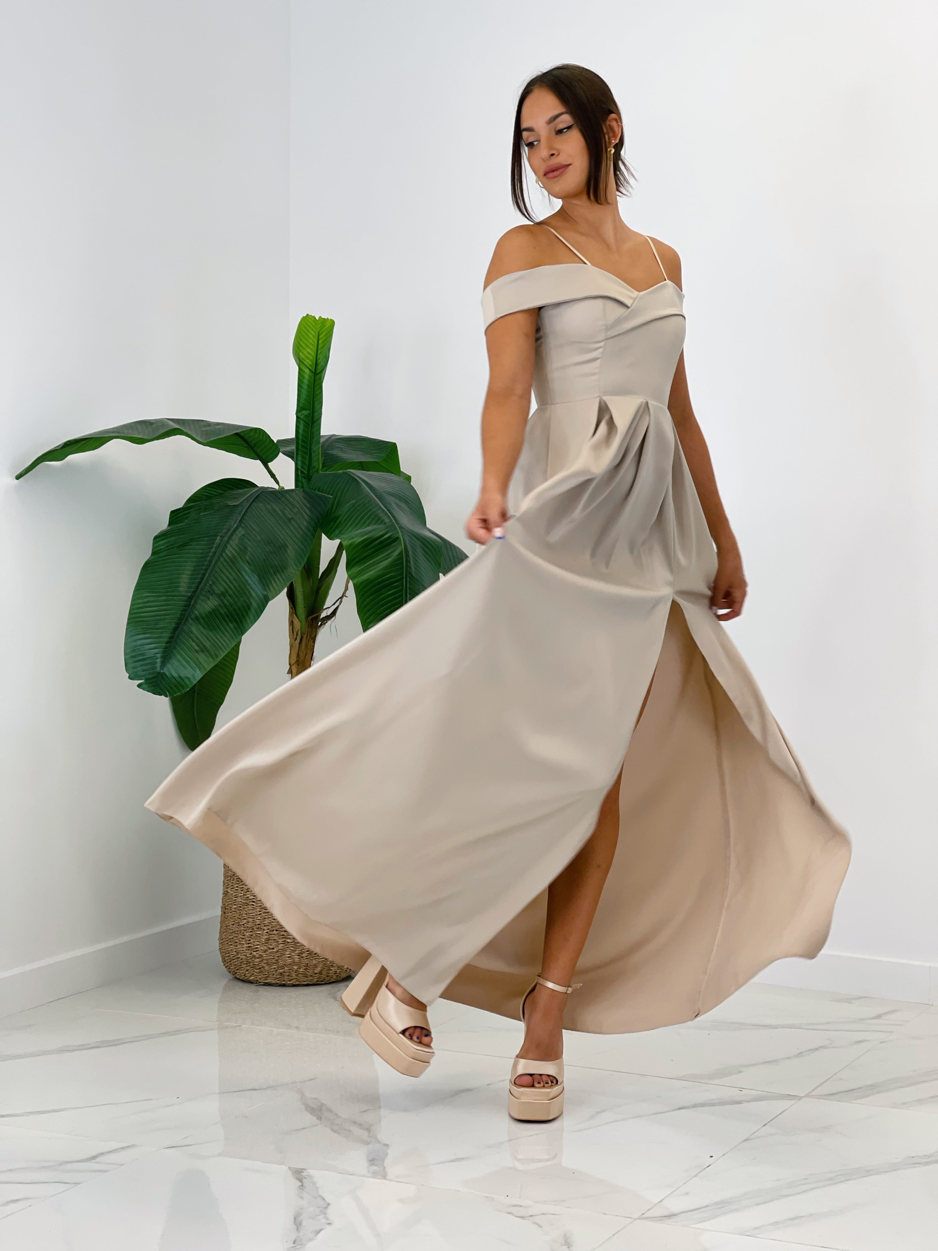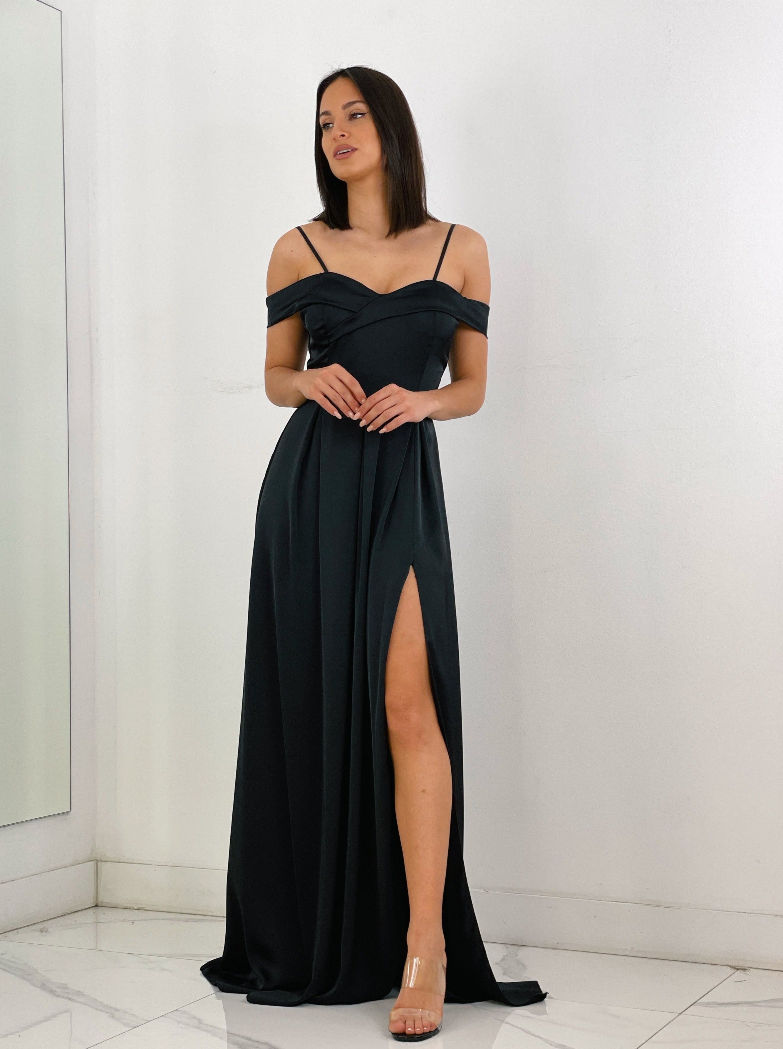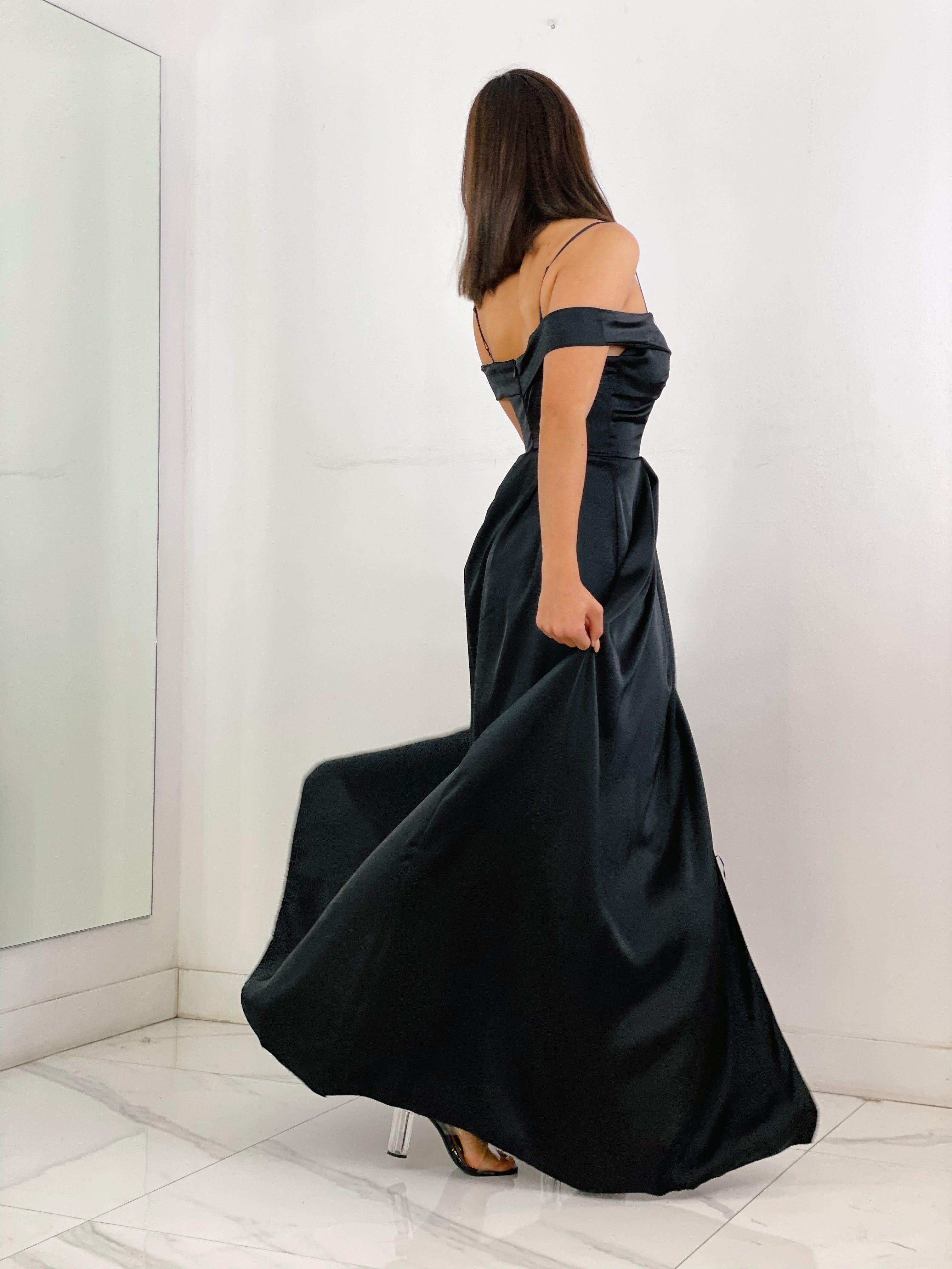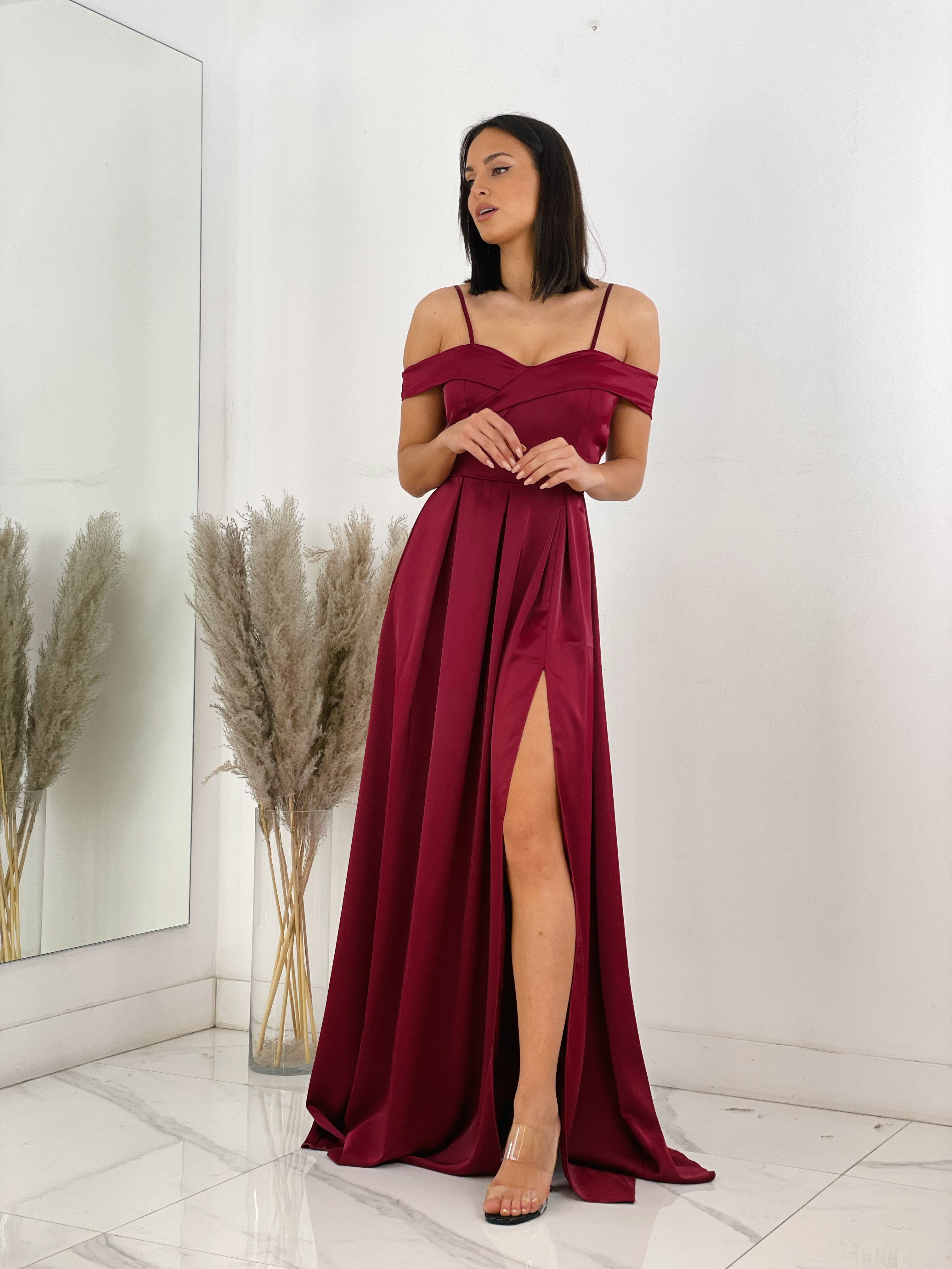 El vestido satinado Anastasia es perfecto para una ocasión especial. Con un elegante escote cruzado palabra de honor y tirante ajustable, realza tu figura. Su obertura en el delantero y cierre mediante cremallera en la parte trasera son detalles que lo hacen único. Además, su espuma de relleno en el pecho te ofrece una mayor comodidad y soporte.