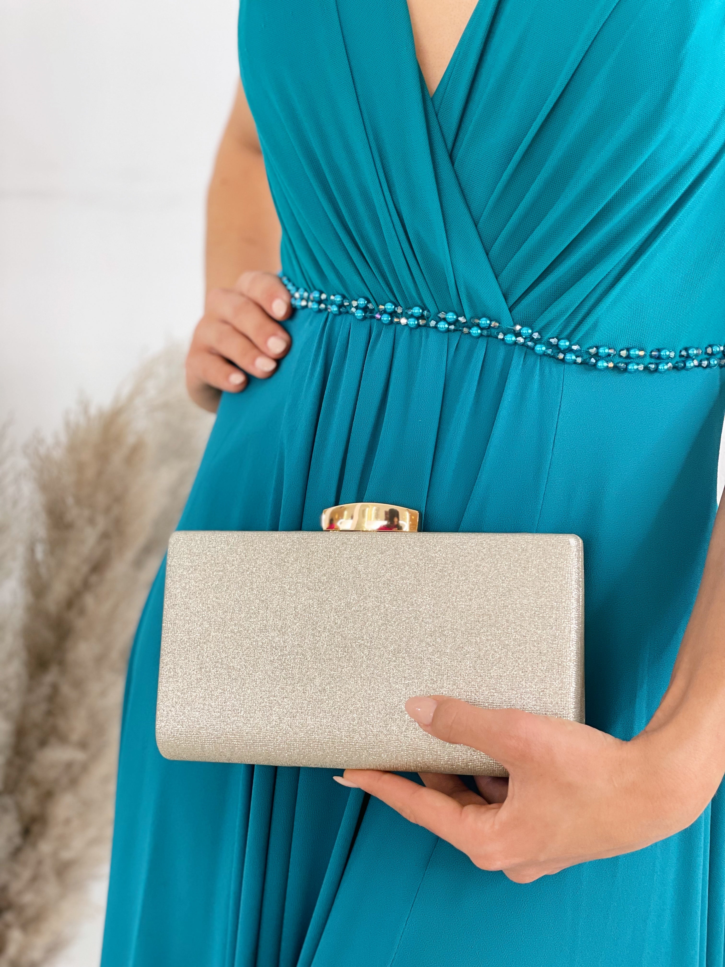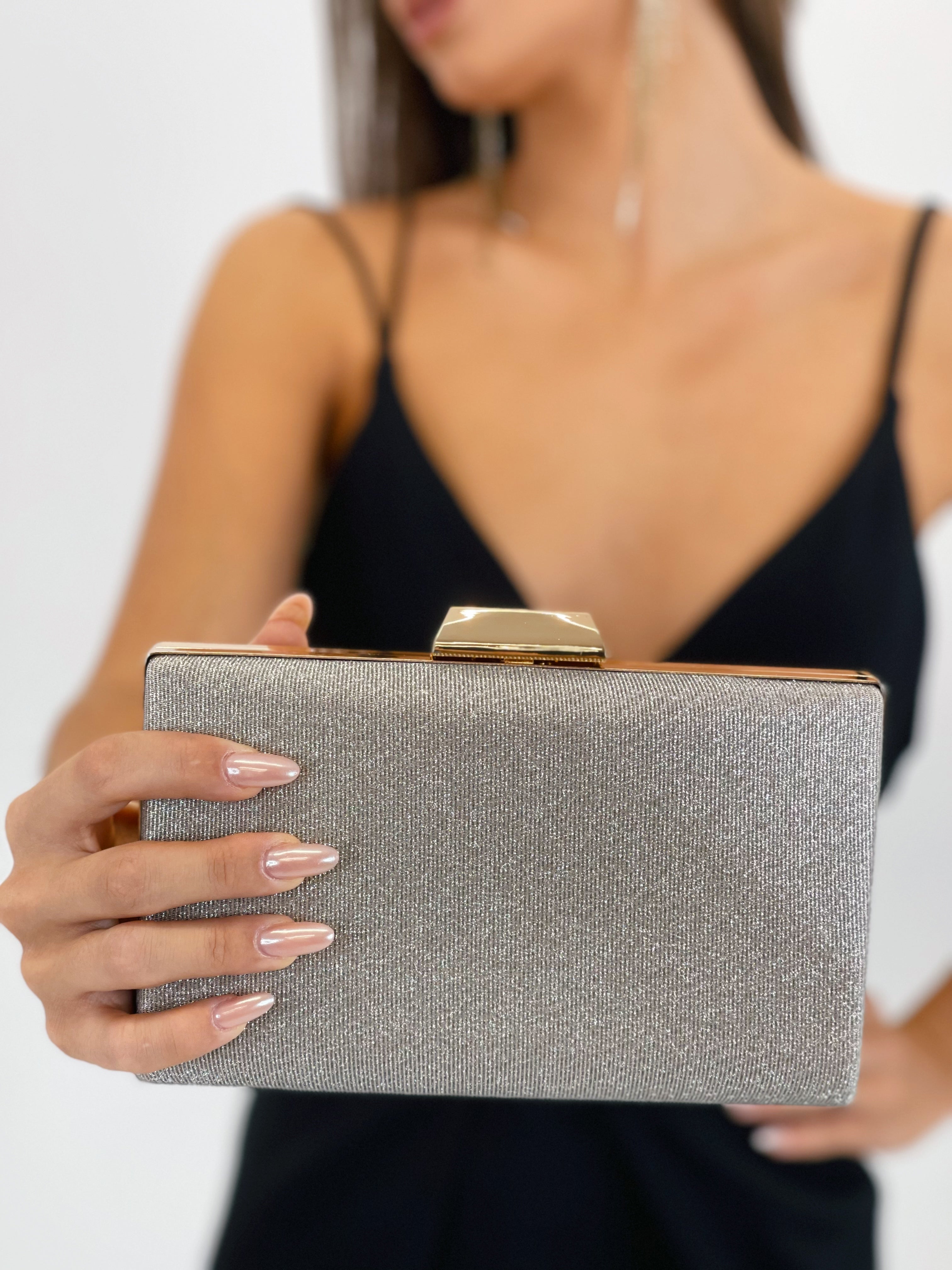 El clutch de fiesta con brillo Dennis es el accesorio perfecto para eventos especiales. Con su cierre de presión y asa de cadena extraíble, este bolso de mano es práctico y elegante. Además, cuenta con un forro interior que protege tus objetos personales. No lo pienses más y añade el toque de glamour a tus outfits con el bolso Dennis.