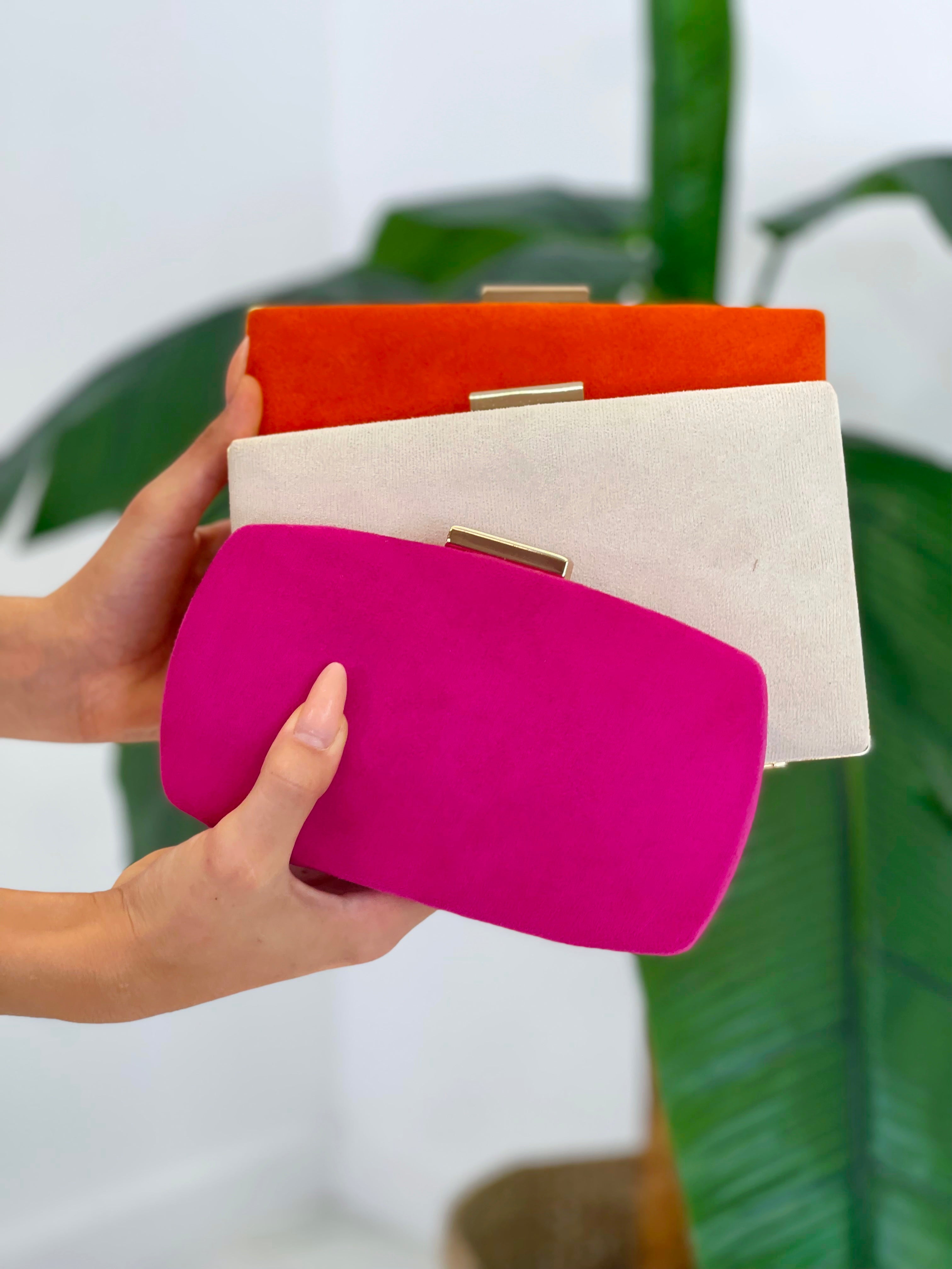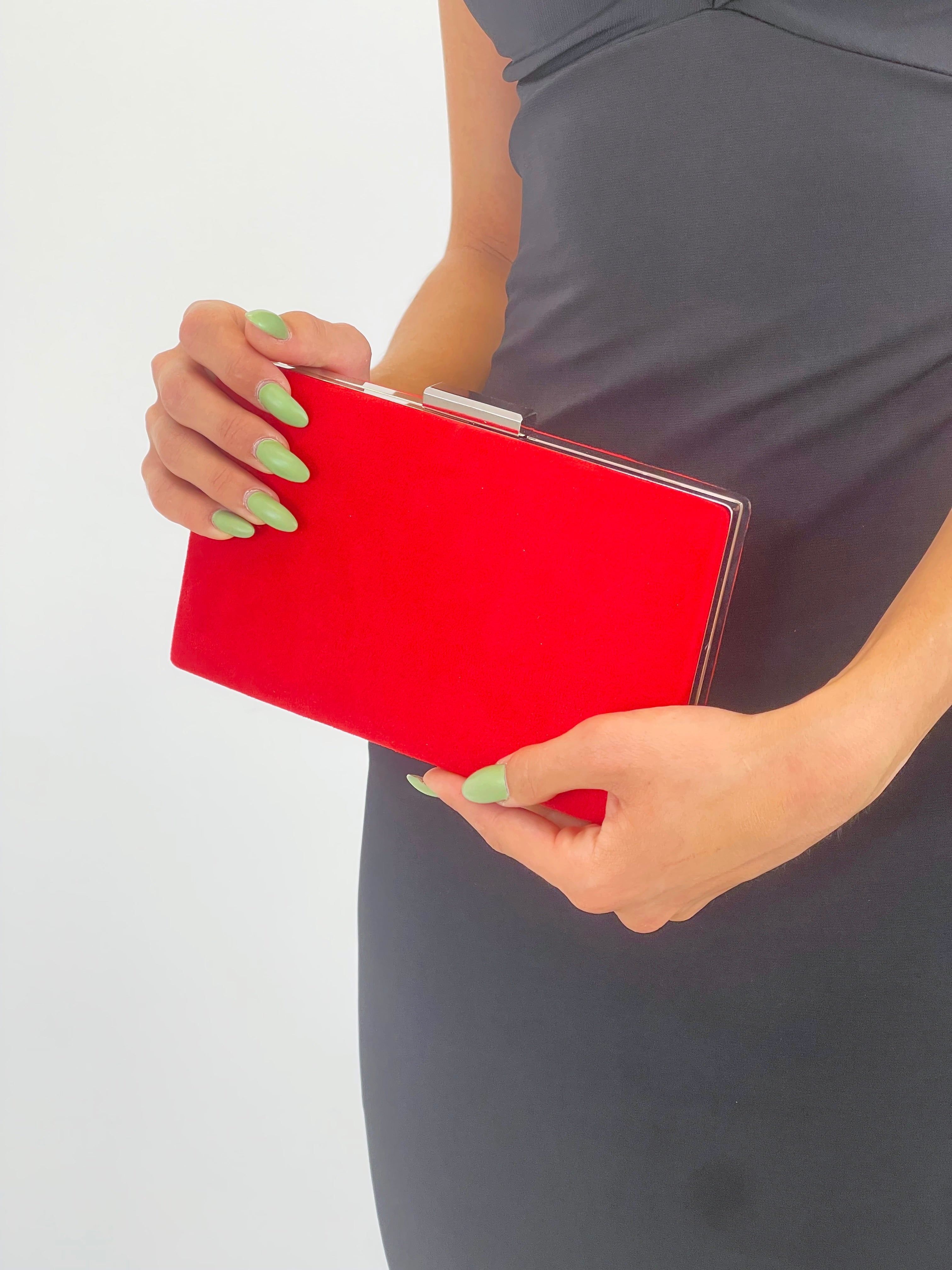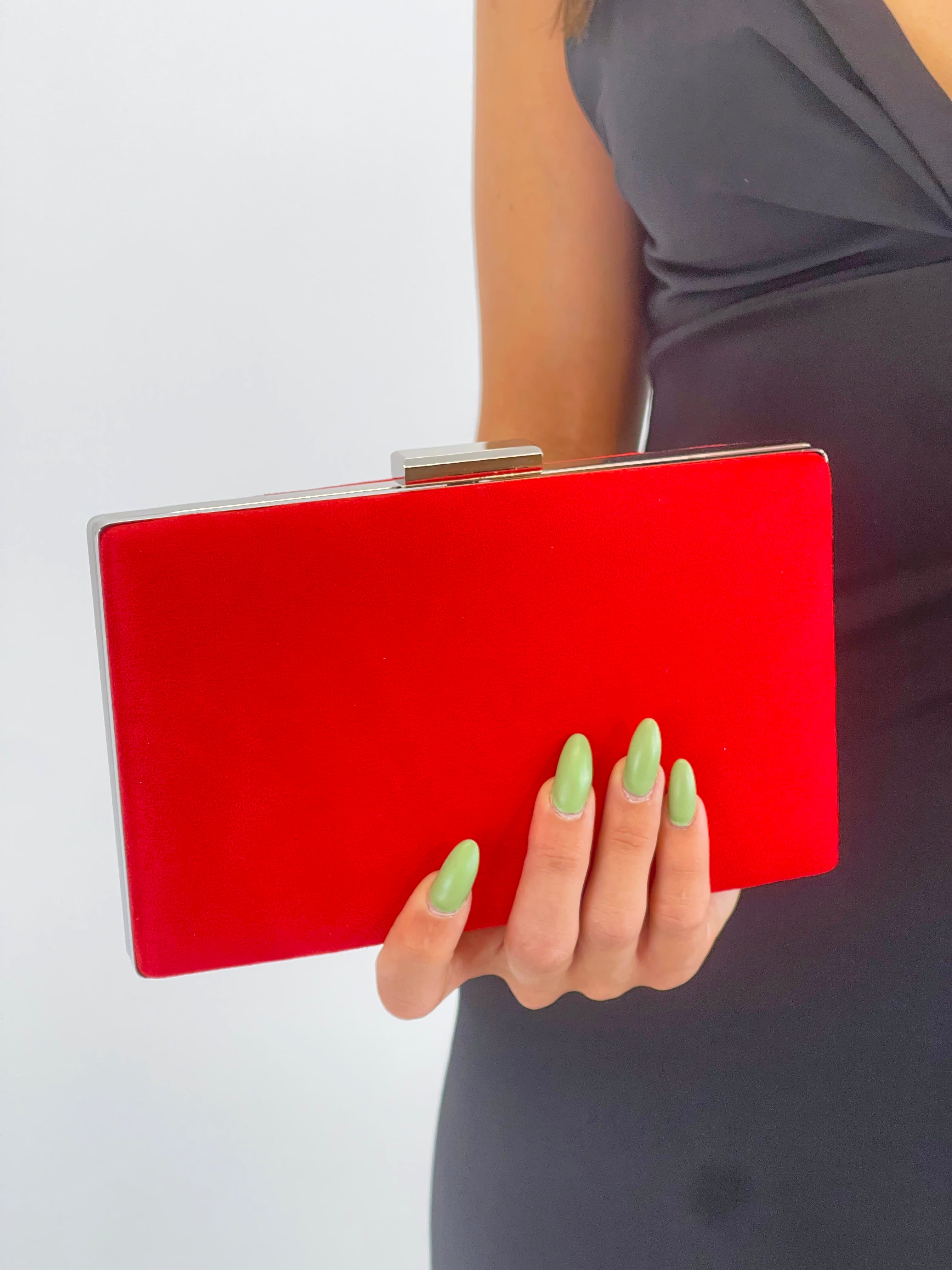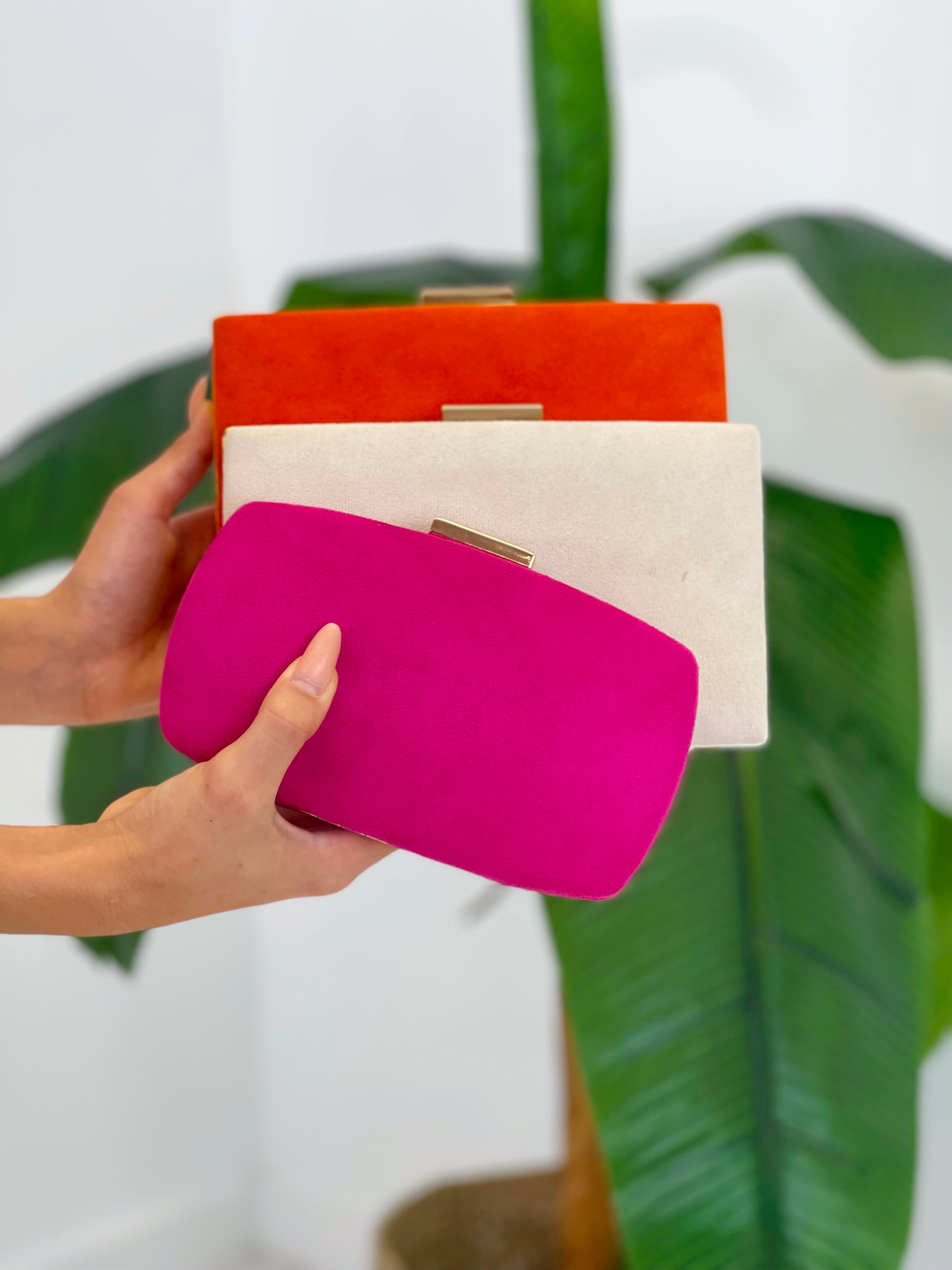 Bolso de mano o bolso clutch, morado fabricado en antelina con unas medidas de 20×11,5cm y un grosor de 5cm APROXIMADAMENTE.