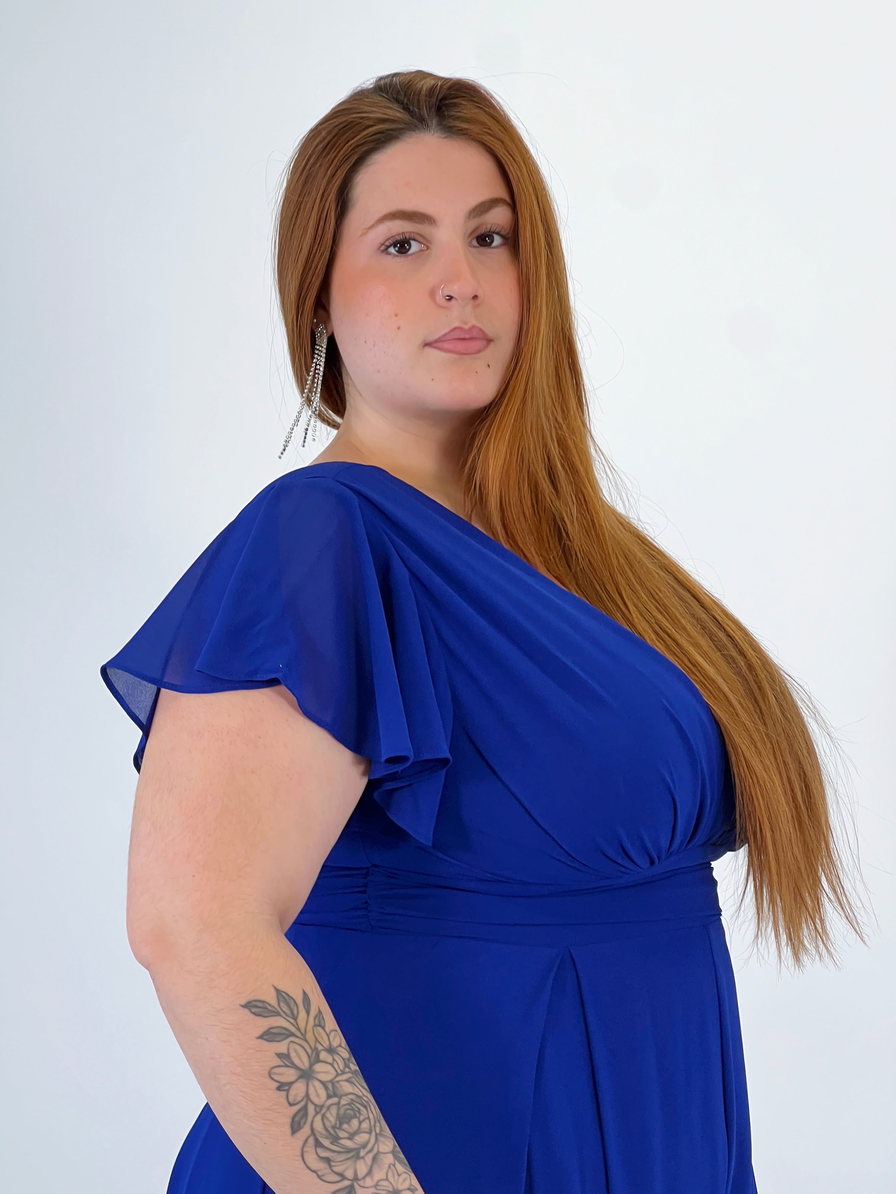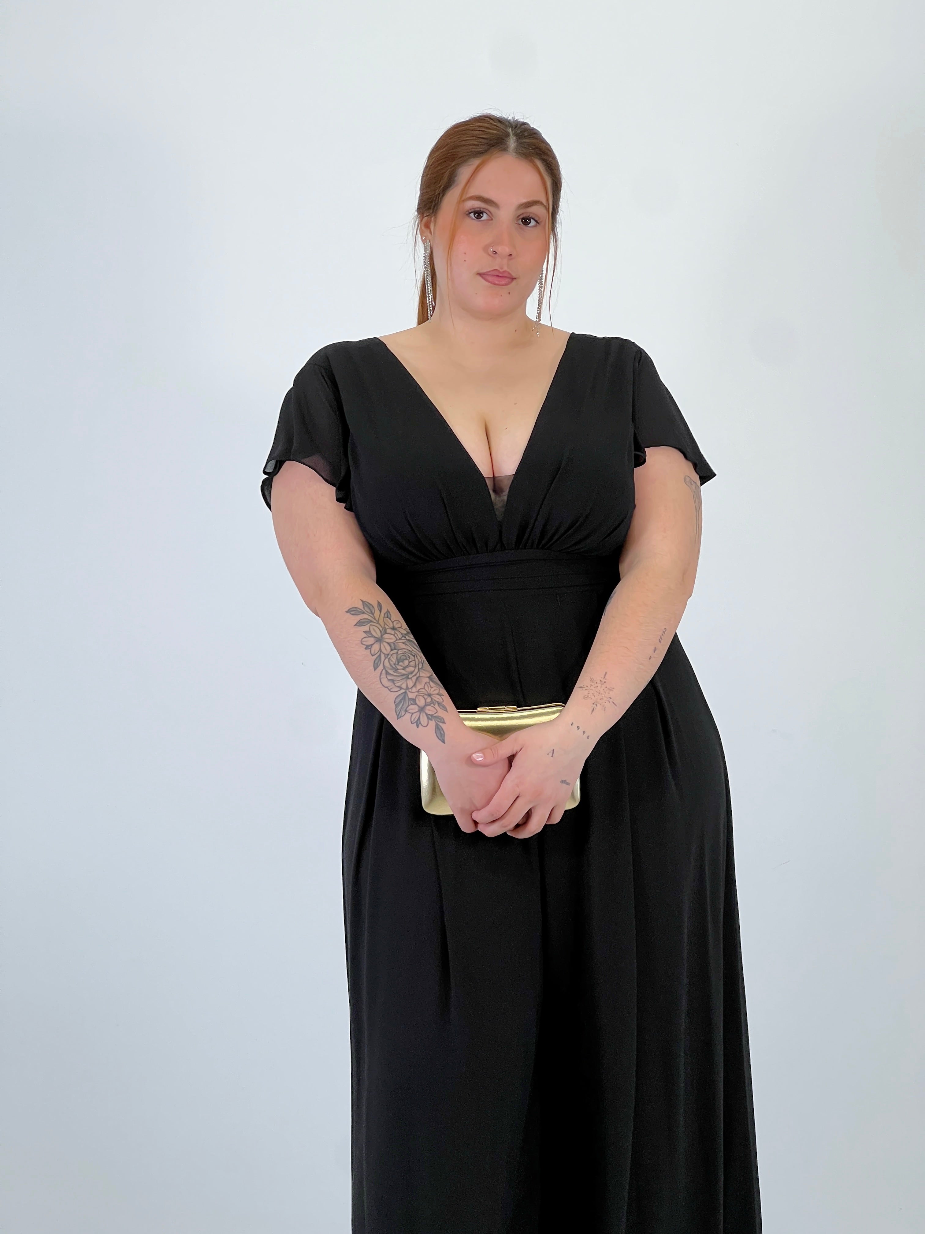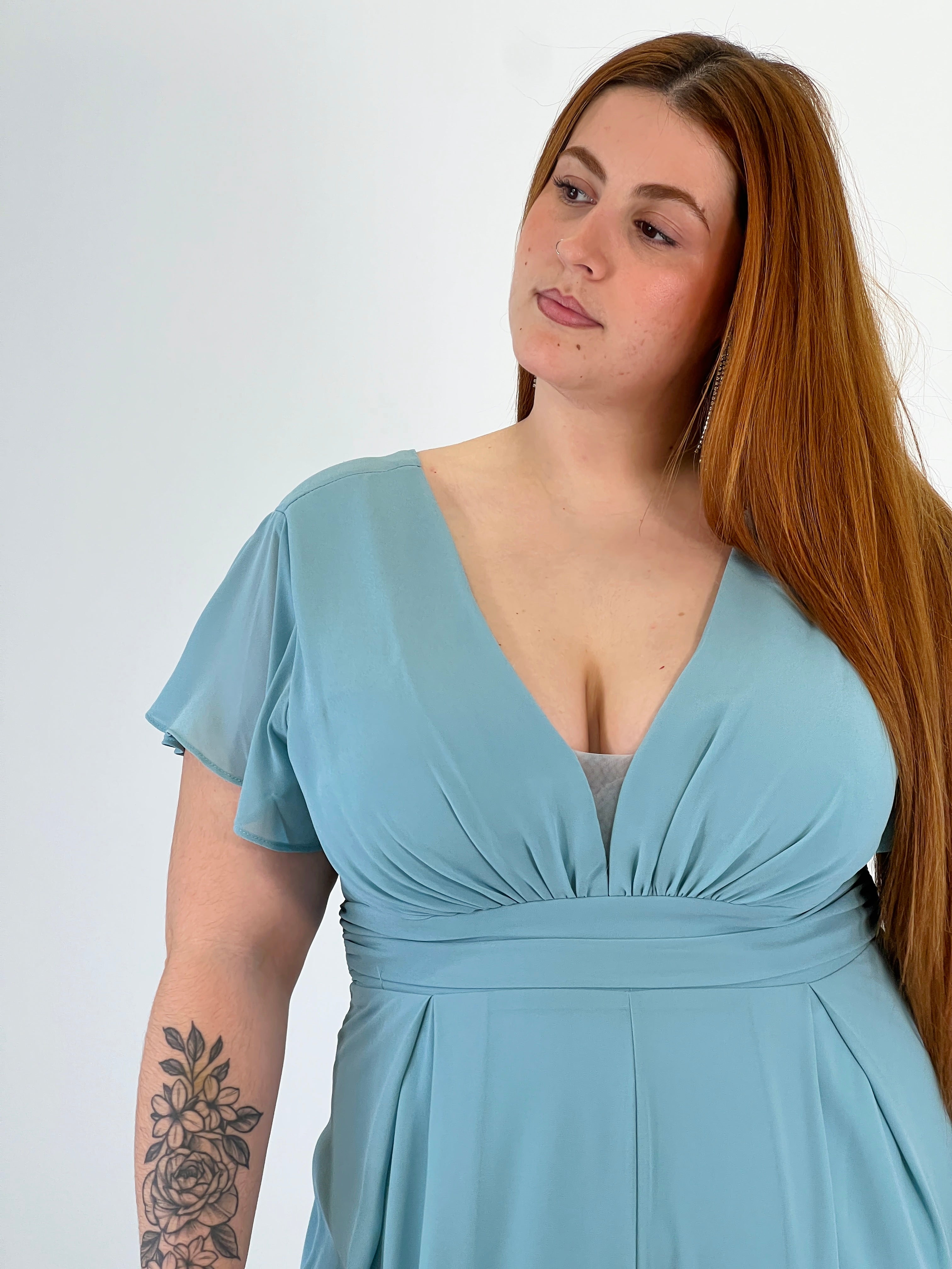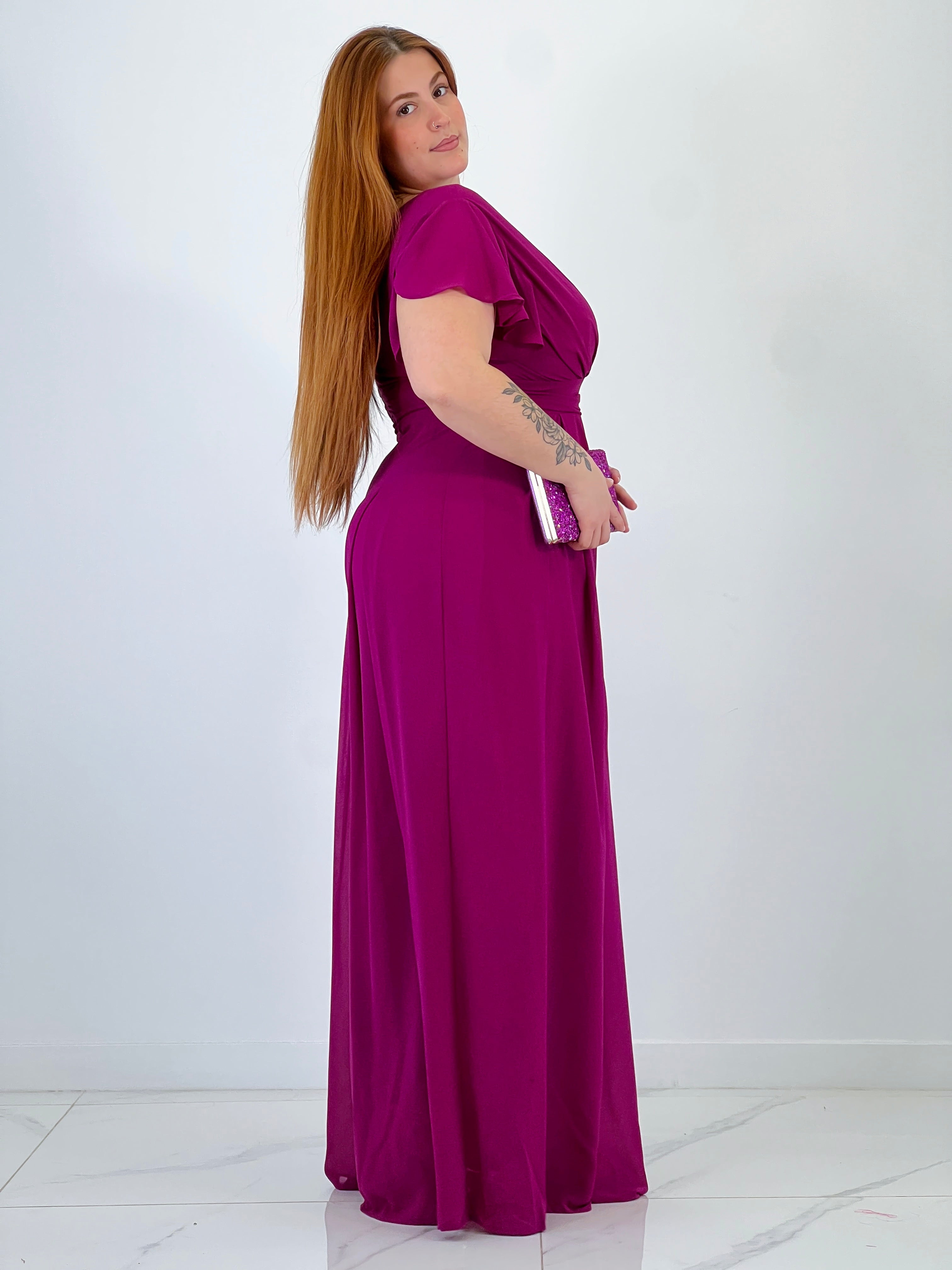 Descubre un estilo elegante y cómodo con el mono ceremonia Iria. De manga corta y escote V con gasa, este mono en talla grande es ideal para las invitadas. Su cintura fruncida resalta el cuerpo y su pierna ancha brinda una sensación de estilo en cualquier ceremonia.