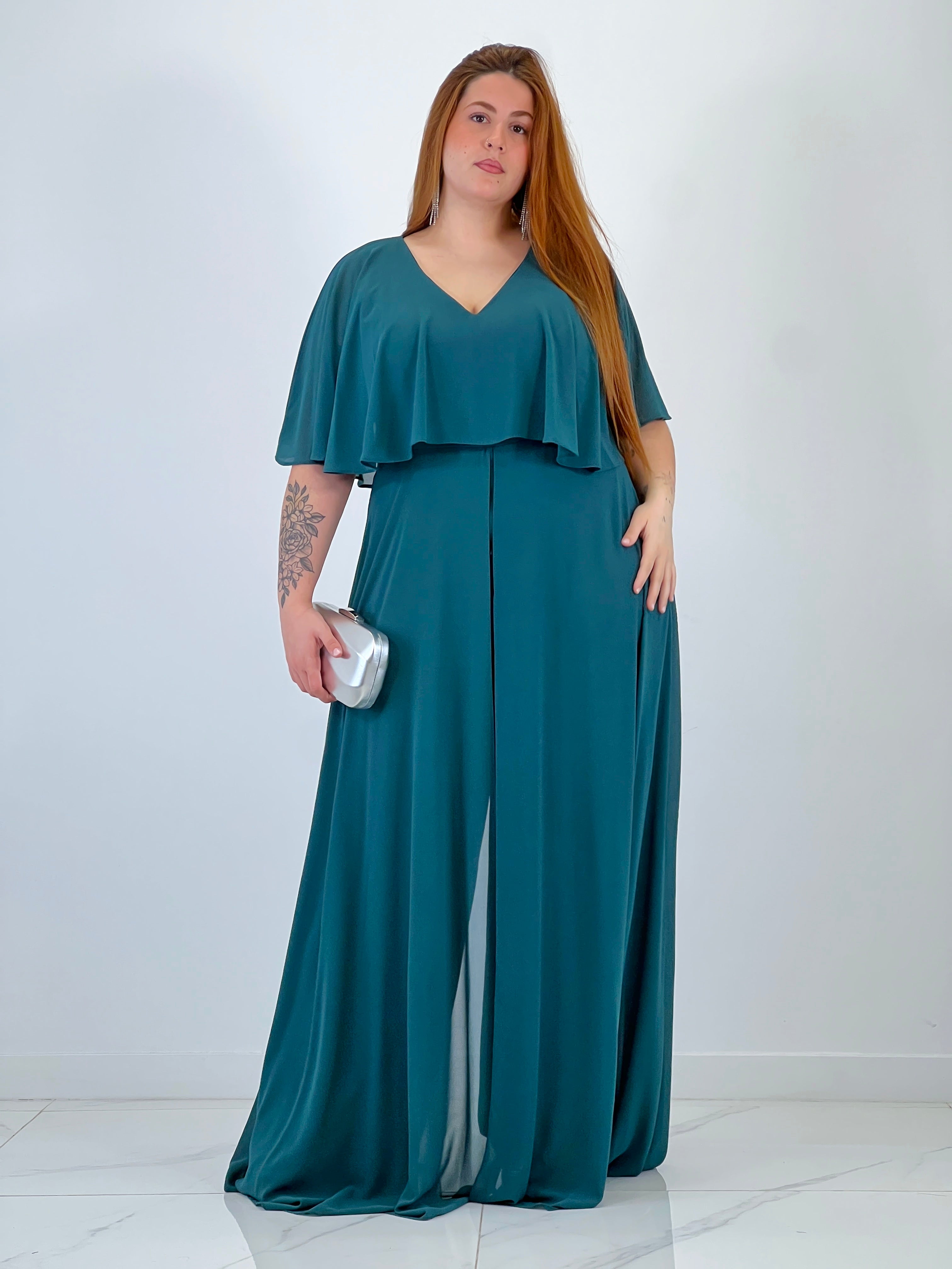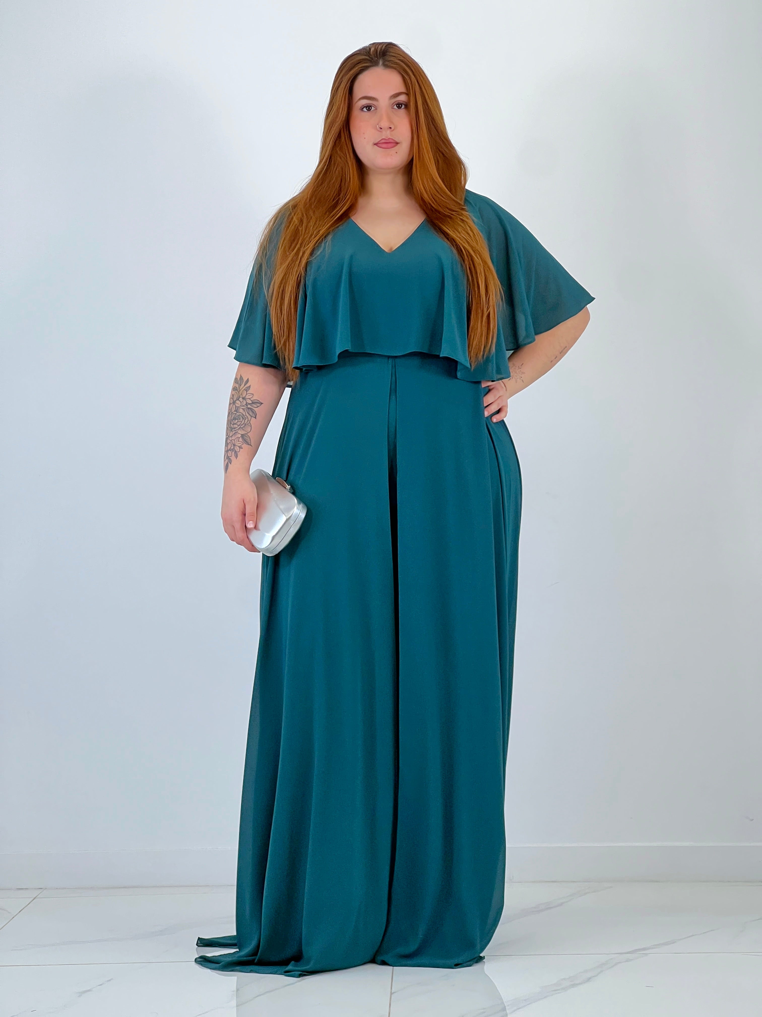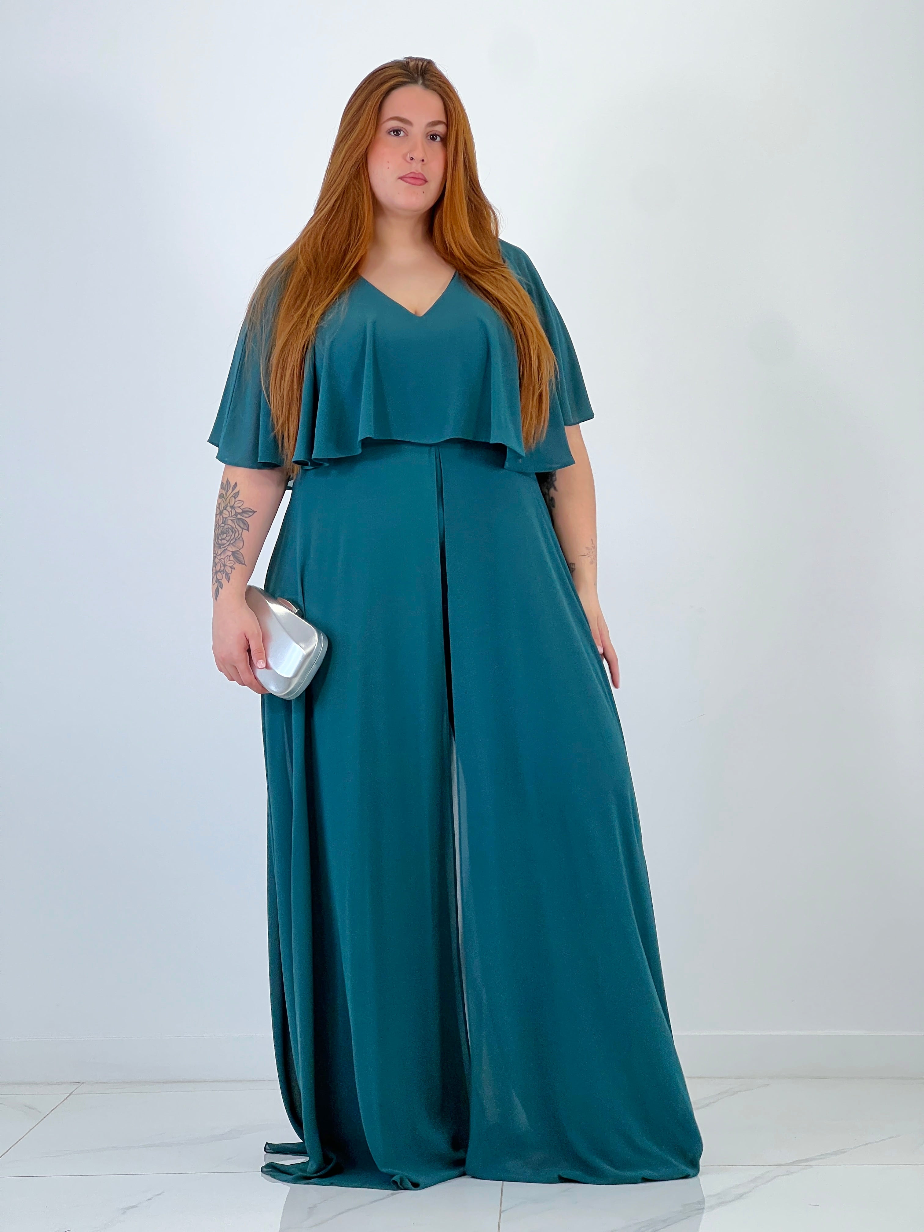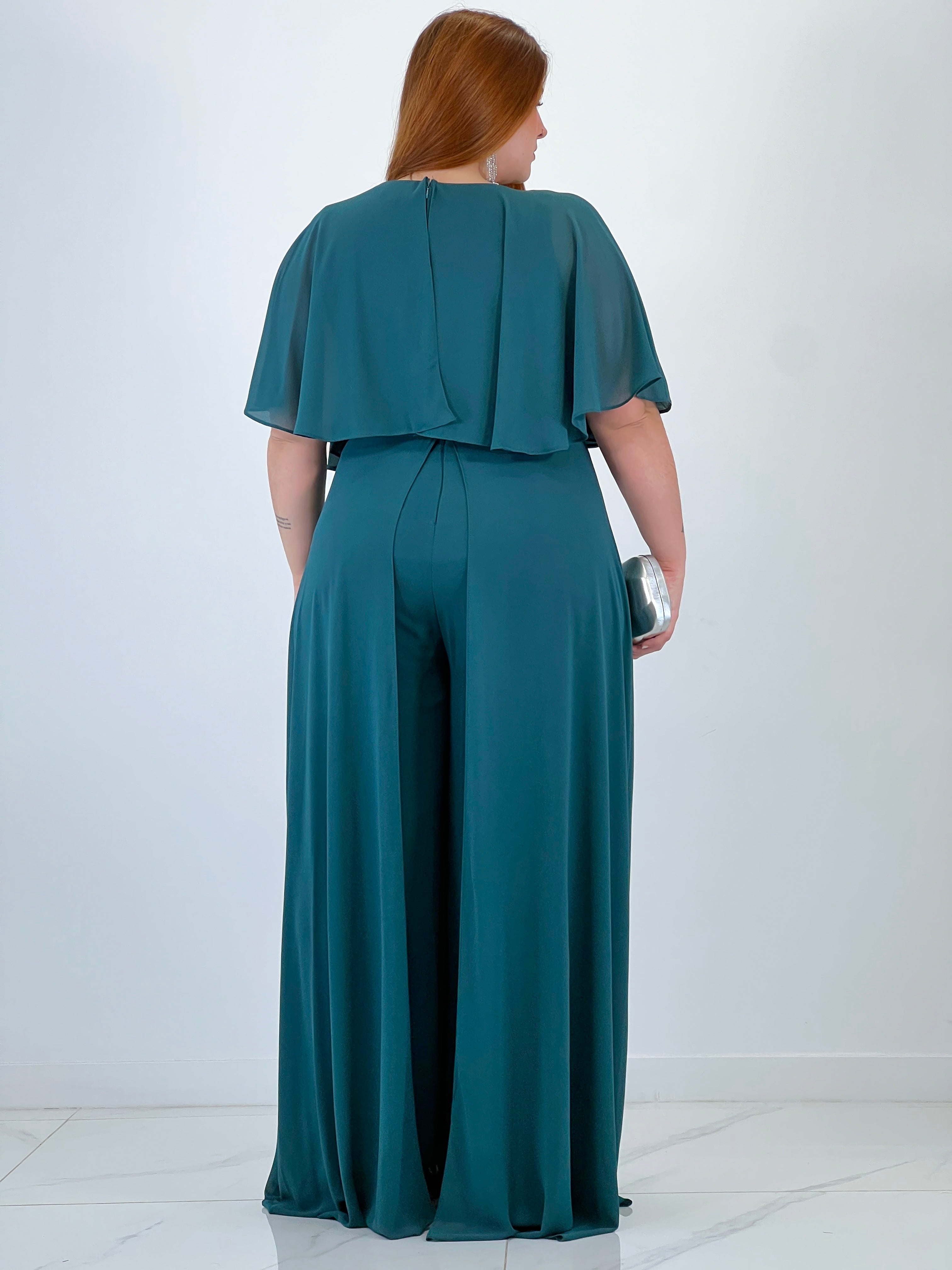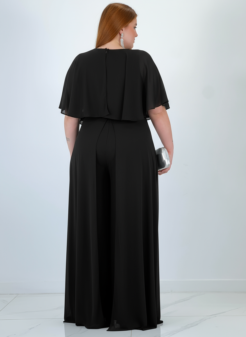 El mono doble capa es el atuendo perfecto para una ceremonia. Con su pierna ancha acampanada y tela suelta, te sentirás elegante y cómoda. Su manga corta y mini escote en V realzarán tu figura. Además, está disponible en tallas grandes para adaptarse a todas las mujeres.