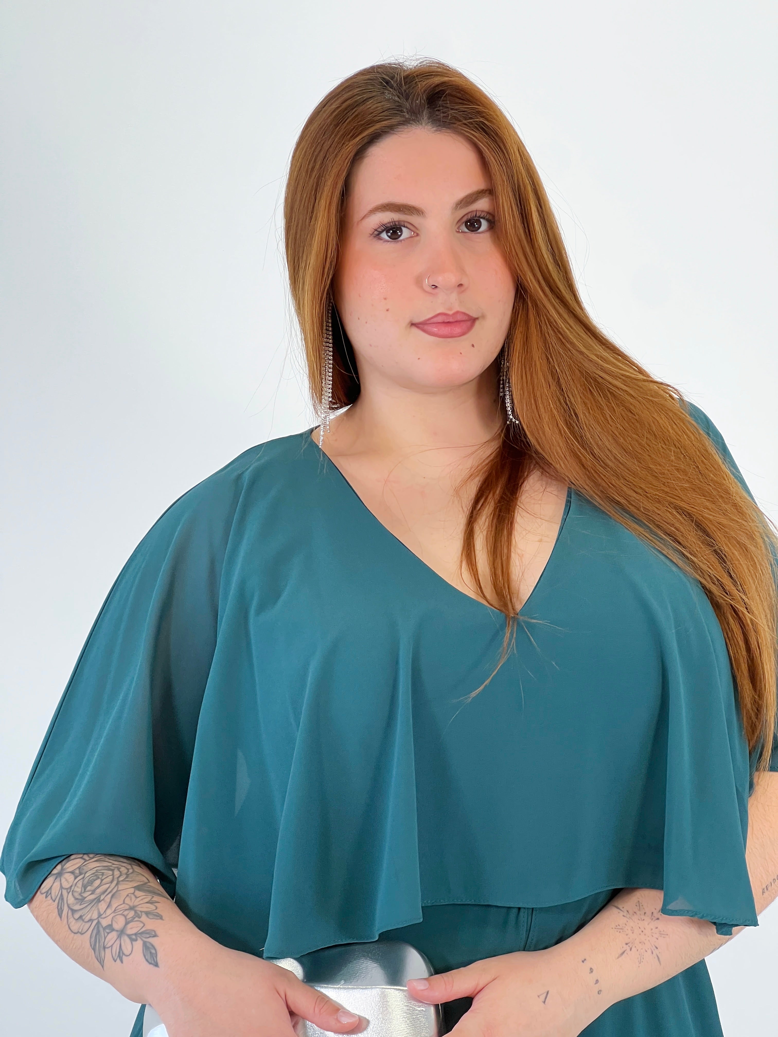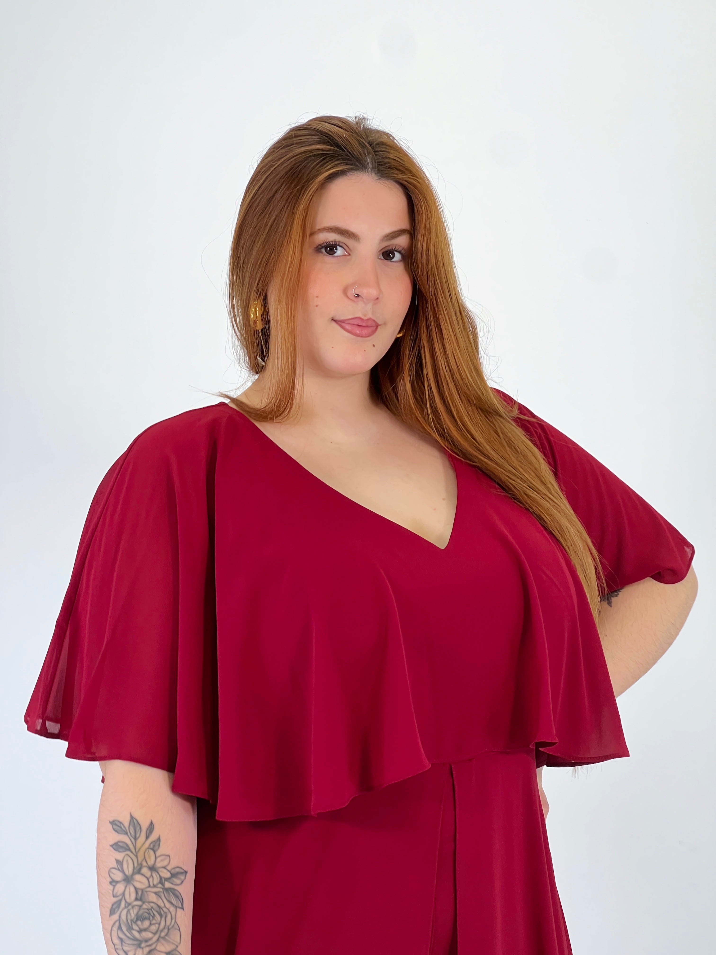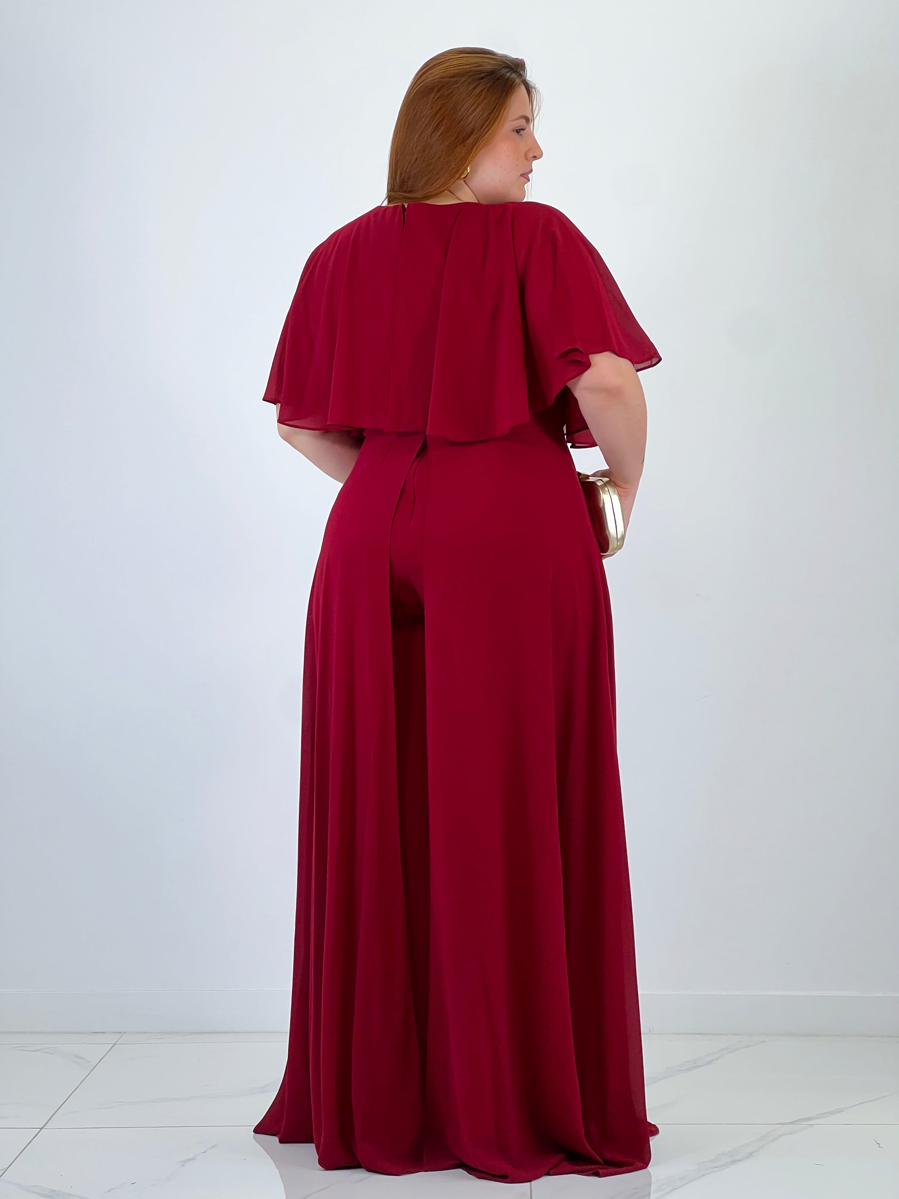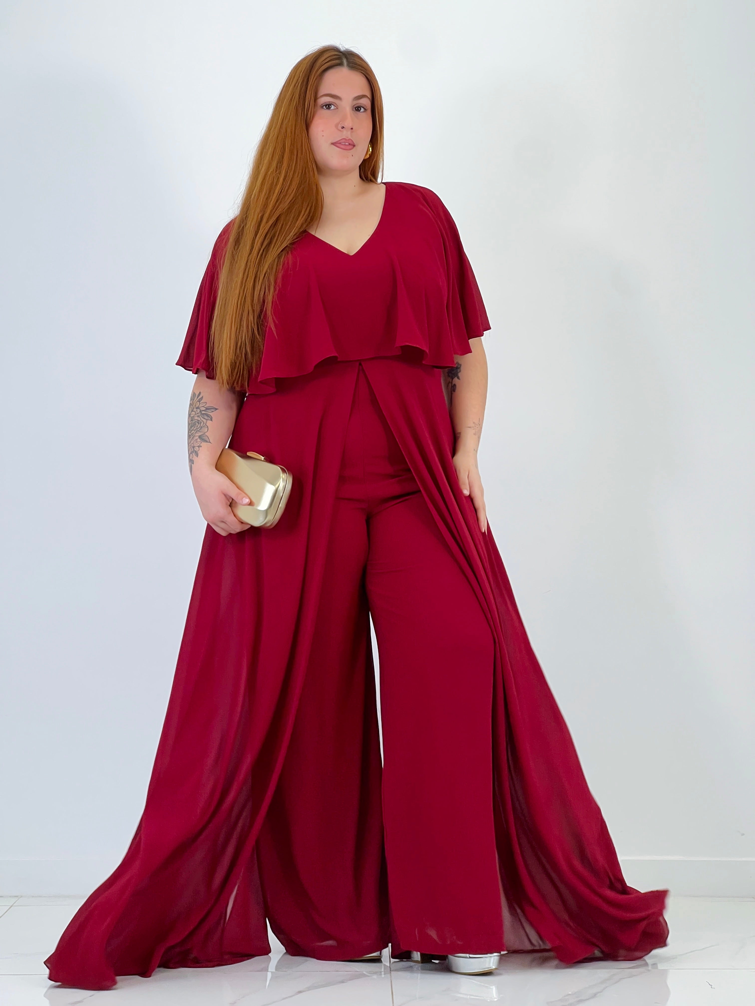El mono doble capa es el atuendo perfecto para una ceremonia. Con su pierna ancha acampanada y tela suelta, te sentirás elegante y cómoda. Su manga corta y mini escote en V realzarán tu figura. Además, está disponible en tallas grandes para adaptarse a todas las mujeres.