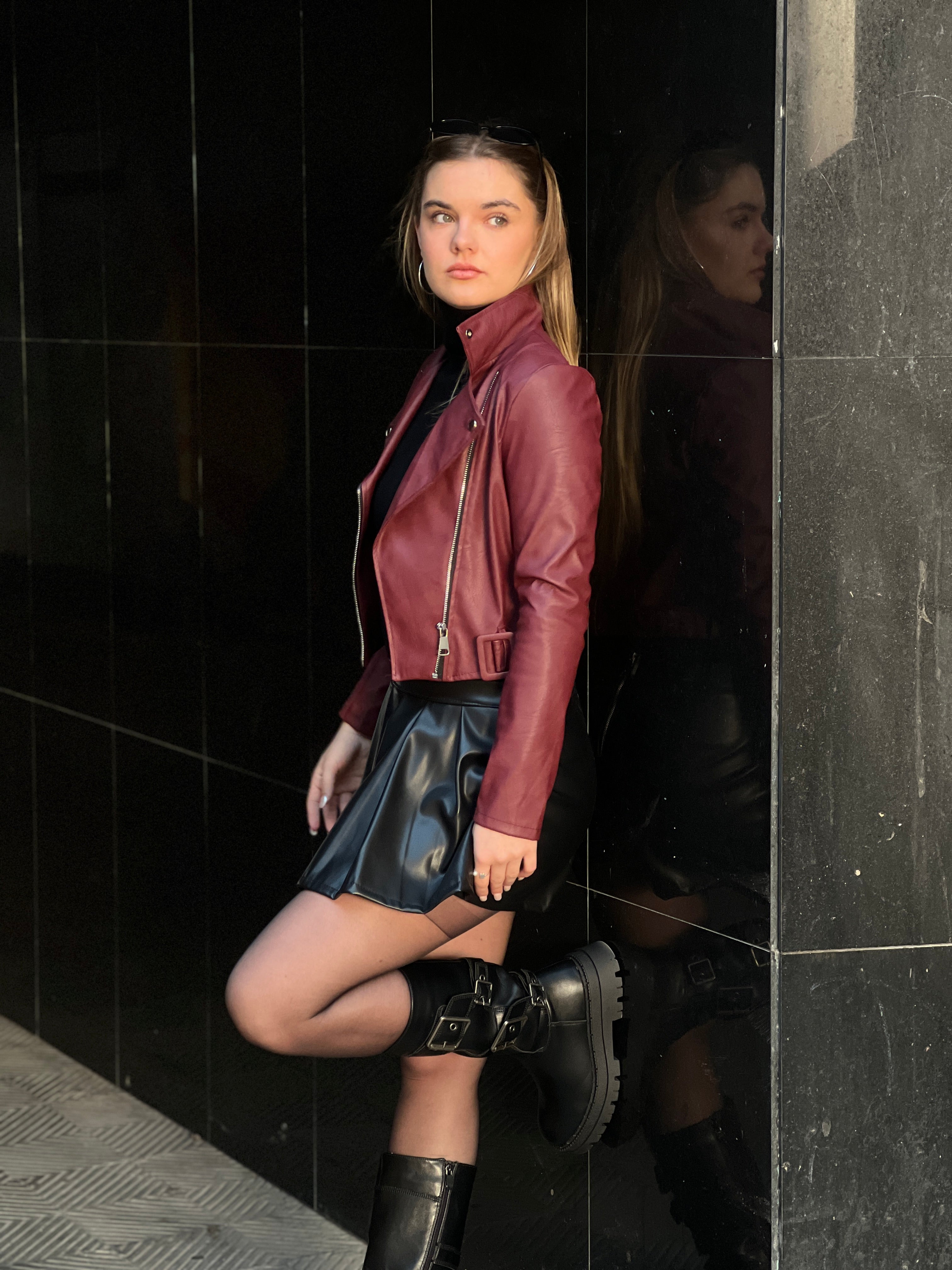 Falda plisada efecto piel