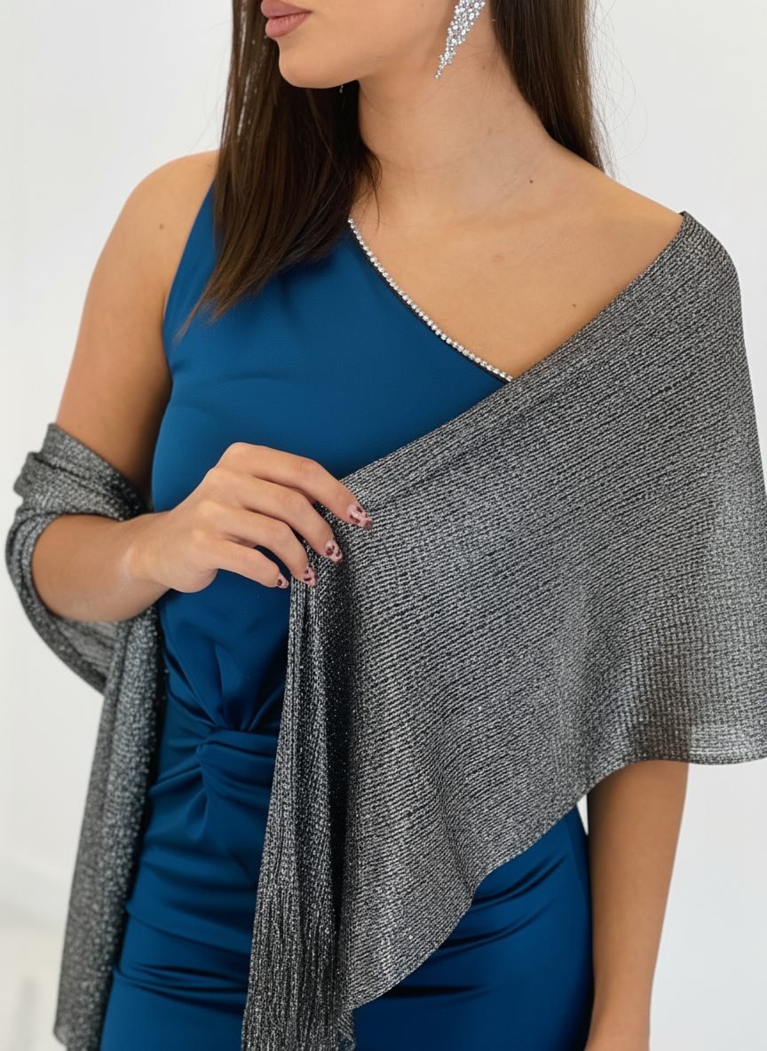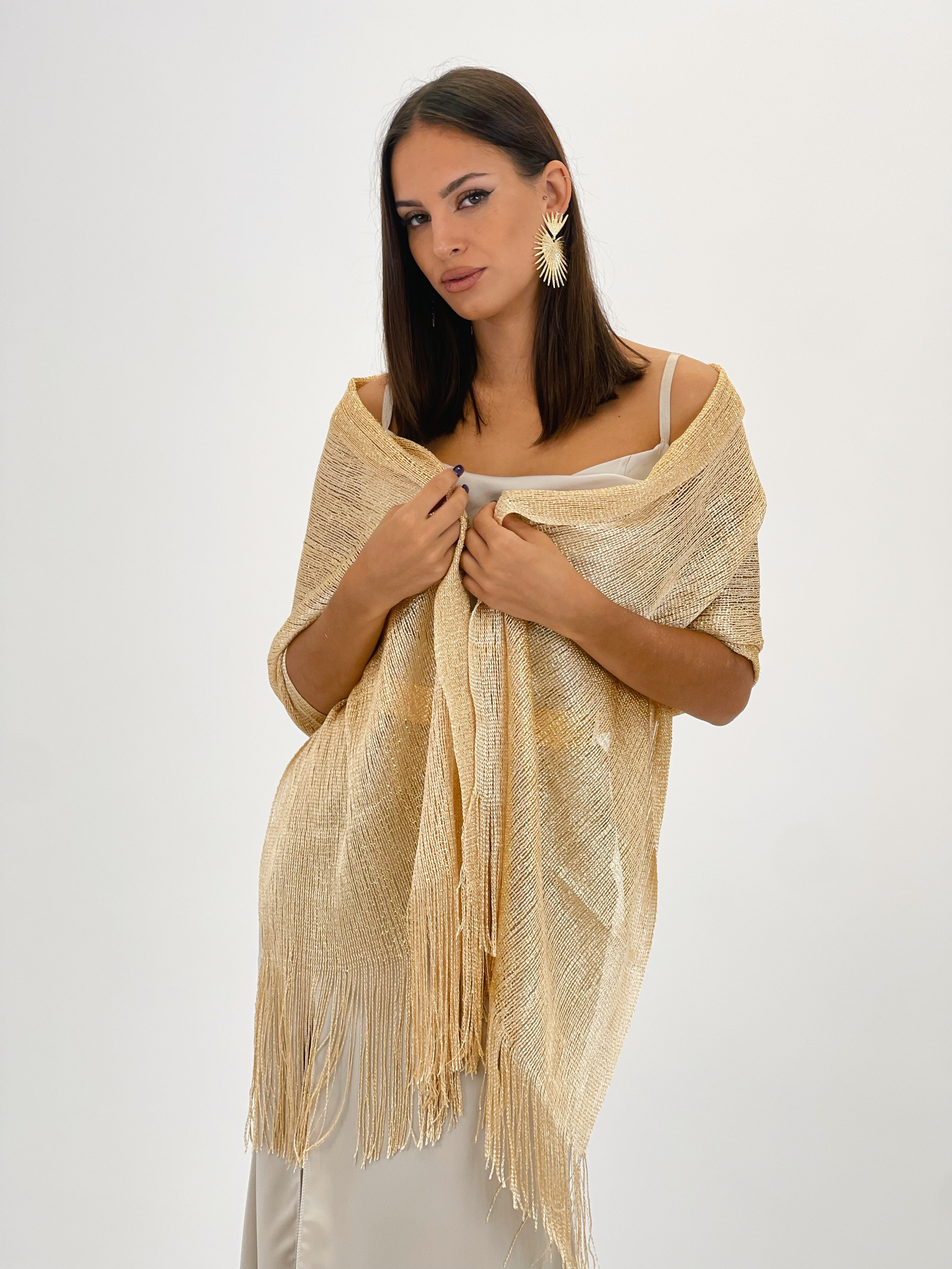 Este Fular con brillo de tejido brillante y bajo acabado en flecos es el complemento ideal para tus looks de fiesta o ceremonia. Combínalo con vestidos largos o cortos para un toque elegante y sofisticado.