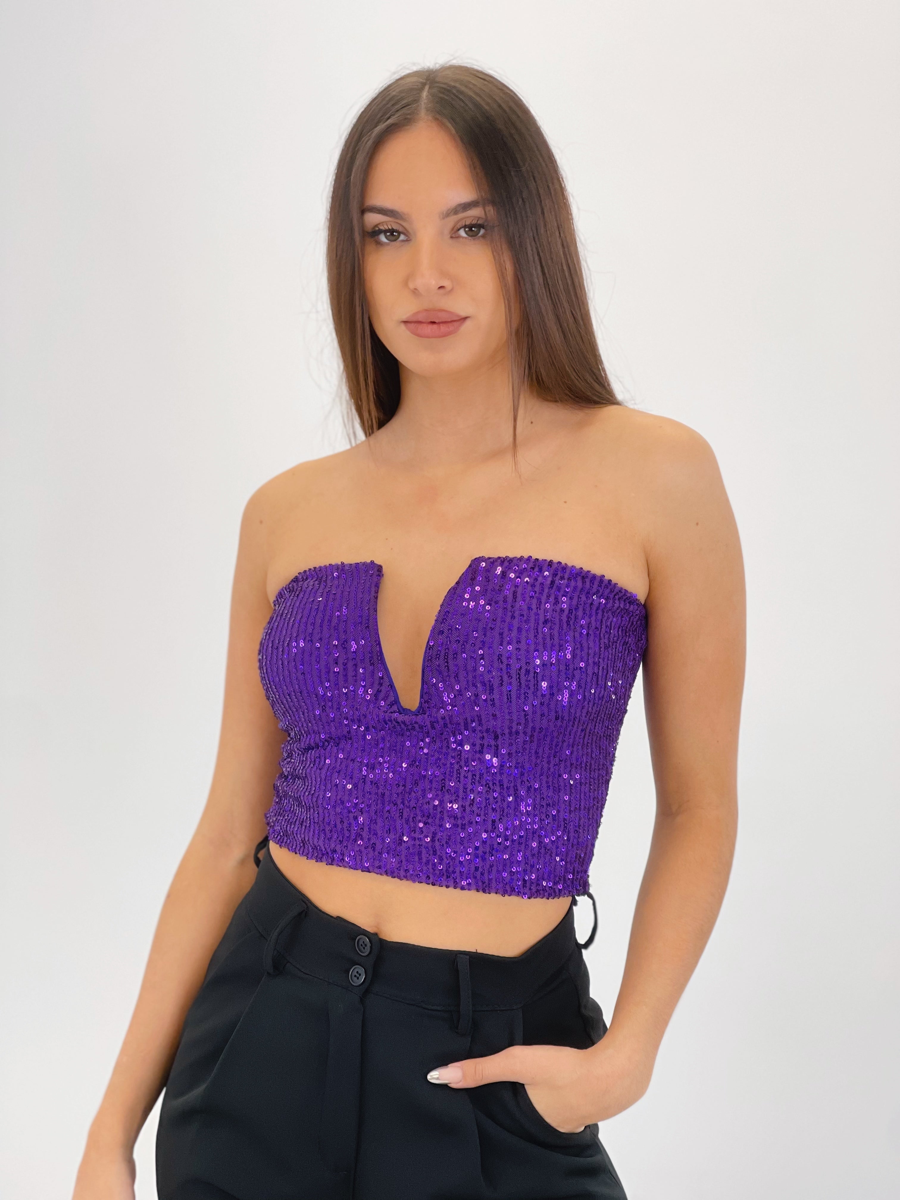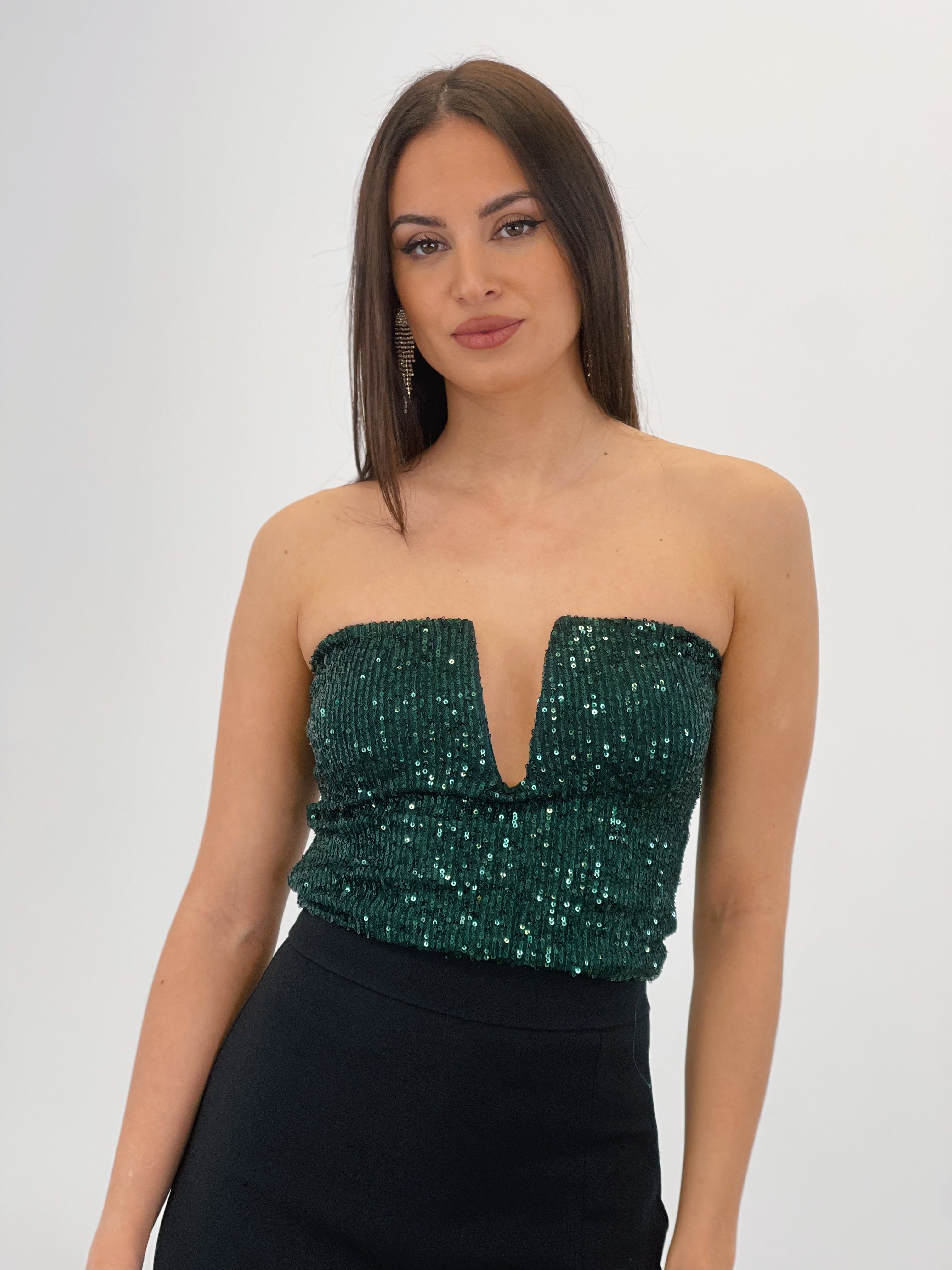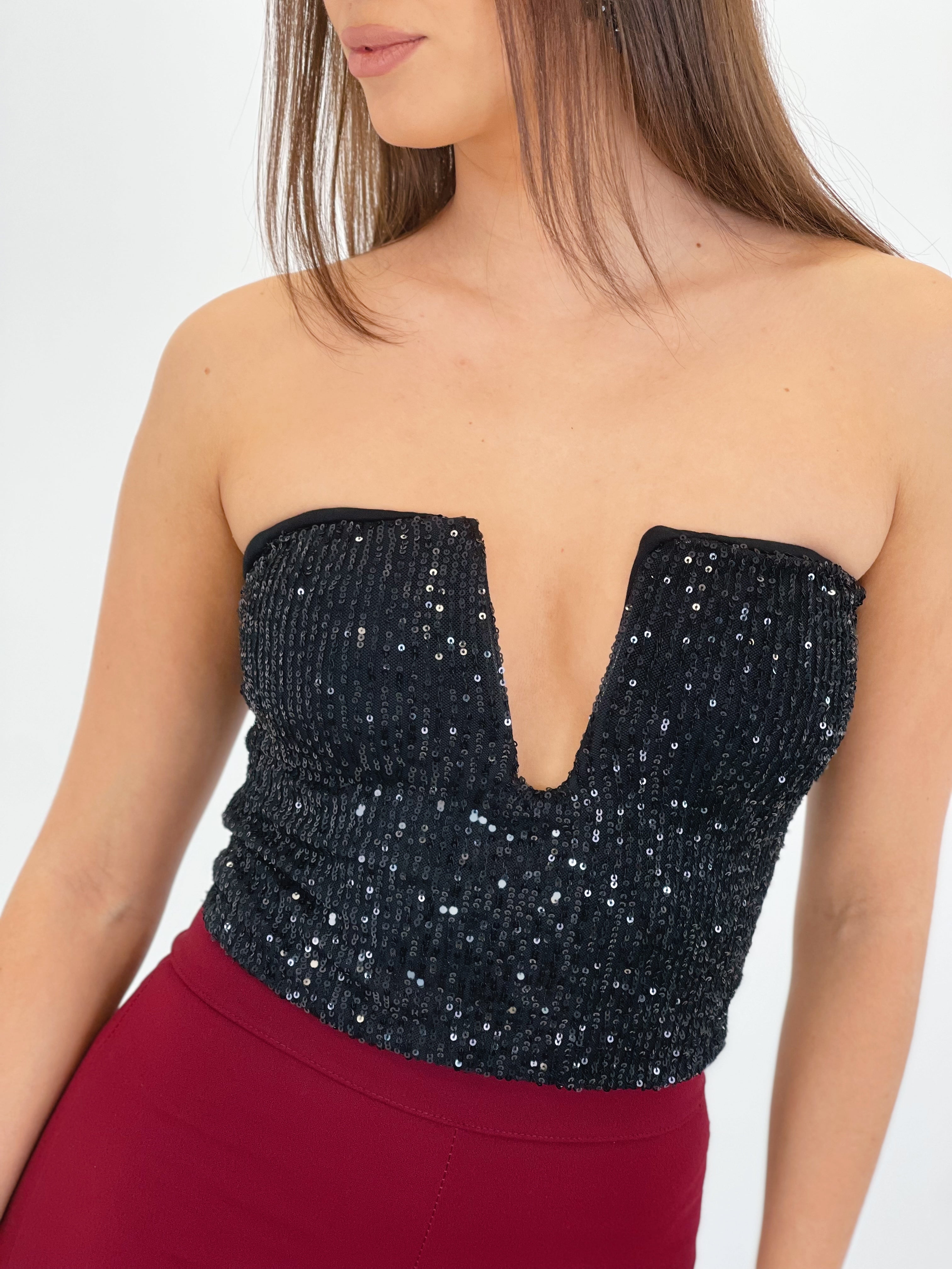 El Top lentejuelas Ofeli presenta un llamativo escote en V y una cobertura de lentejuelas pequeñas que le dan un look único. Además, cuenta con un suave forro interior y relleno para brindar comodidad y soporte. Perfecto para darle un toque de brillo a cualquier outfit.