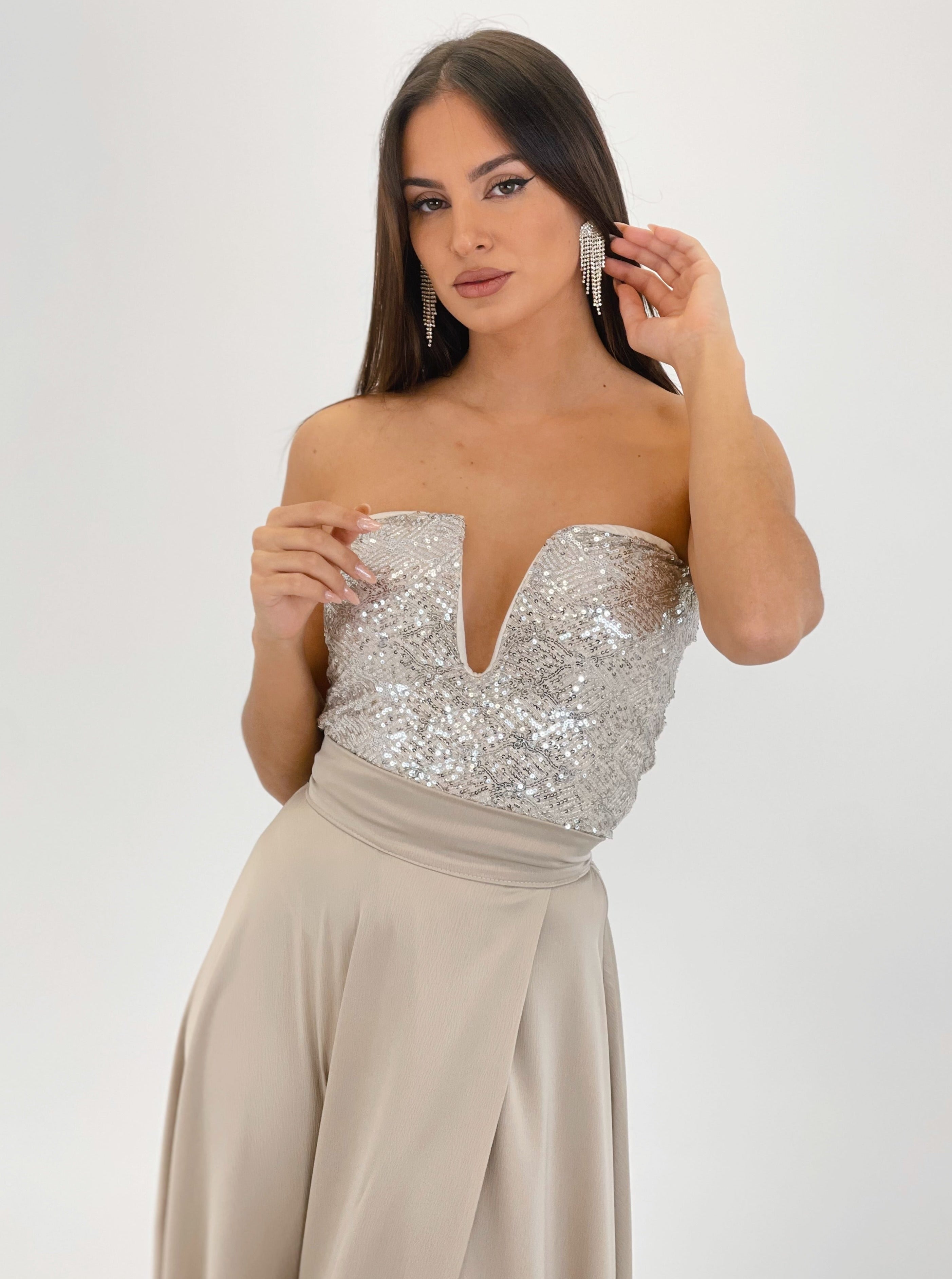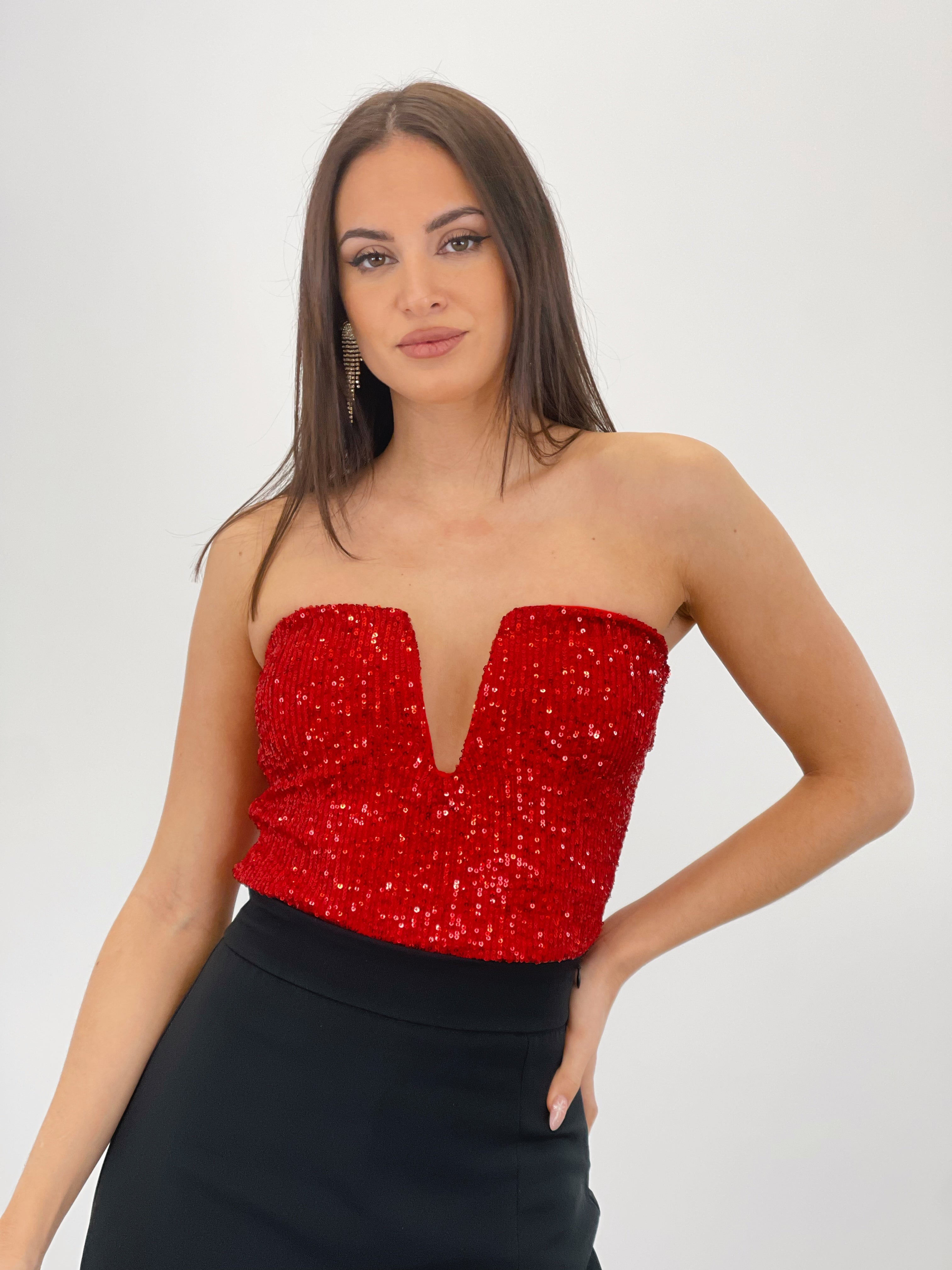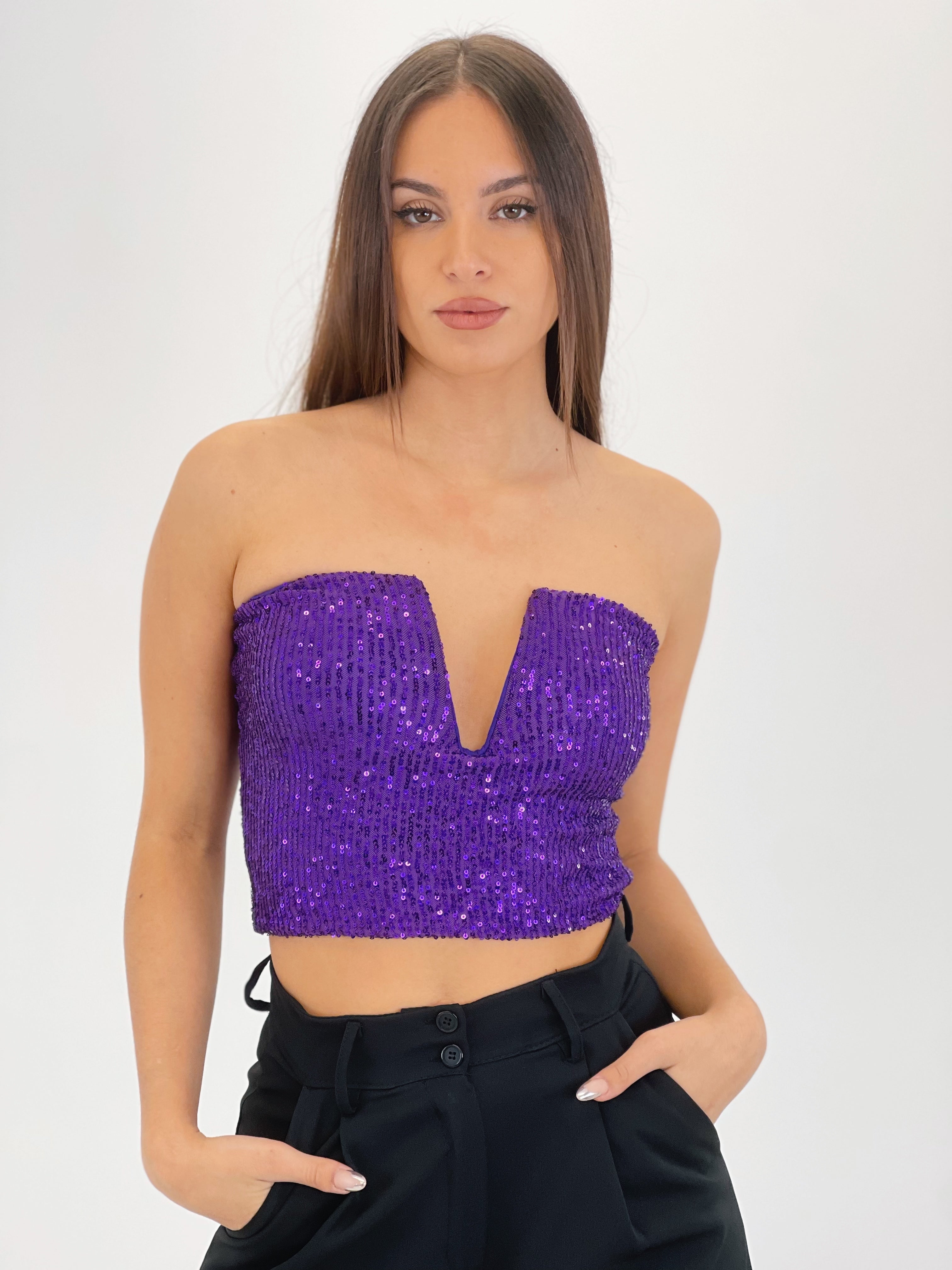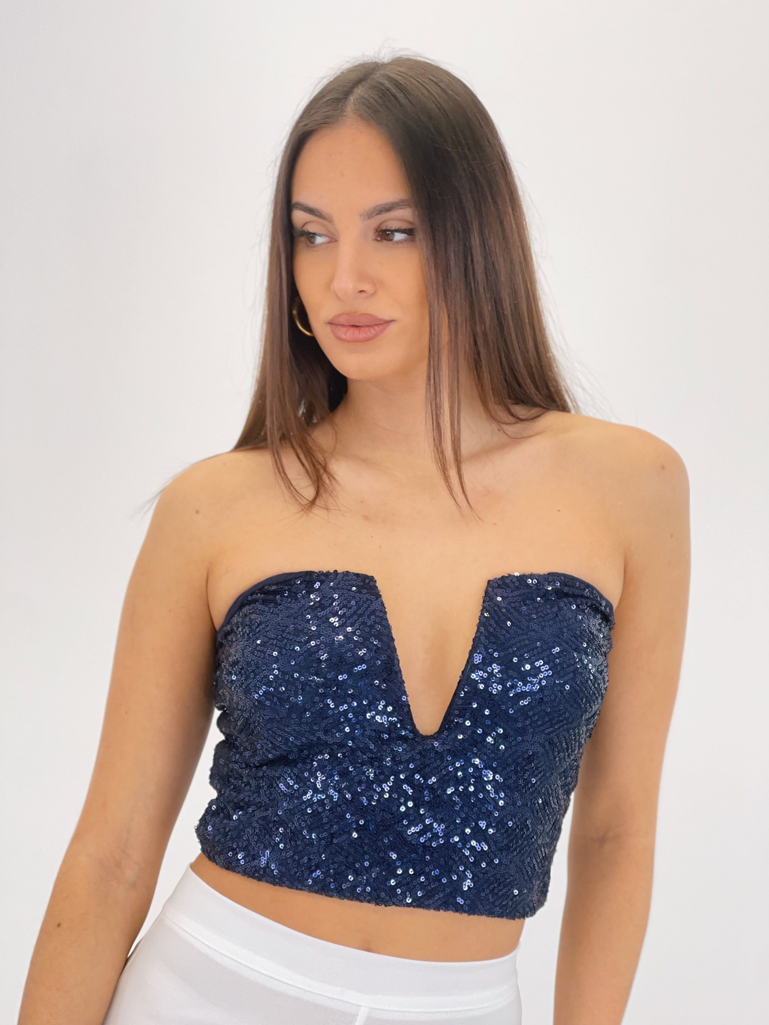 El Top lentejuelas Ofeli presenta un llamativo escote en V y una cobertura de lentejuelas pequeñas que le dan un look único. Además, cuenta con un suave forro interior y relleno para brindar comodidad y soporte. Perfecto para darle un toque de brillo a cualquier outfit.