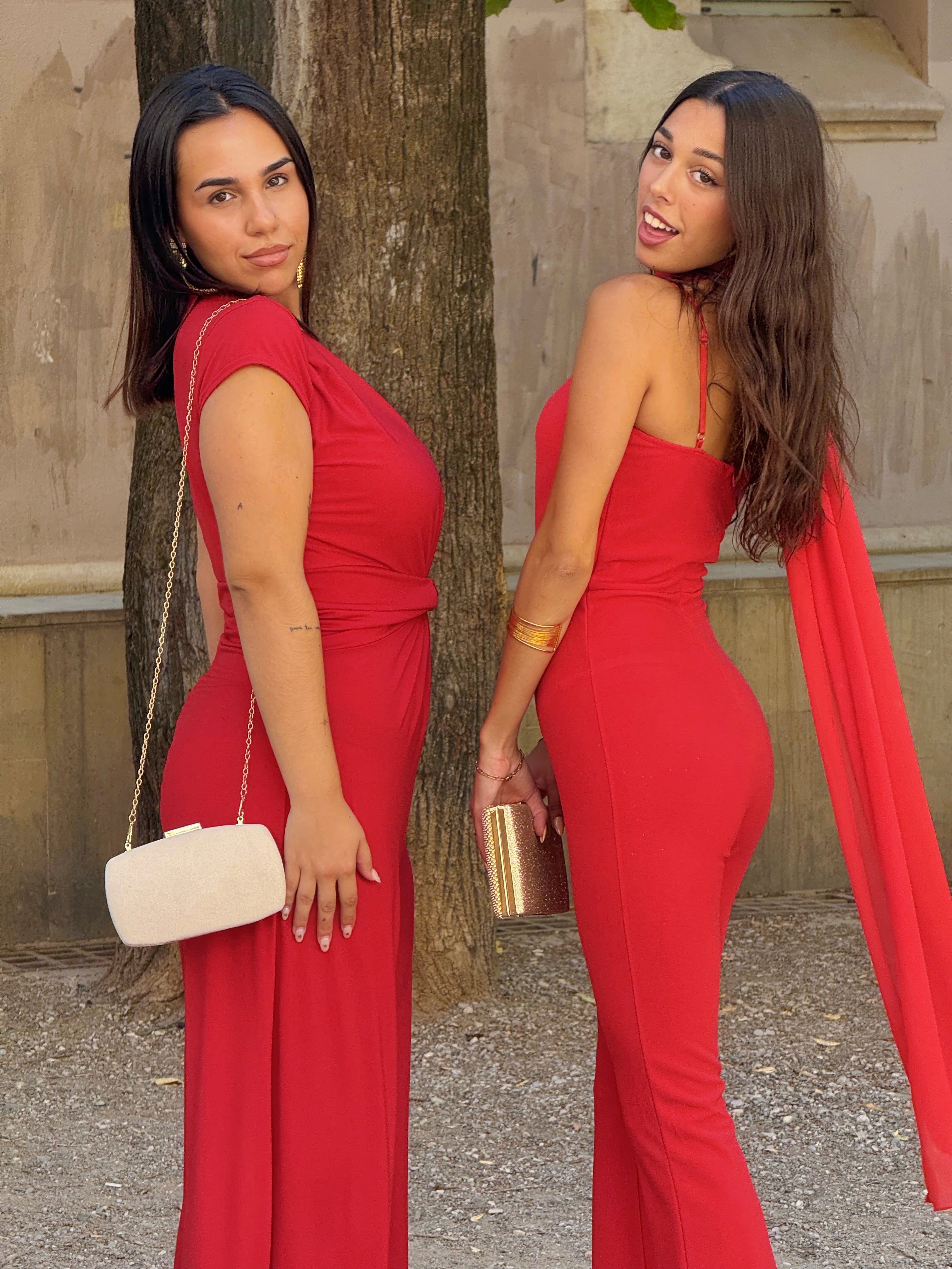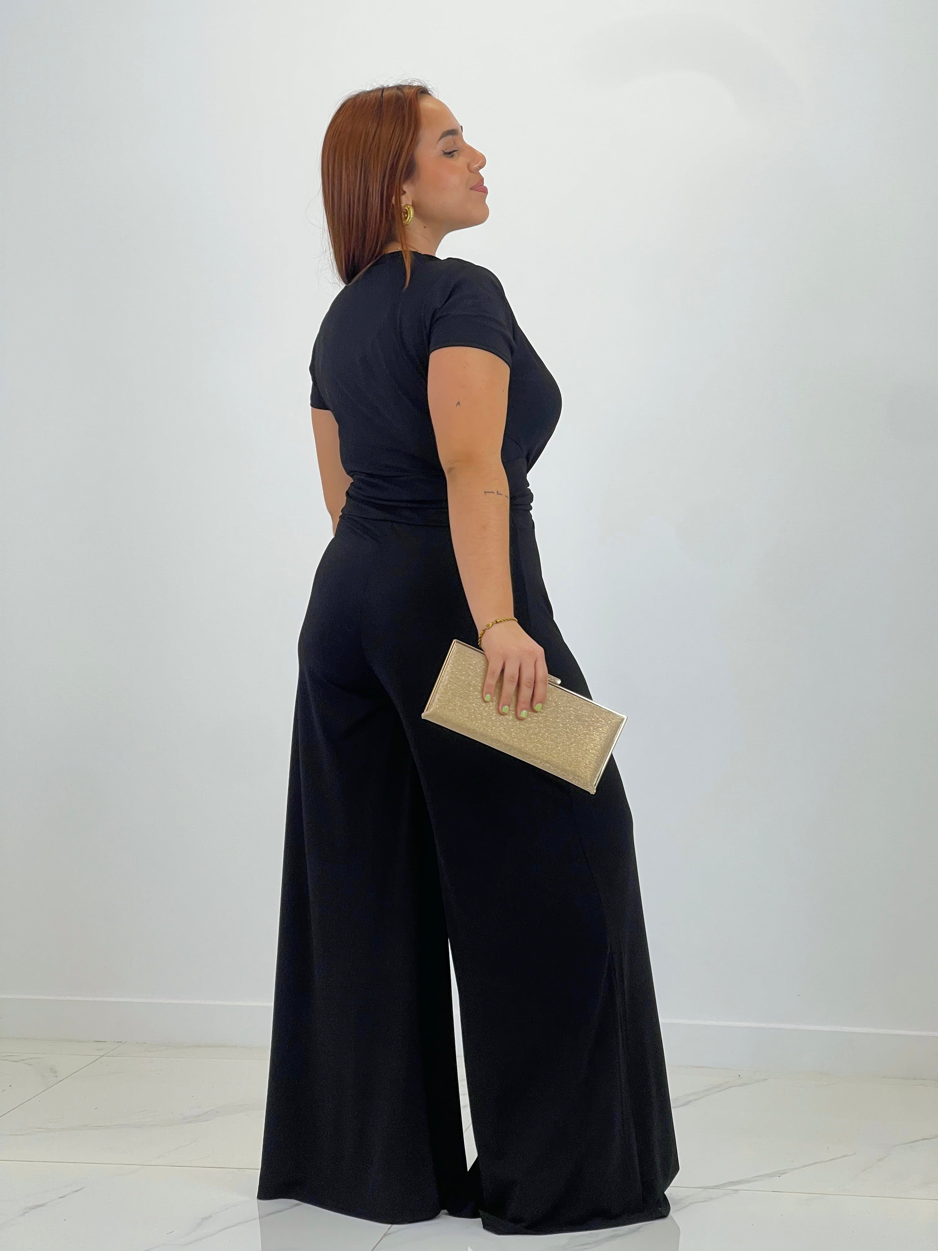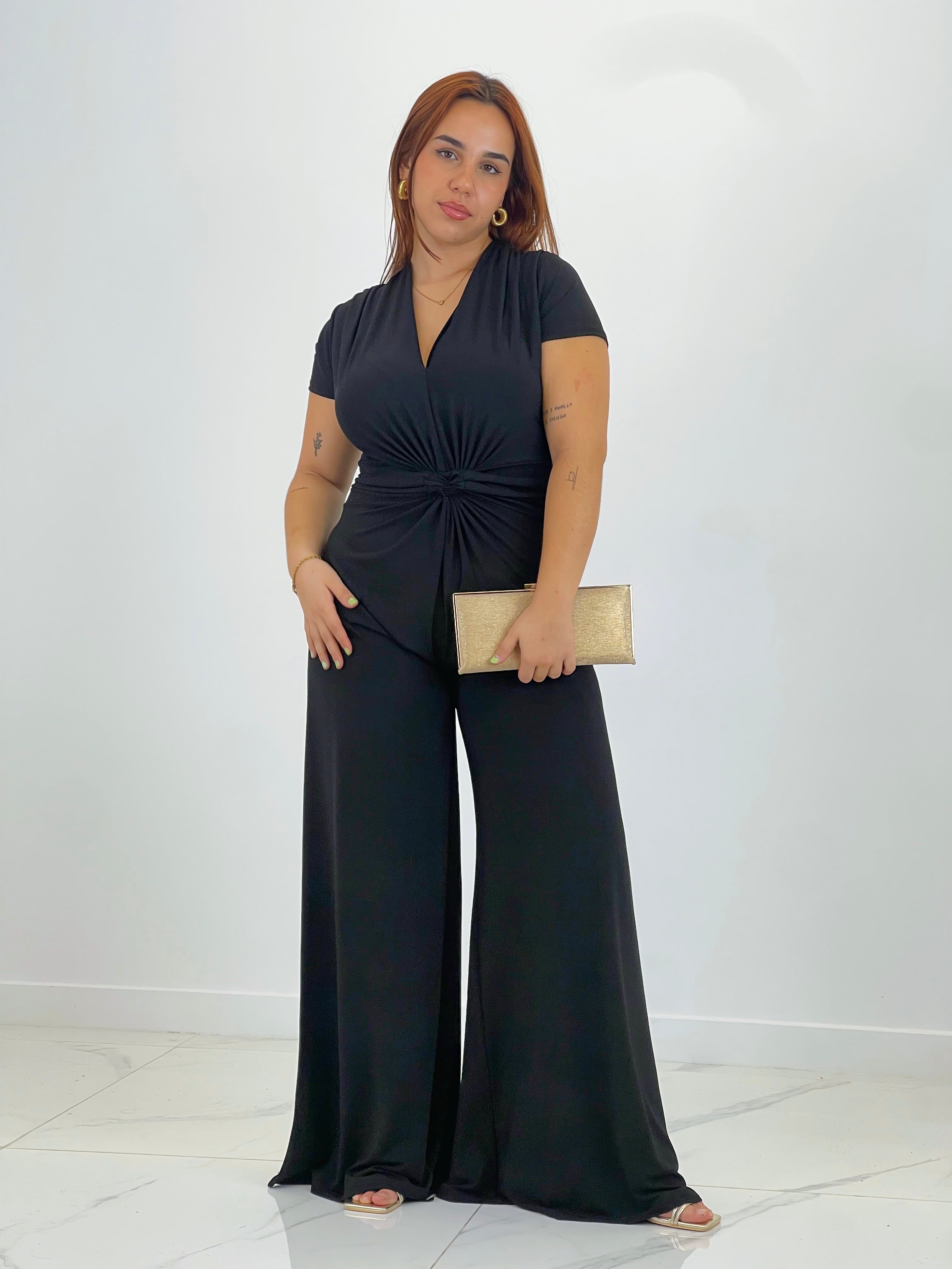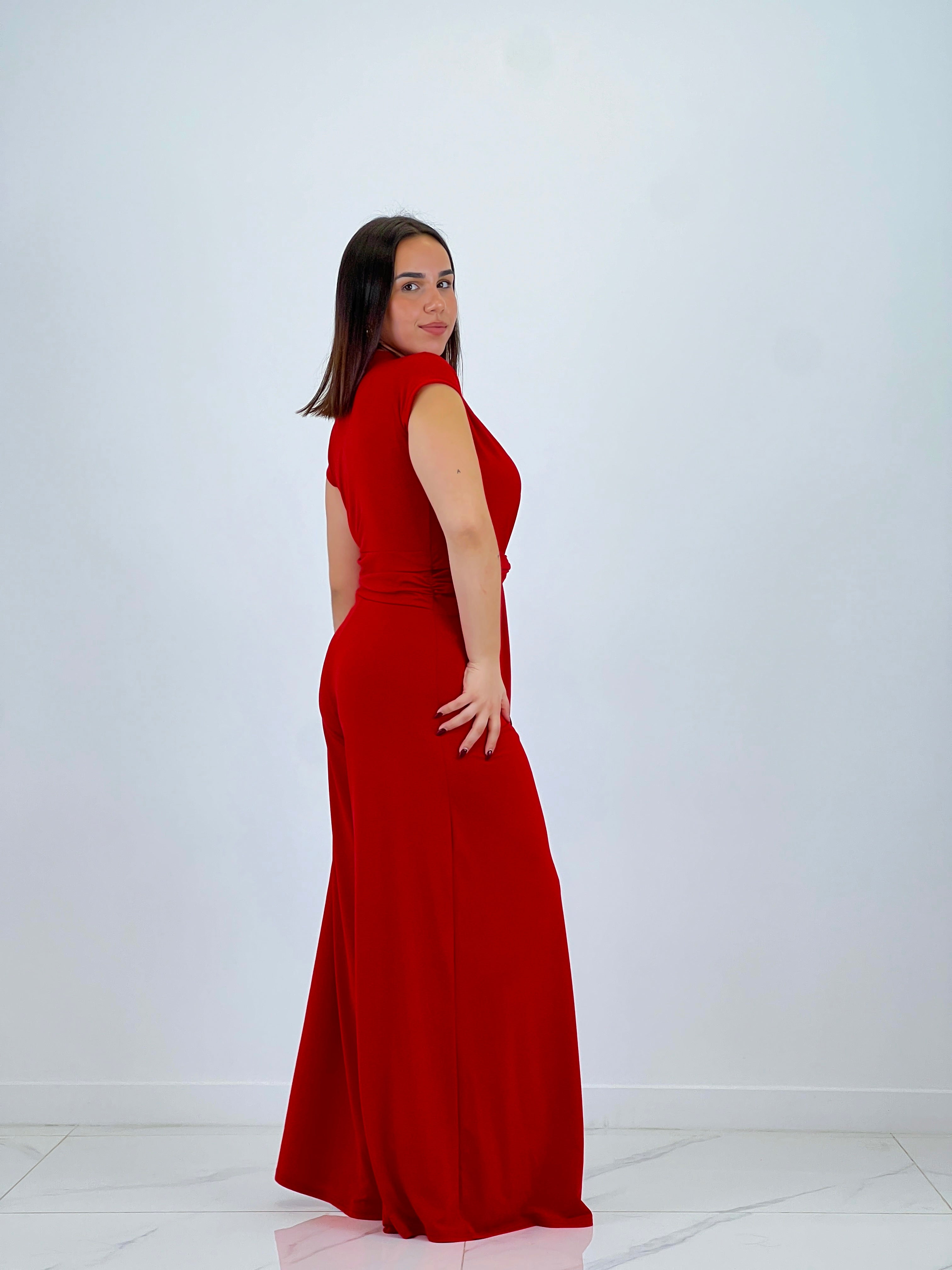 Este mono fruncido de manga corta se adapta a diferentes tallas, desde la 36 hasta la 46. Su diseño ceñido acentúa la figura y los detalles fruncidos en la cintura y en los hombros lo hacen elegante y femenino. Es perfecto para lucir en una ocasión especial o una salida nocturna.
