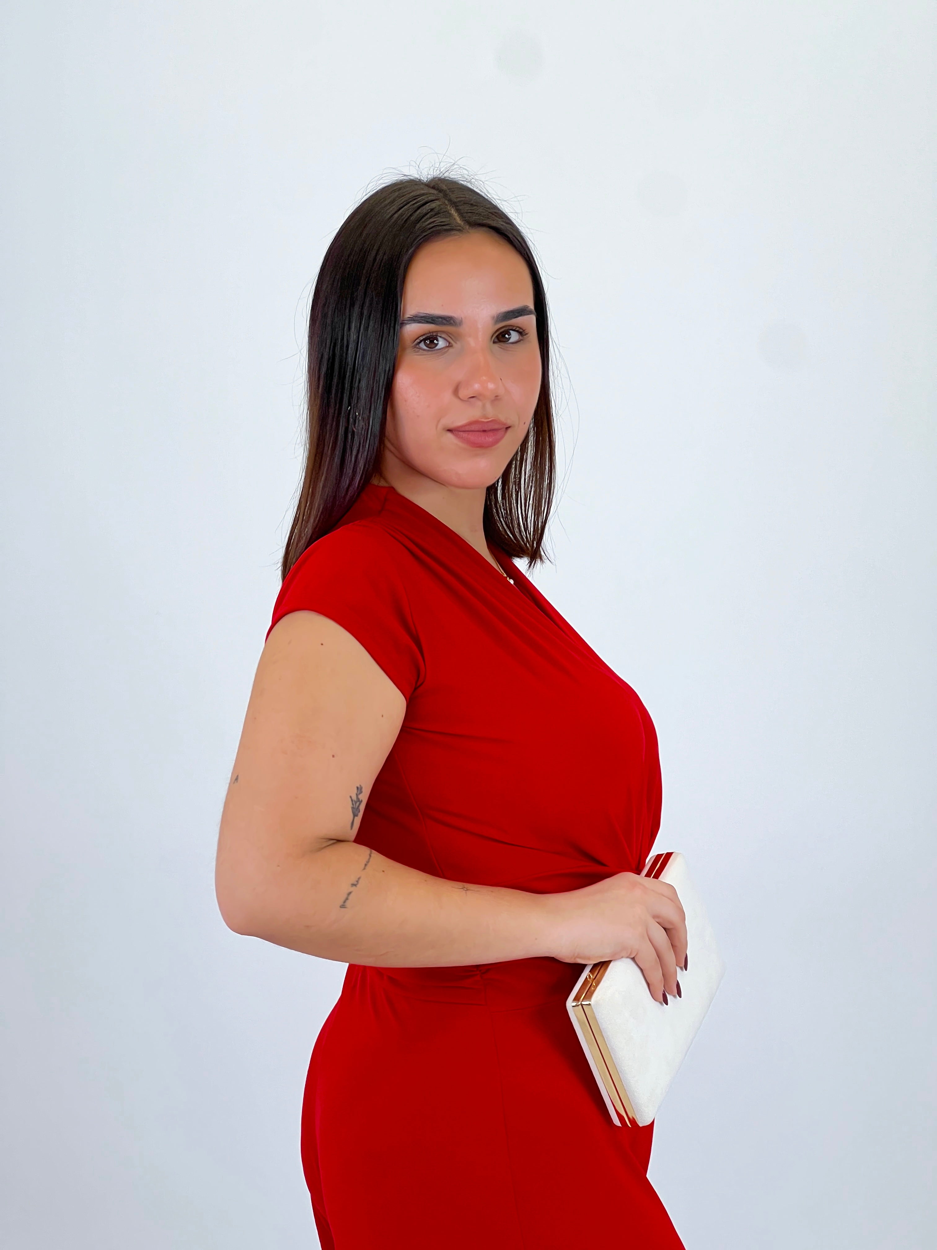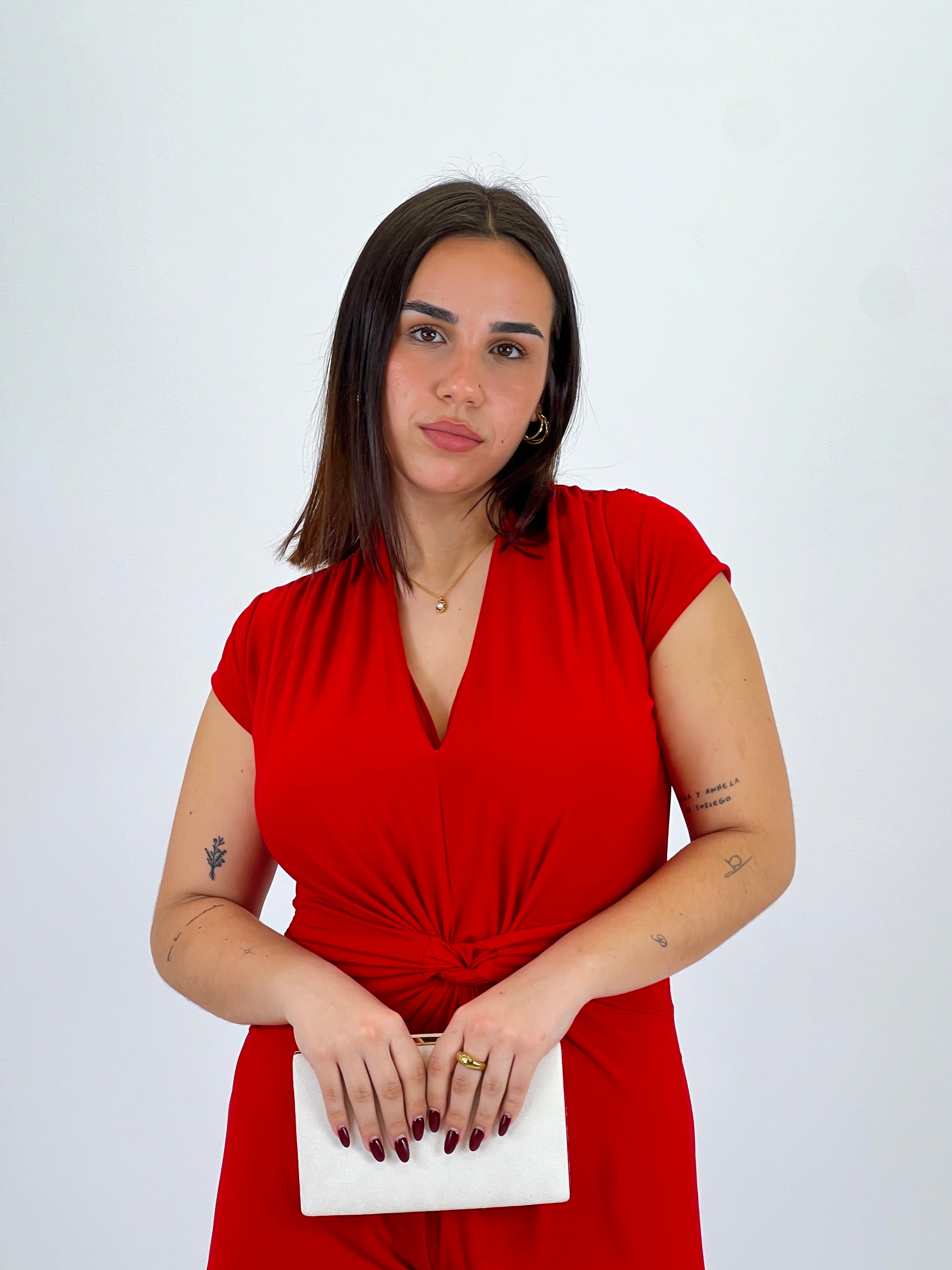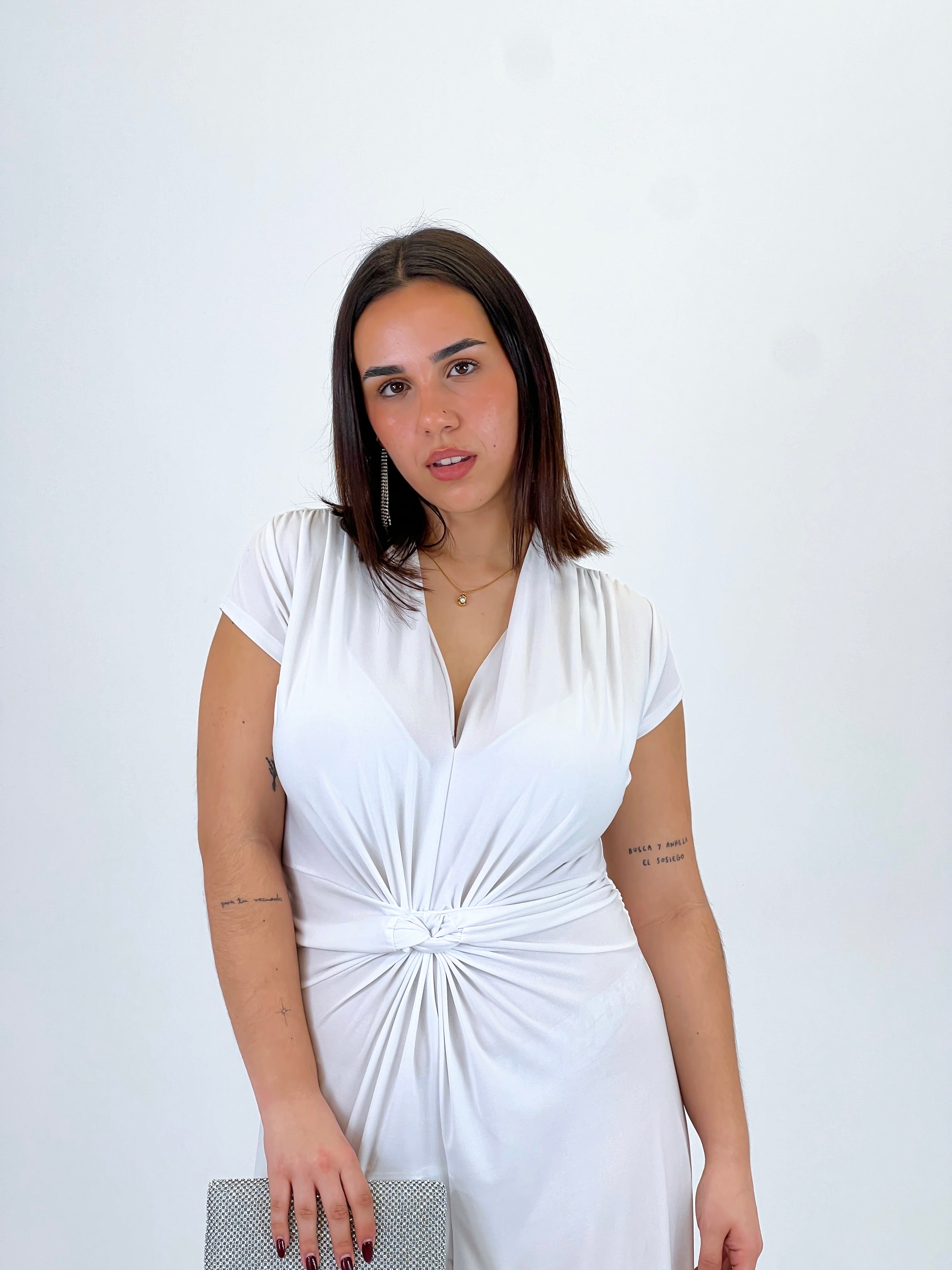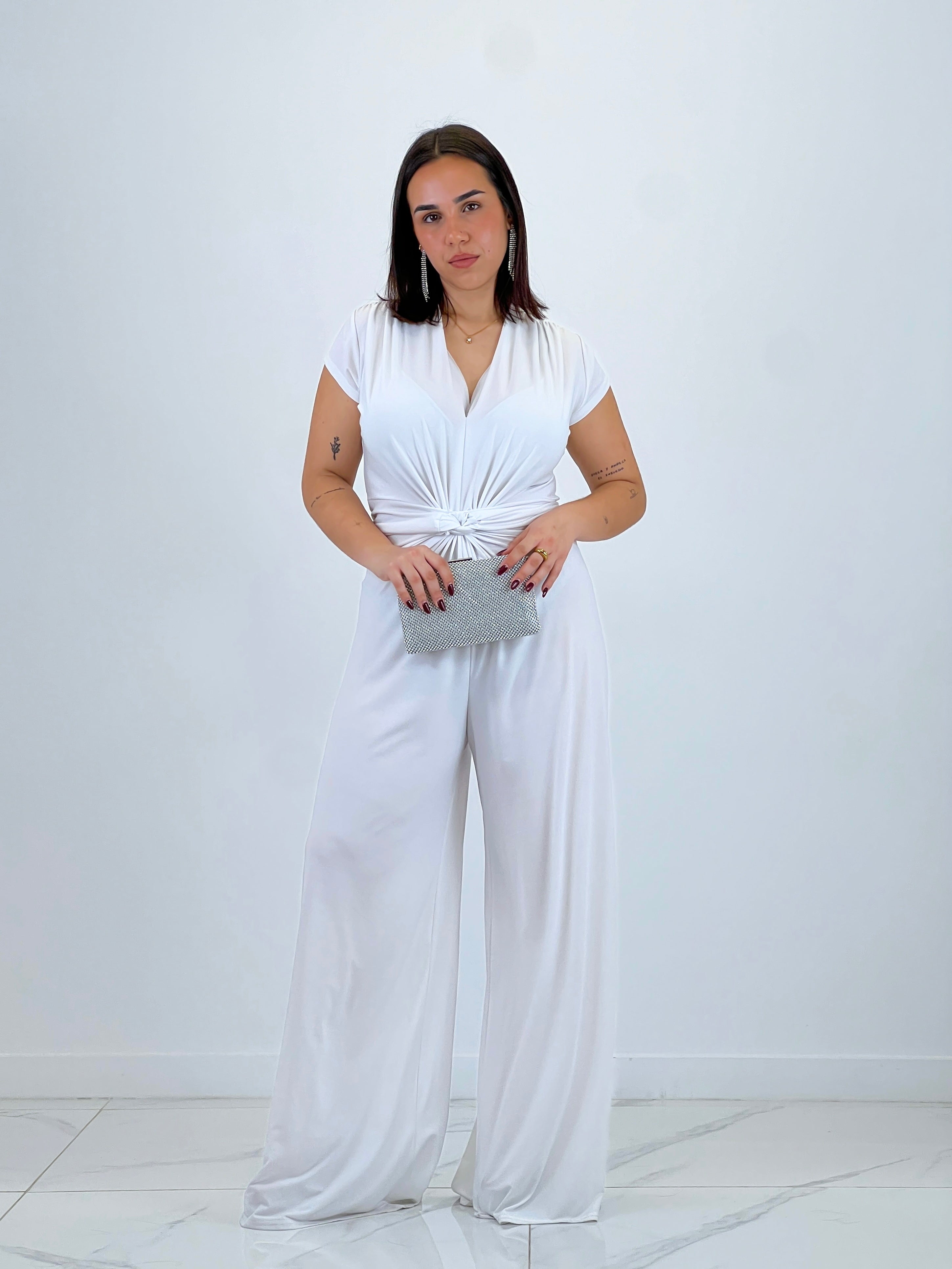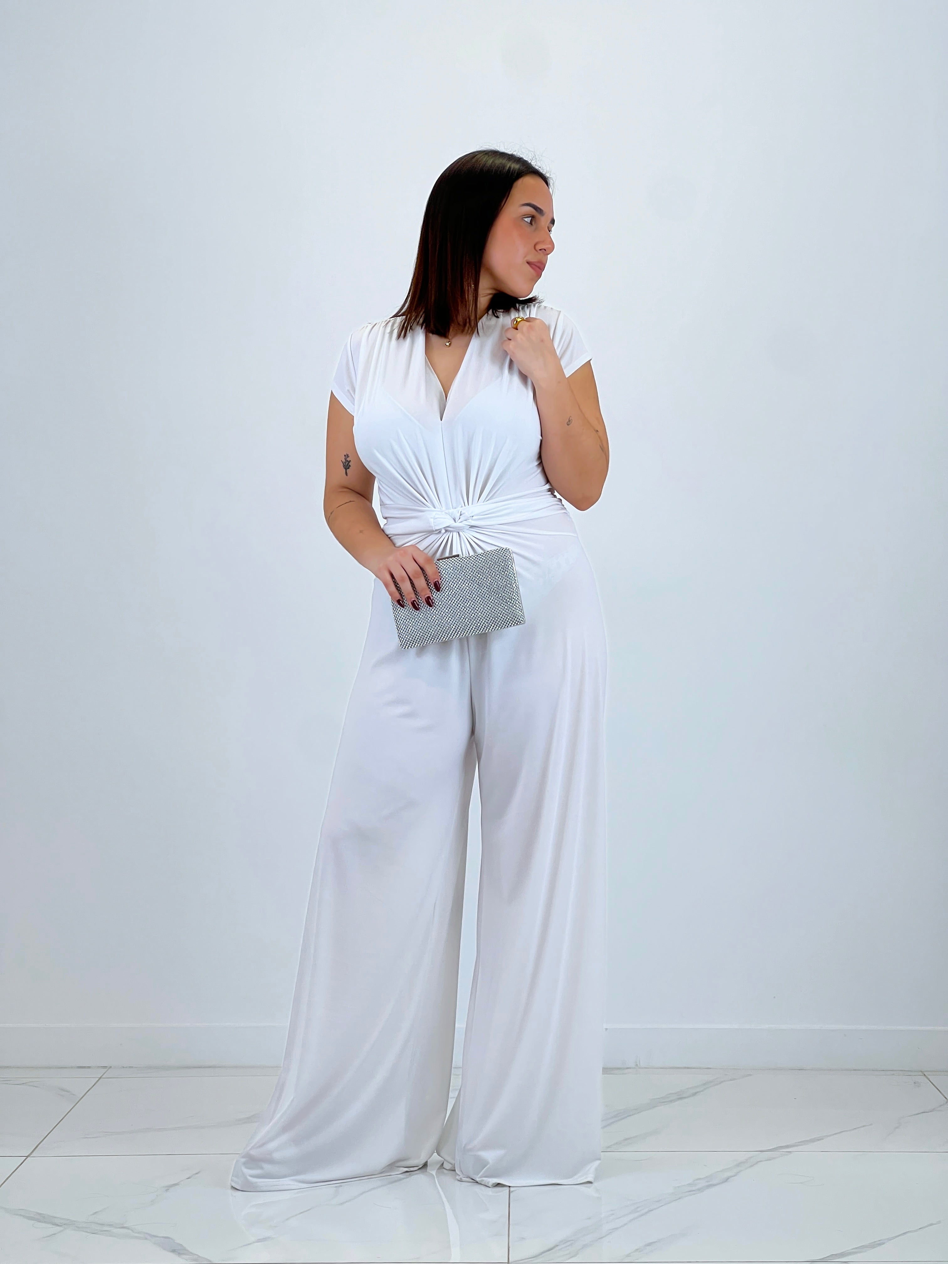 Este mono fruncido de manga corta se adapta a diferentes tallas, desde la 36 hasta la 46. Su diseño ceñido acentúa la figura y los detalles fruncidos en la cintura y en los hombros lo hacen elegante y femenino. Es perfecto para lucir en una ocasión especial o una salida nocturna.