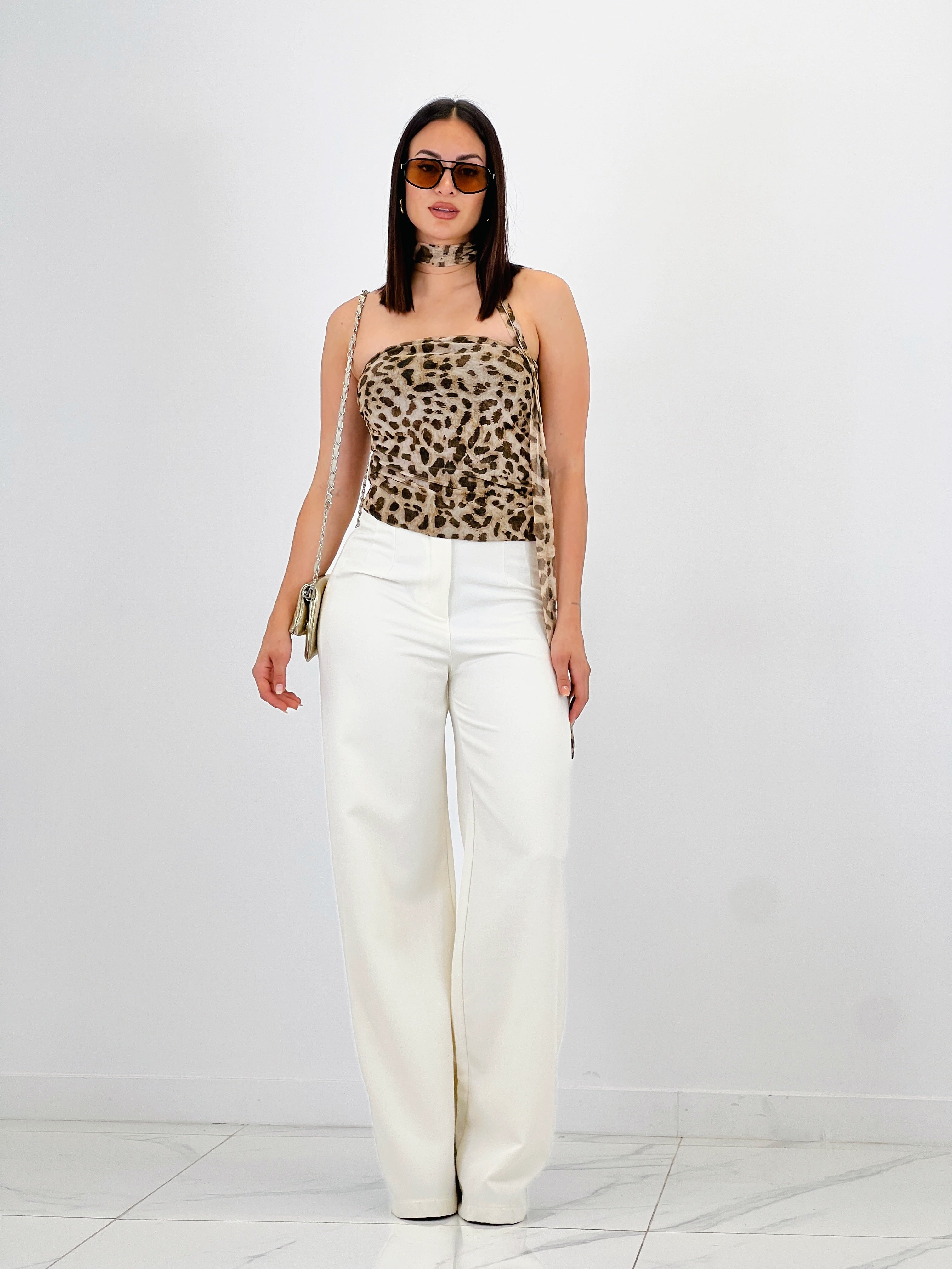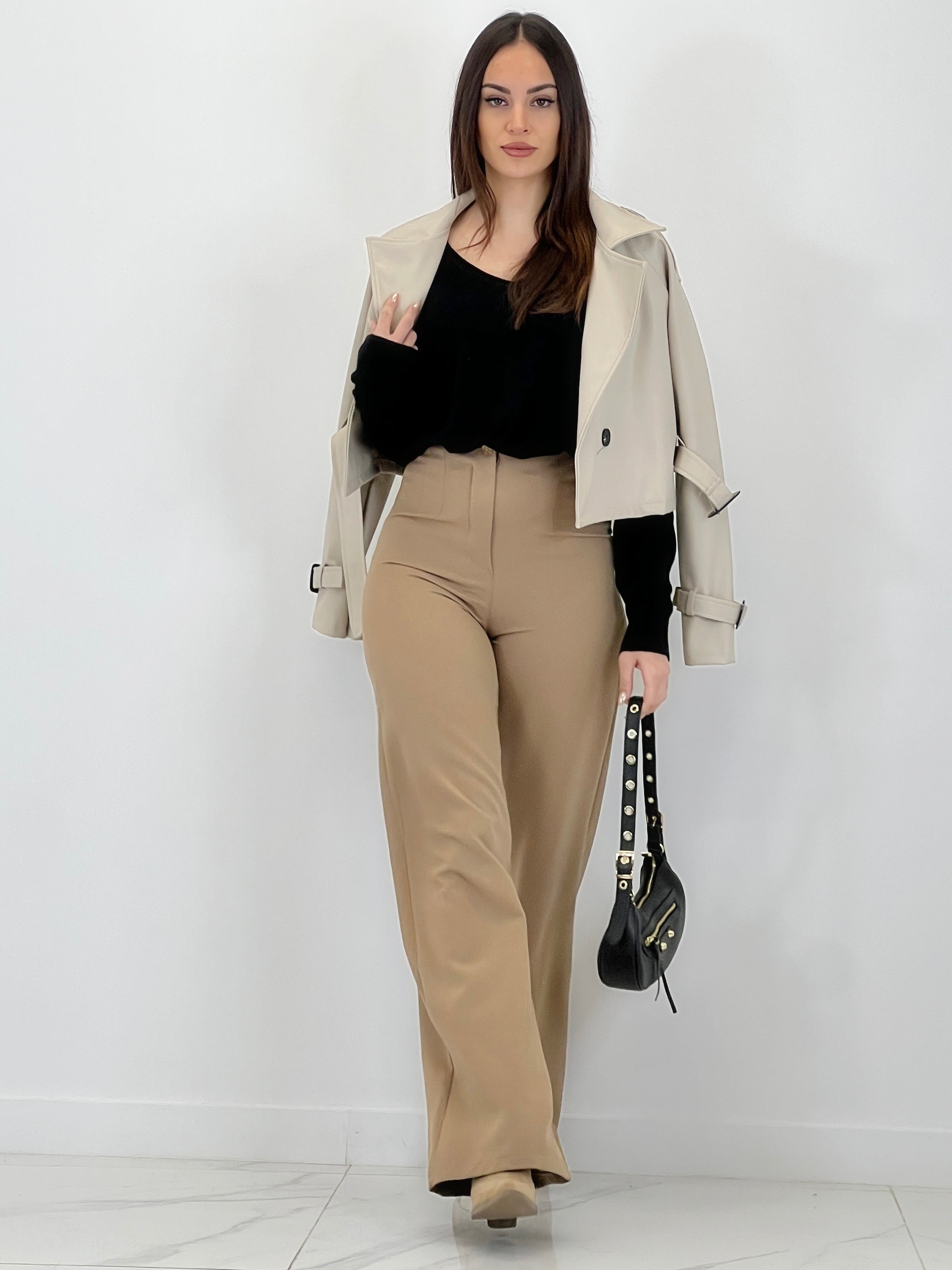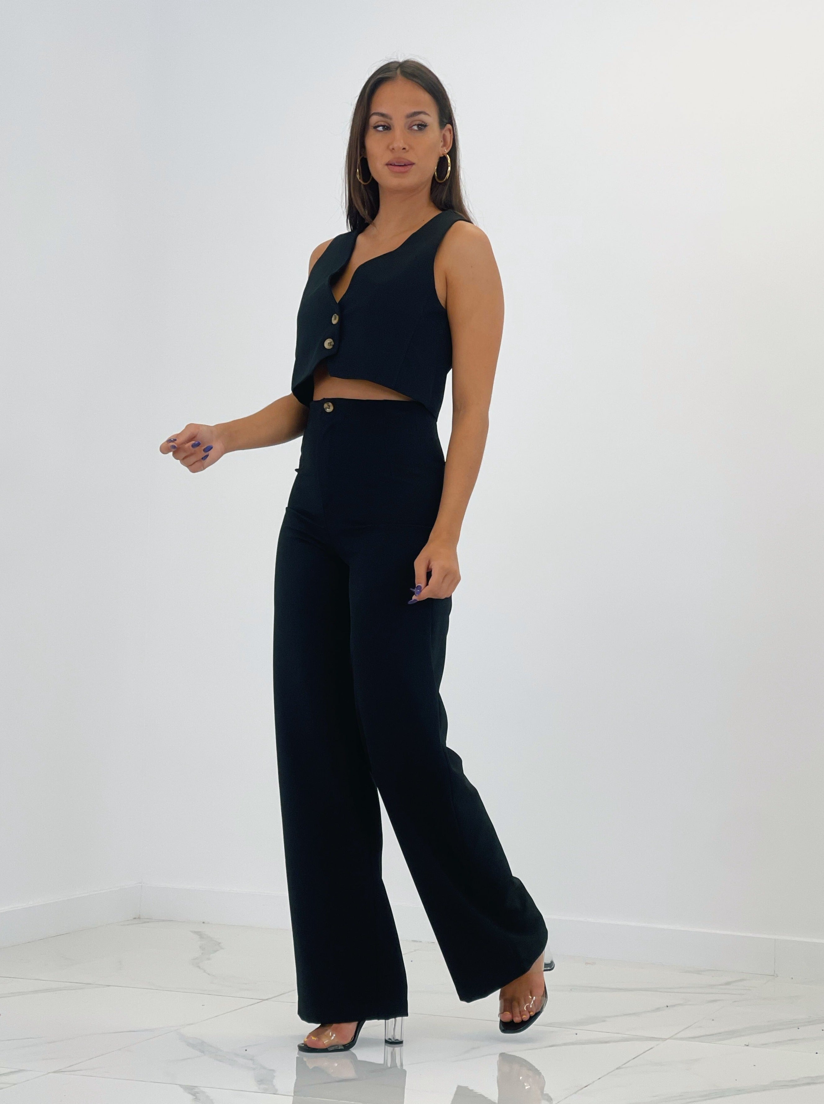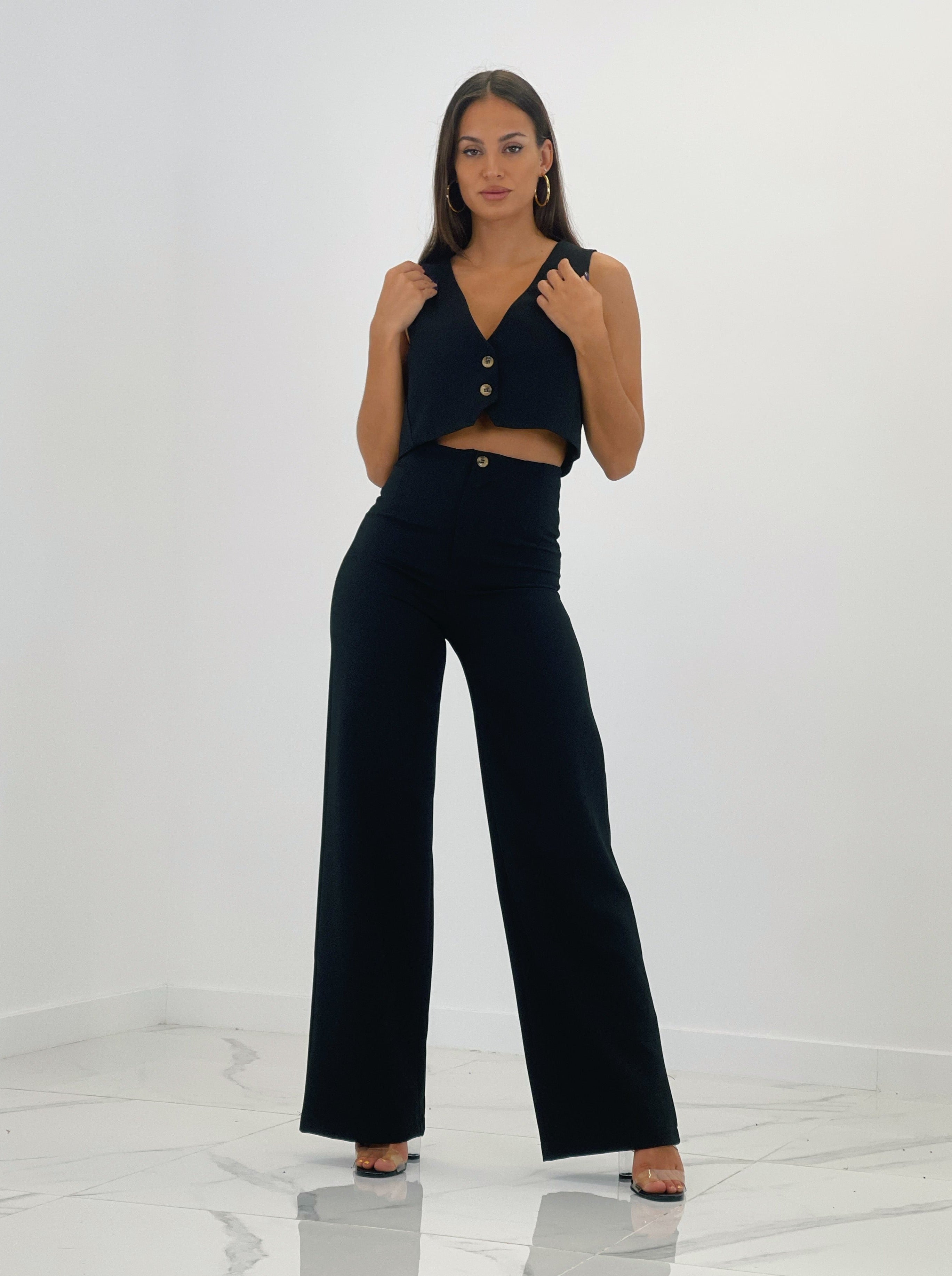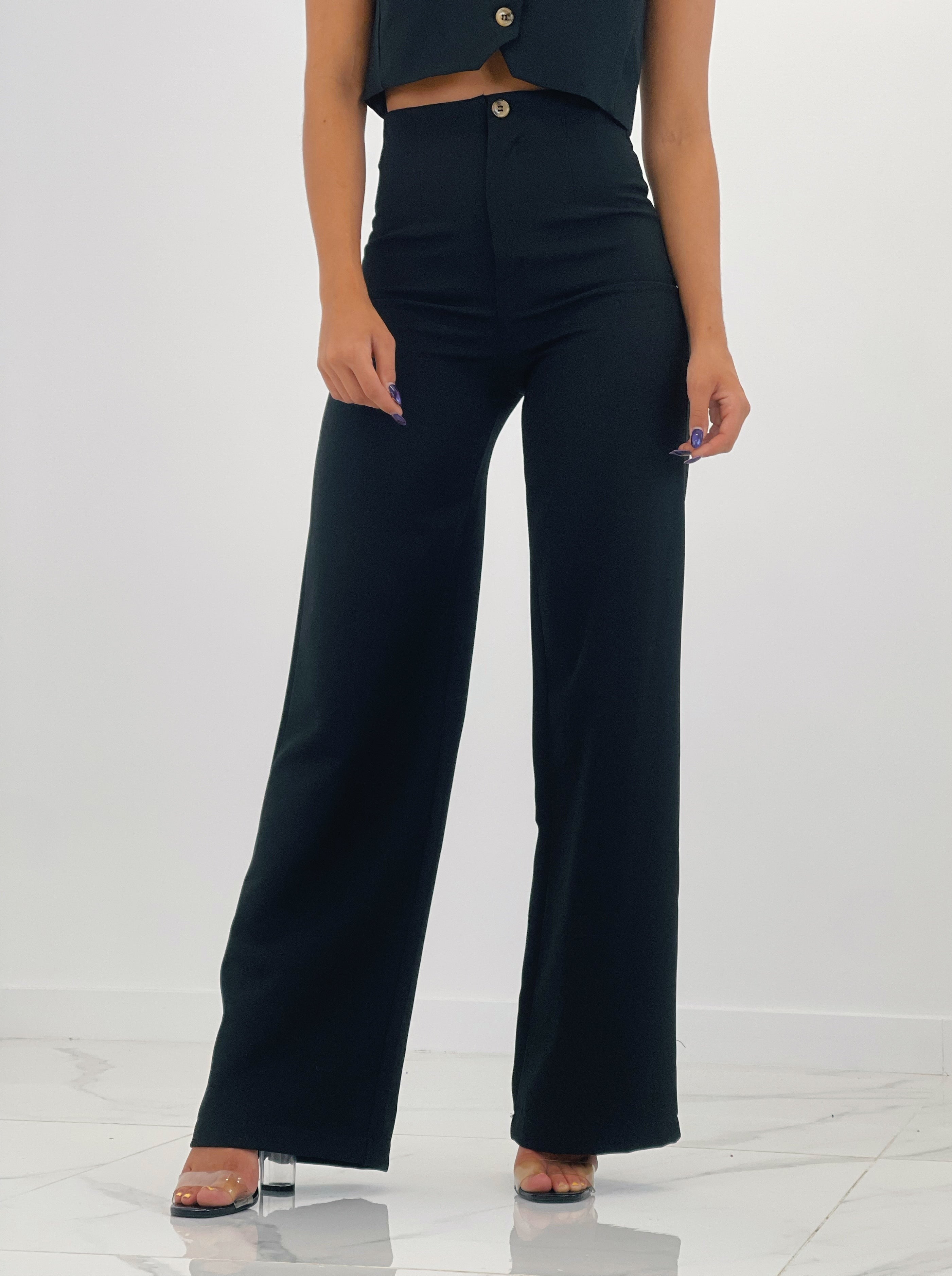 Este Pantalón palazzo Tilda es perfecto para un look elegante y sofisticado. Con su corte amplio y pernera recta, te garantiza comodidad y estilo a partes iguales. Su cintura alta y efecto ‘high waist’ realzan tu figura, mientras que el cierre con botón y cremallera lo hacen aún más práctico.