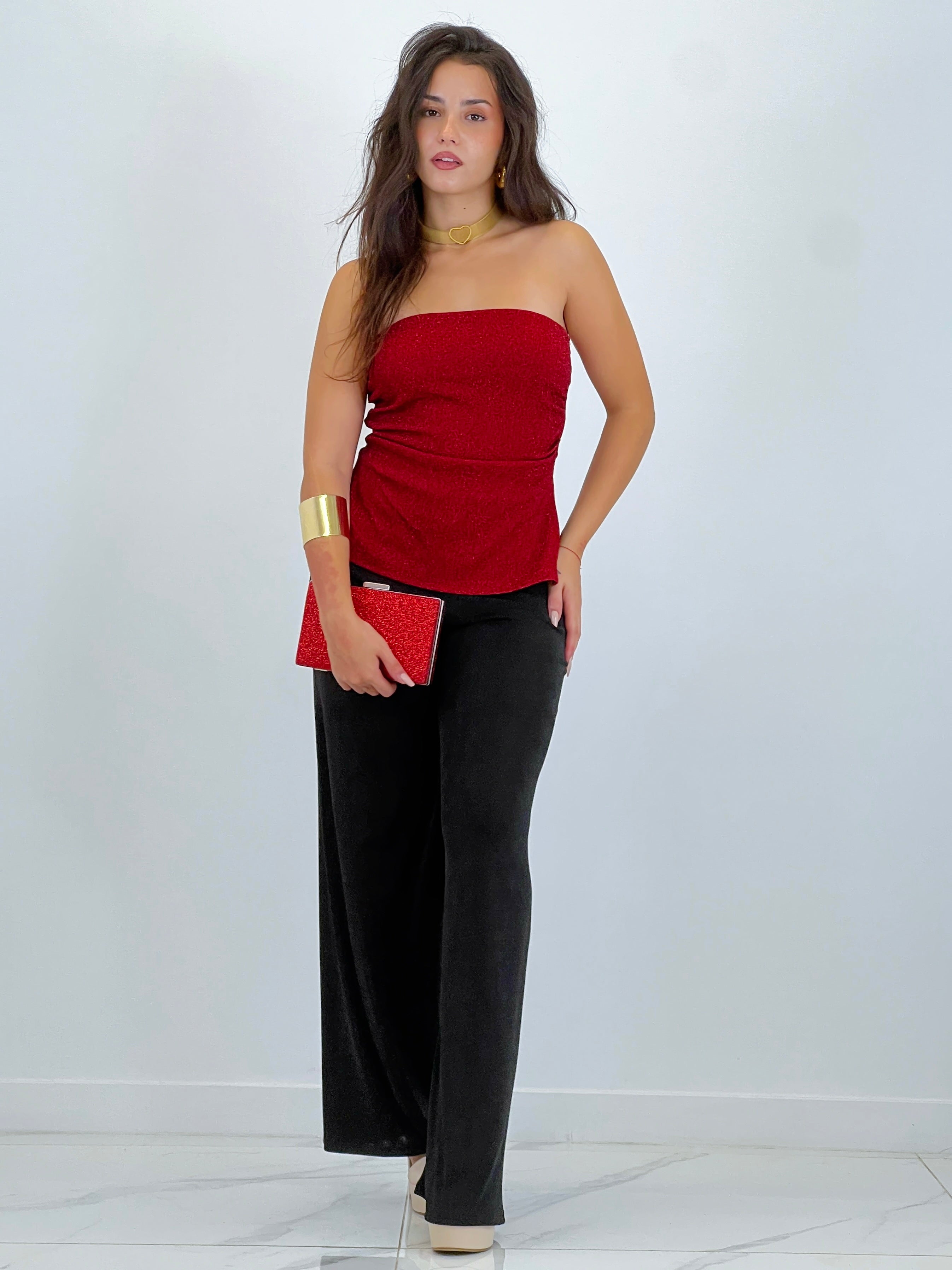 Top bandana glitter. Ajustado y con aperturas laterales en la parte baja del top.