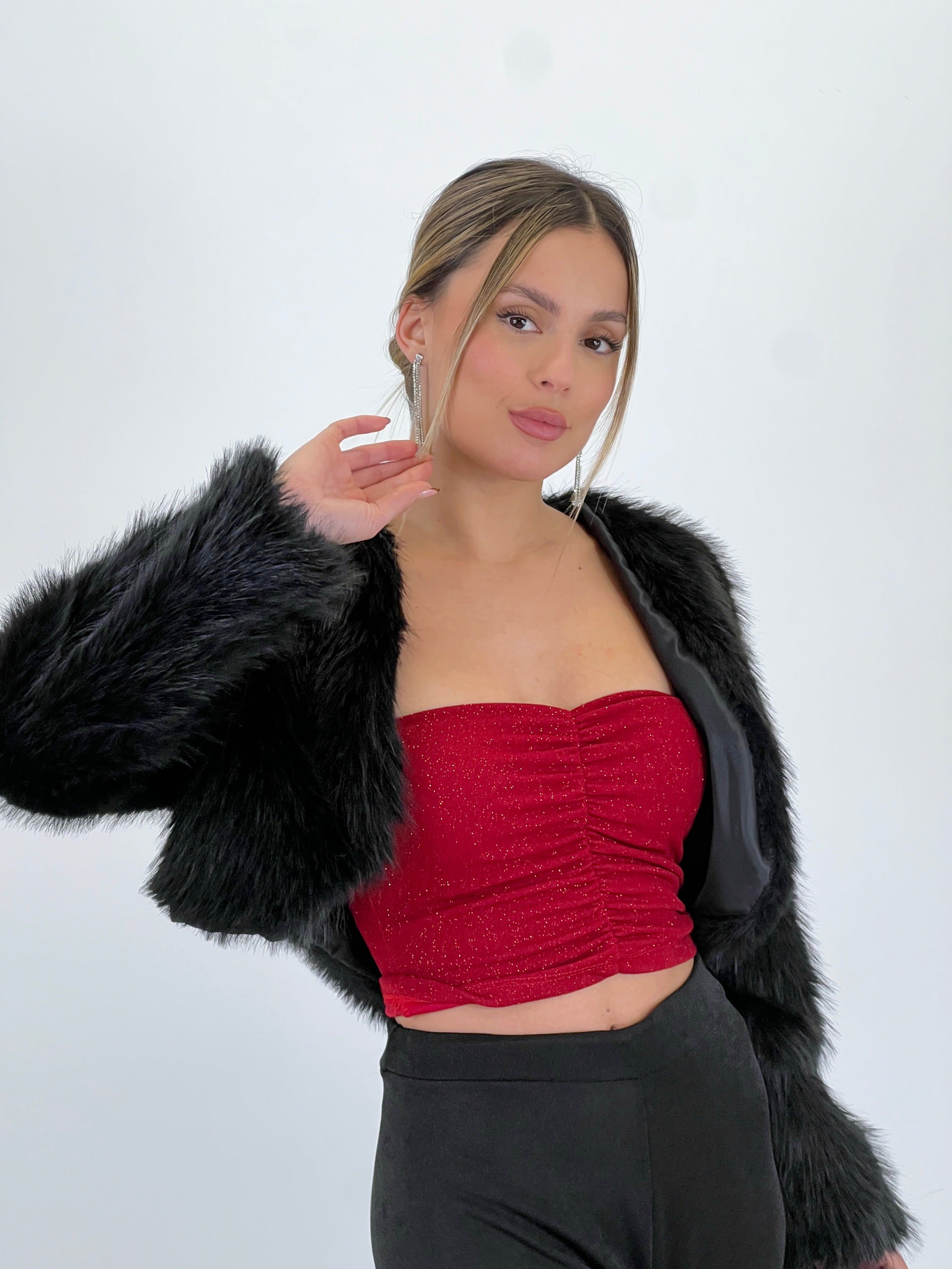 Top banda lurex fruncido con efecto brillante