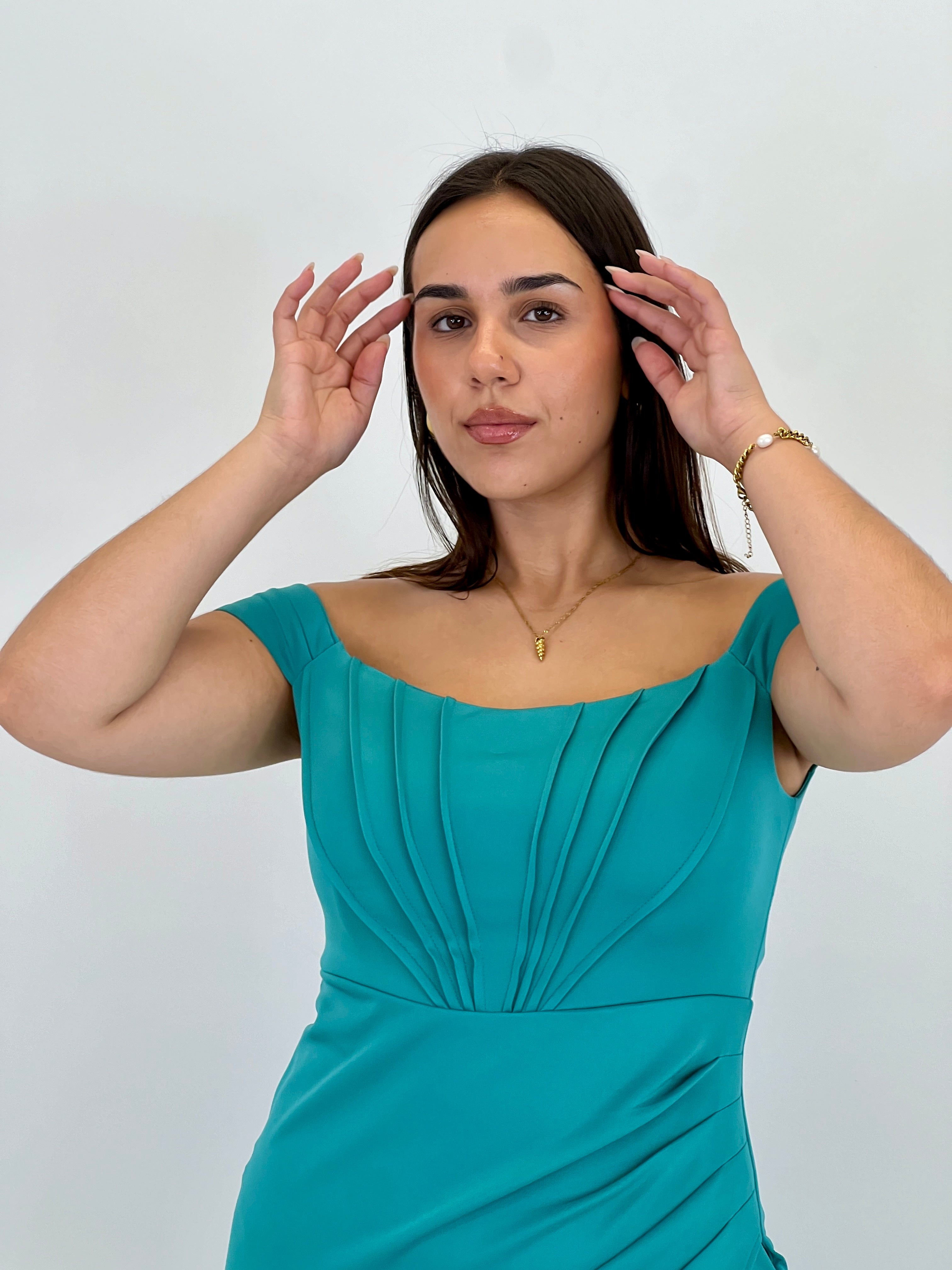 Este vestido palabra de honor Selene es perfecto para ceremonias y eventos especiales. Con su elegante diseño ceñido y abertura en la falda lateral, te sentirás cómoda y elegante al mismo tiempo. Además, su amplia talla te garantiza un ajuste perfecto y favorecedor.