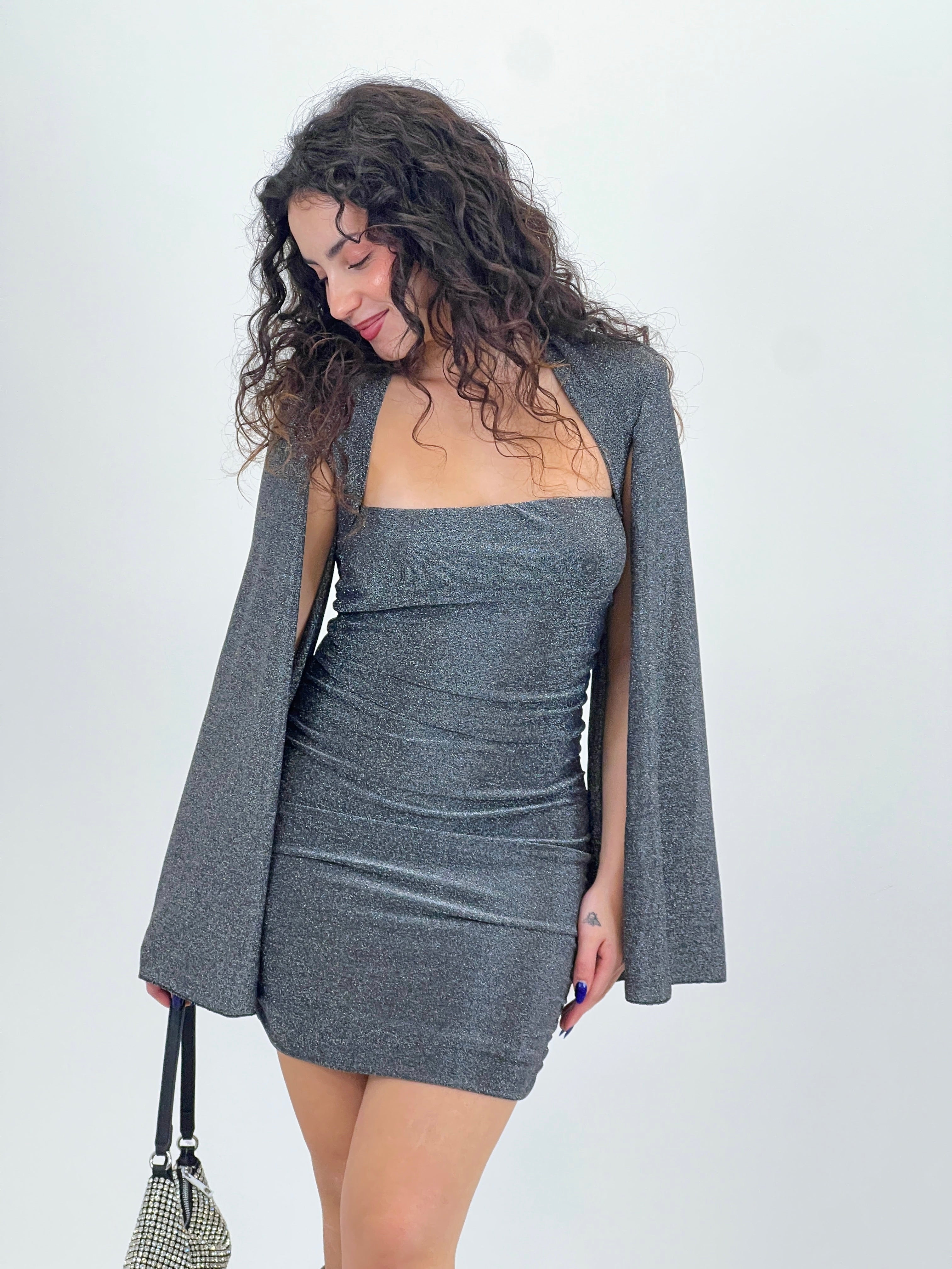 Vestido mangas transparente brillo