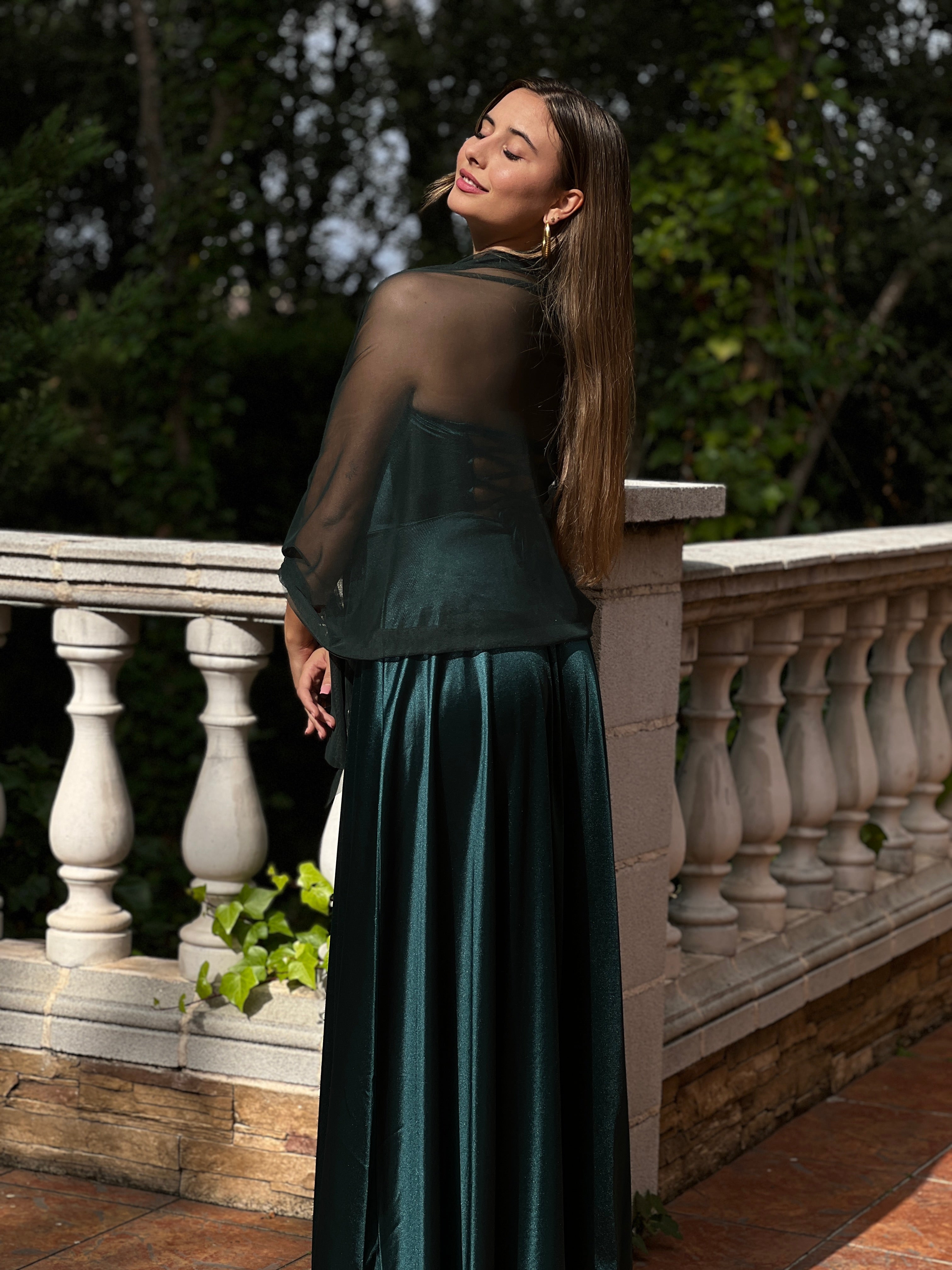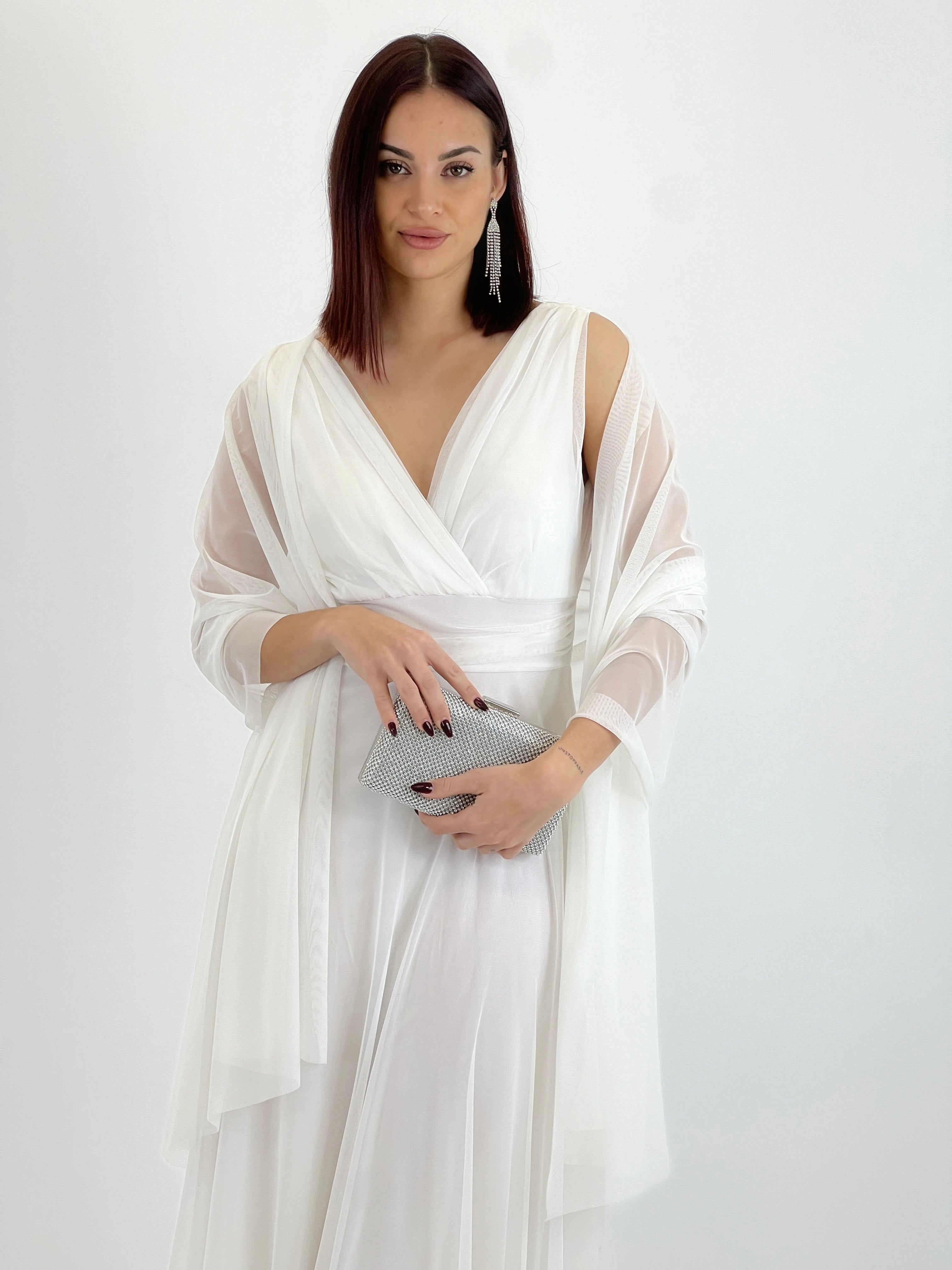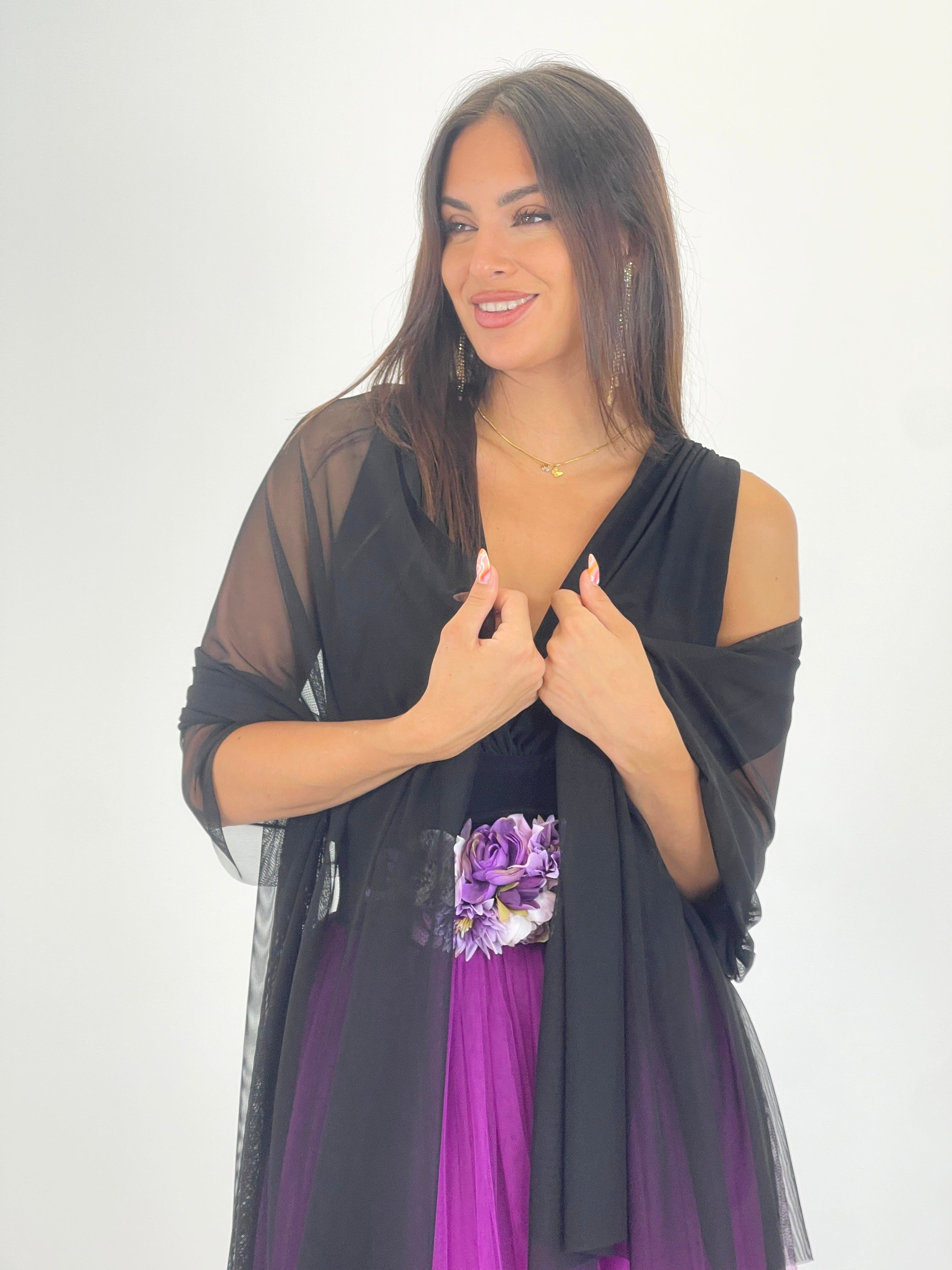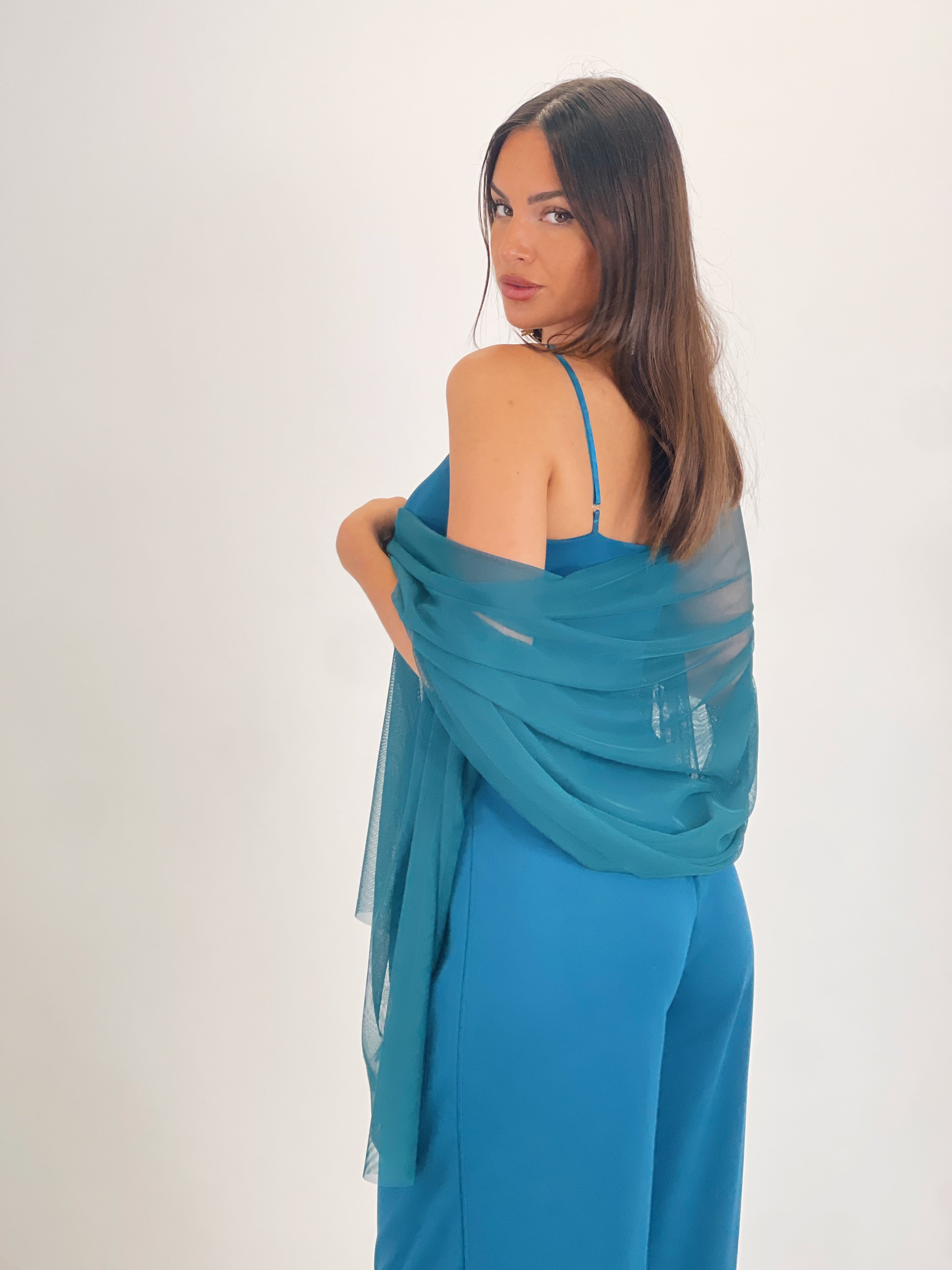 Este Chal de tul es el complemento perfecto para cualquier evento o ceremonia. Con su elegante tejido de tul, le dará un toque sofisticado y delicado a cualquier conjunto.