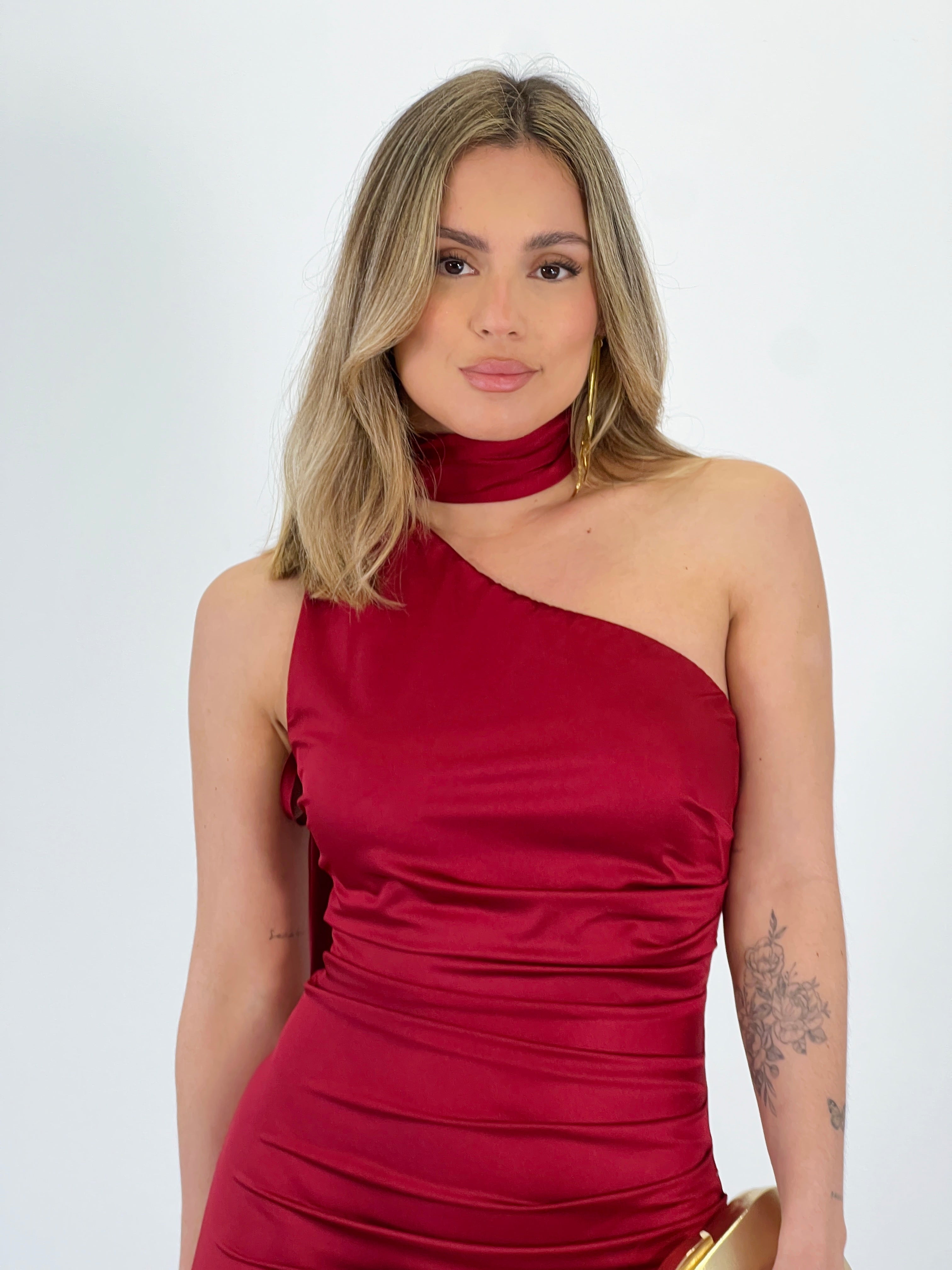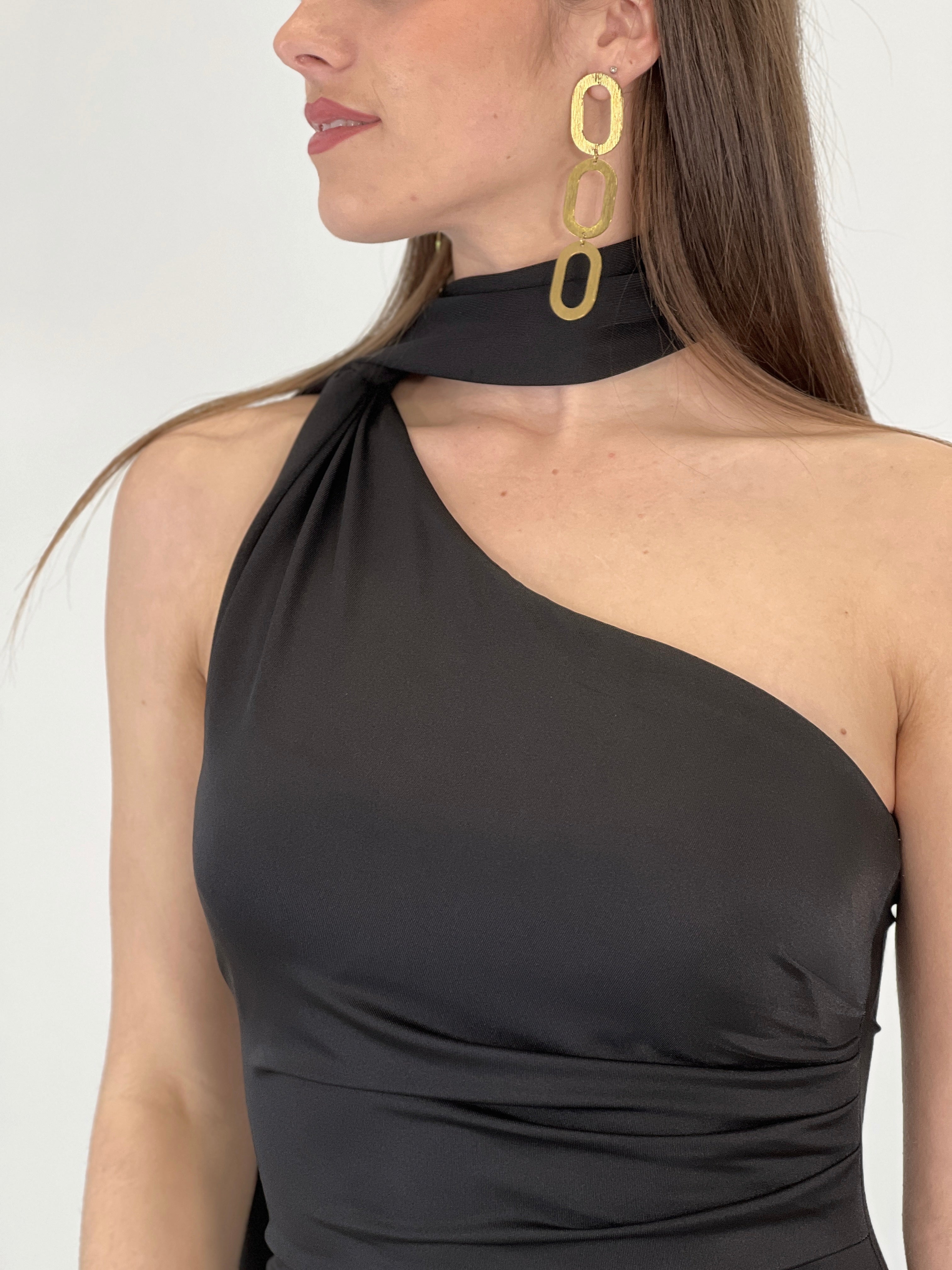 Este moderno vestido asimétrico es perfecto para cualquier evento especial.