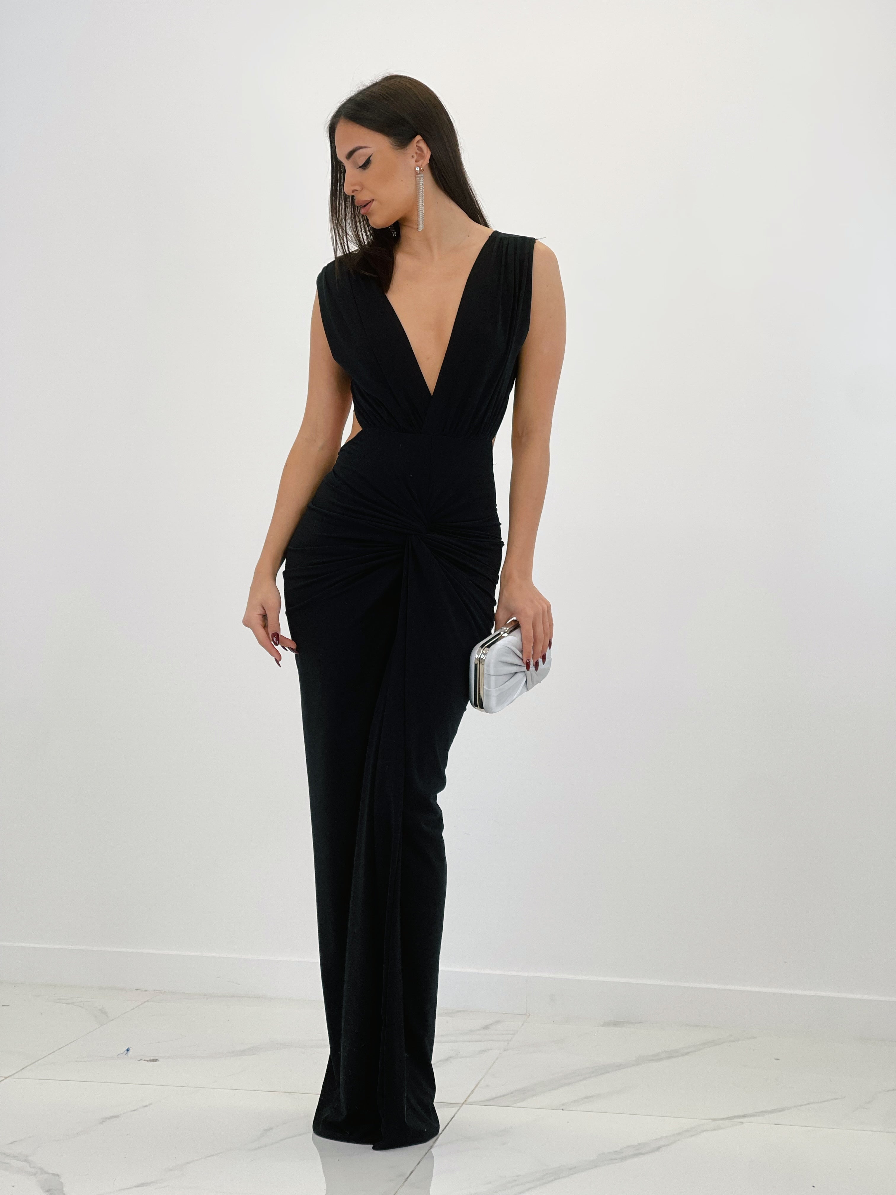 El vestido fruncido anudado Briana es perfecto para un look elegante y sofisticado. Con su escote en pico y su nudo de efecto fruncido en la parte central, resaltará tu figura de manera sutil y femenina. Además, su espalda descubierta y amplio corte en la pernera te harán sentir fresca y cómoda en cualquier ocasión.