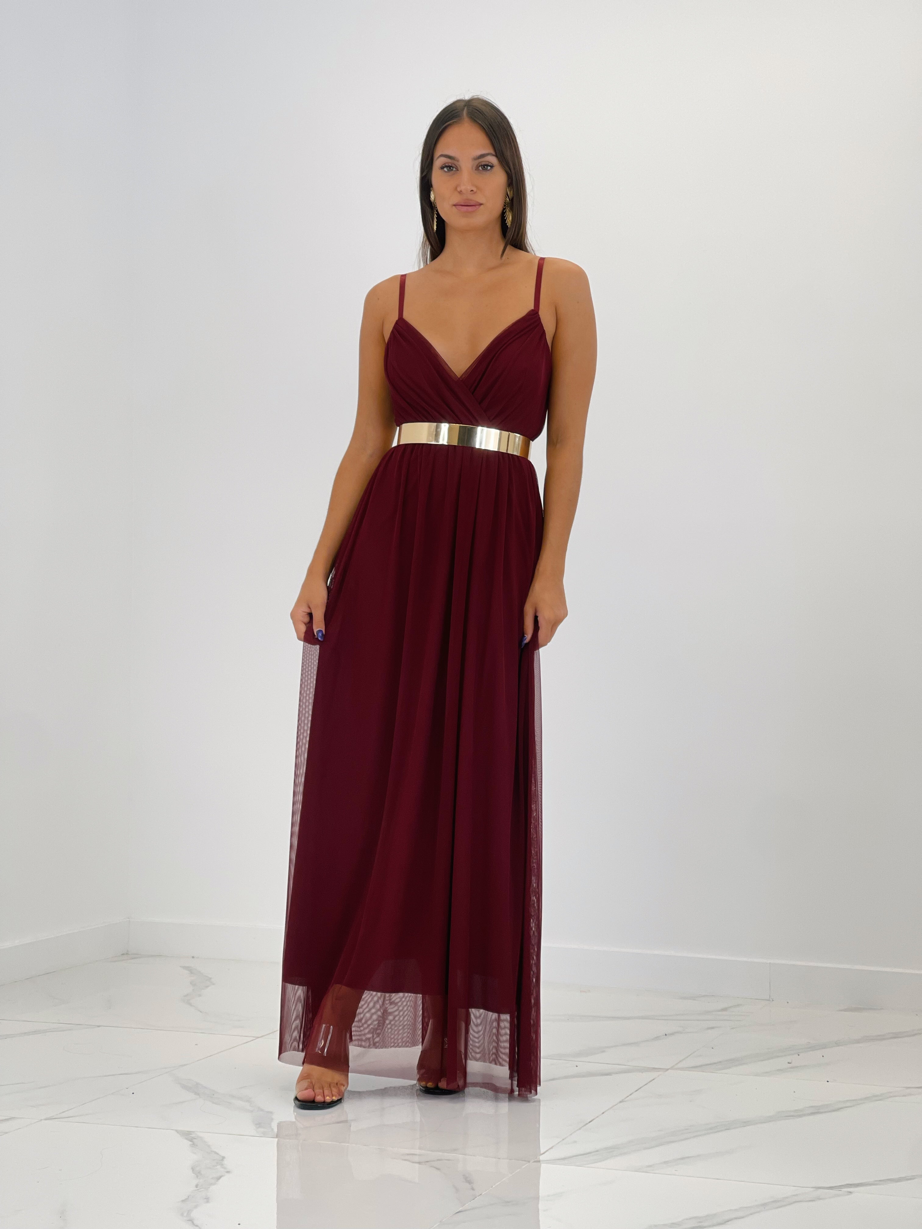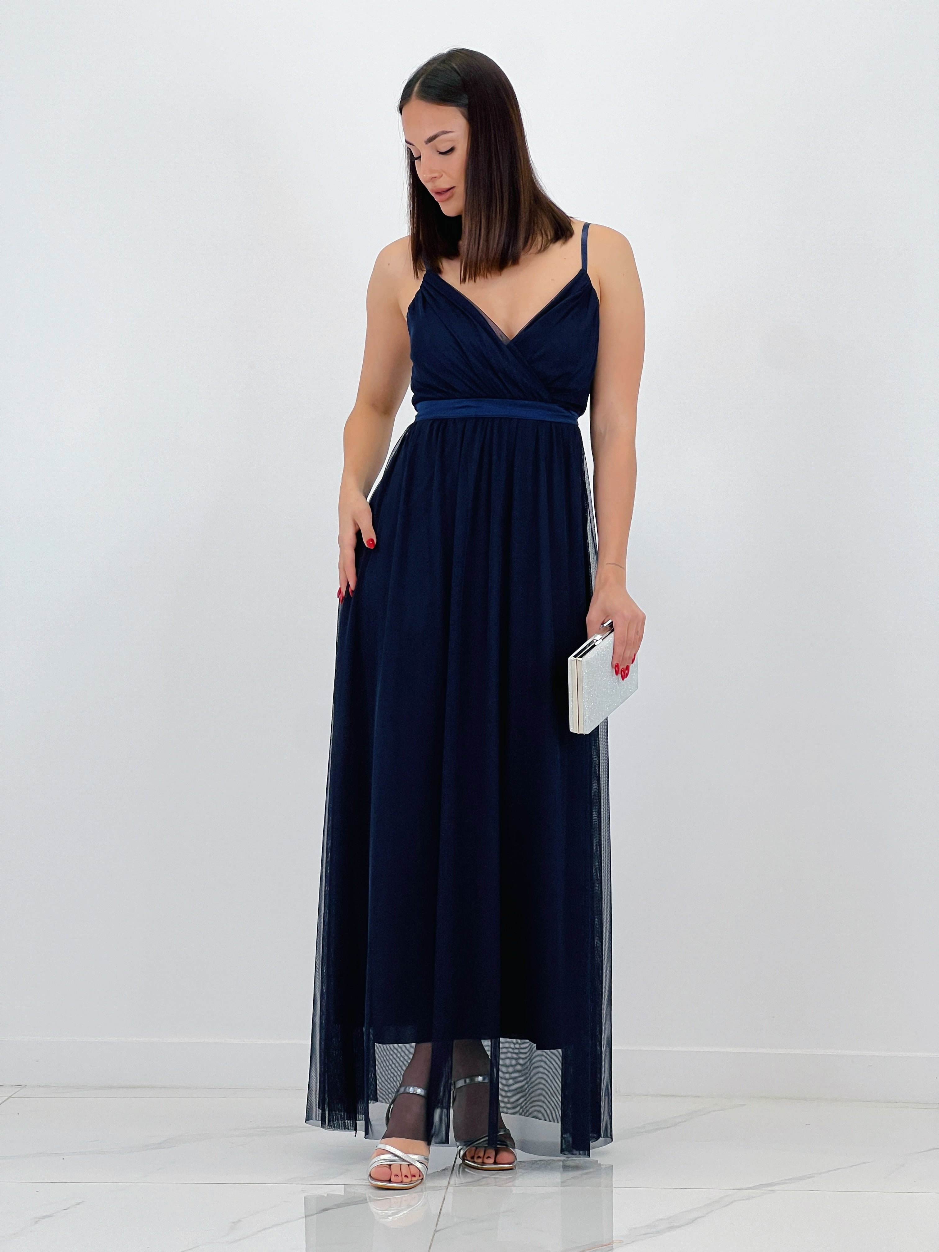 Este elegante vestido Melodi cuenta con detalles únicos que lo hacen perfecto para cualquier ocasión. Confeccionado en tul, posee un escote cruzado y tirantes regulables para brindar un ajuste cómodo y versátil. Además, viene con un forro a tono y un cinturón de cinta satinada incluido.