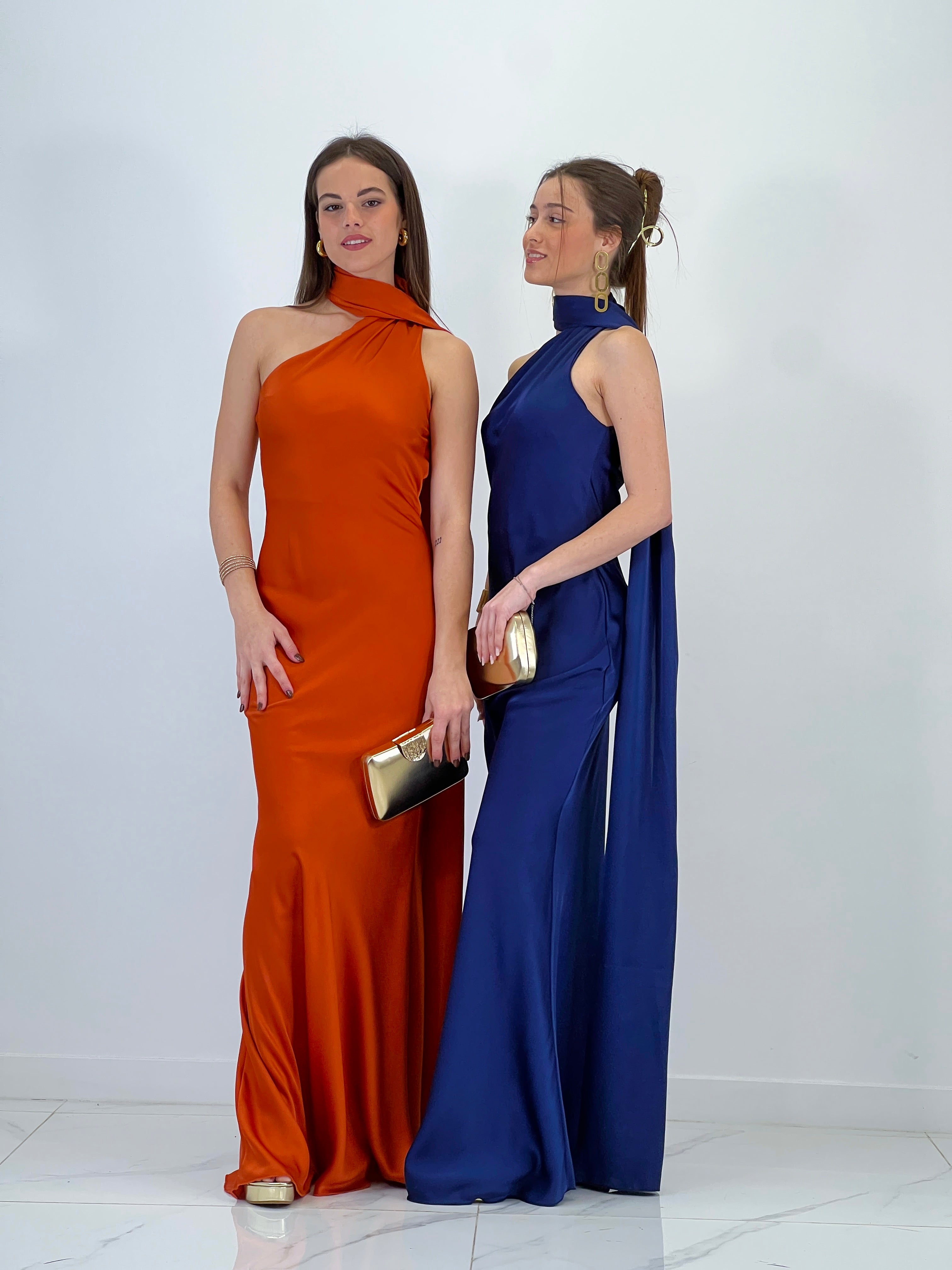 Disfruta de un look elegante y sofisticado con nuestro vestido de raso Priscila. Perfecto para eventos especiales como graduaciones. Su diseño sin aberturas y con un escote asimétrico te dará un toque único. Además, cuenta con un fular que se puede usar de diferentes maneras, agregando un estilo choker a tu look.