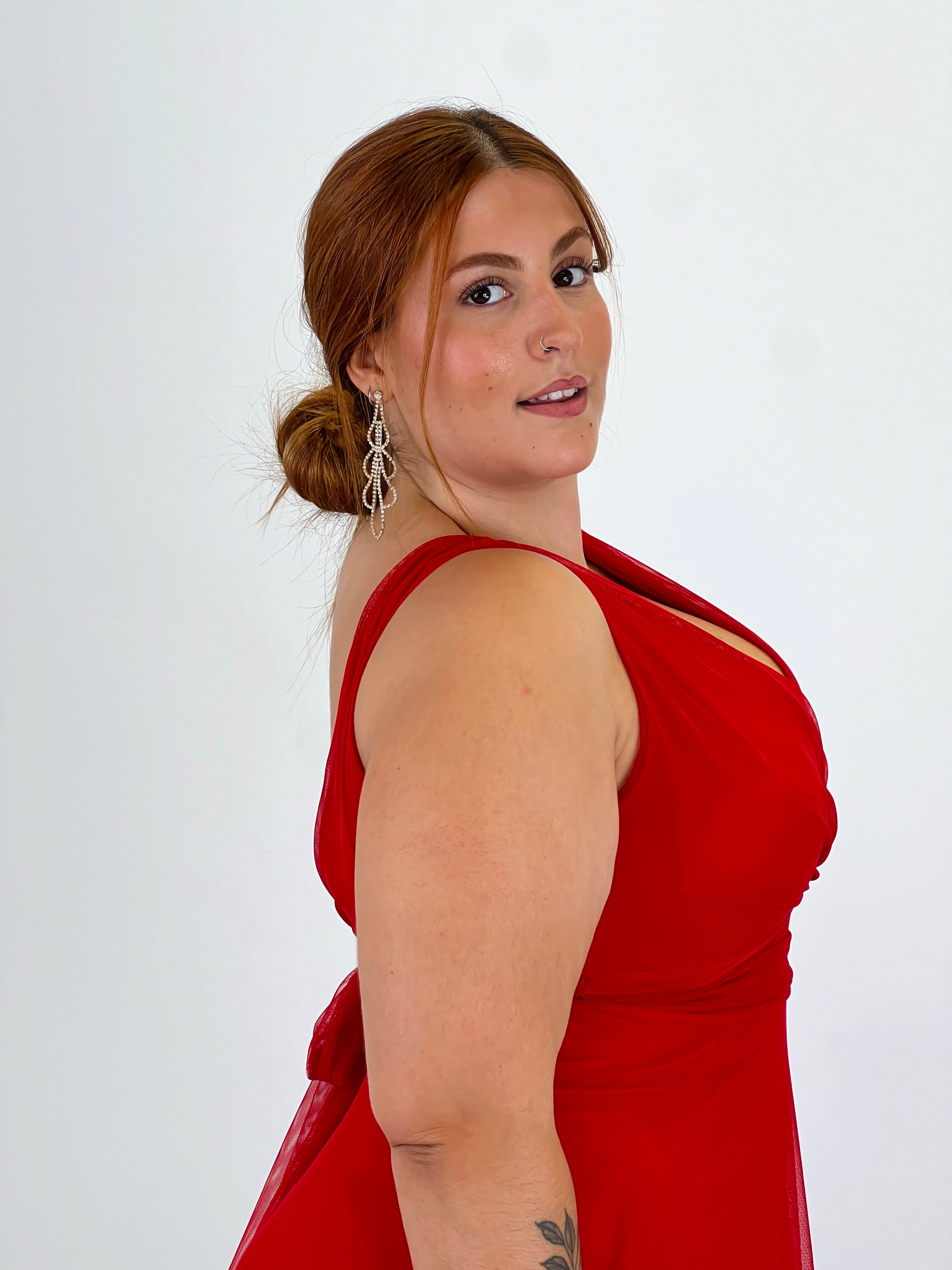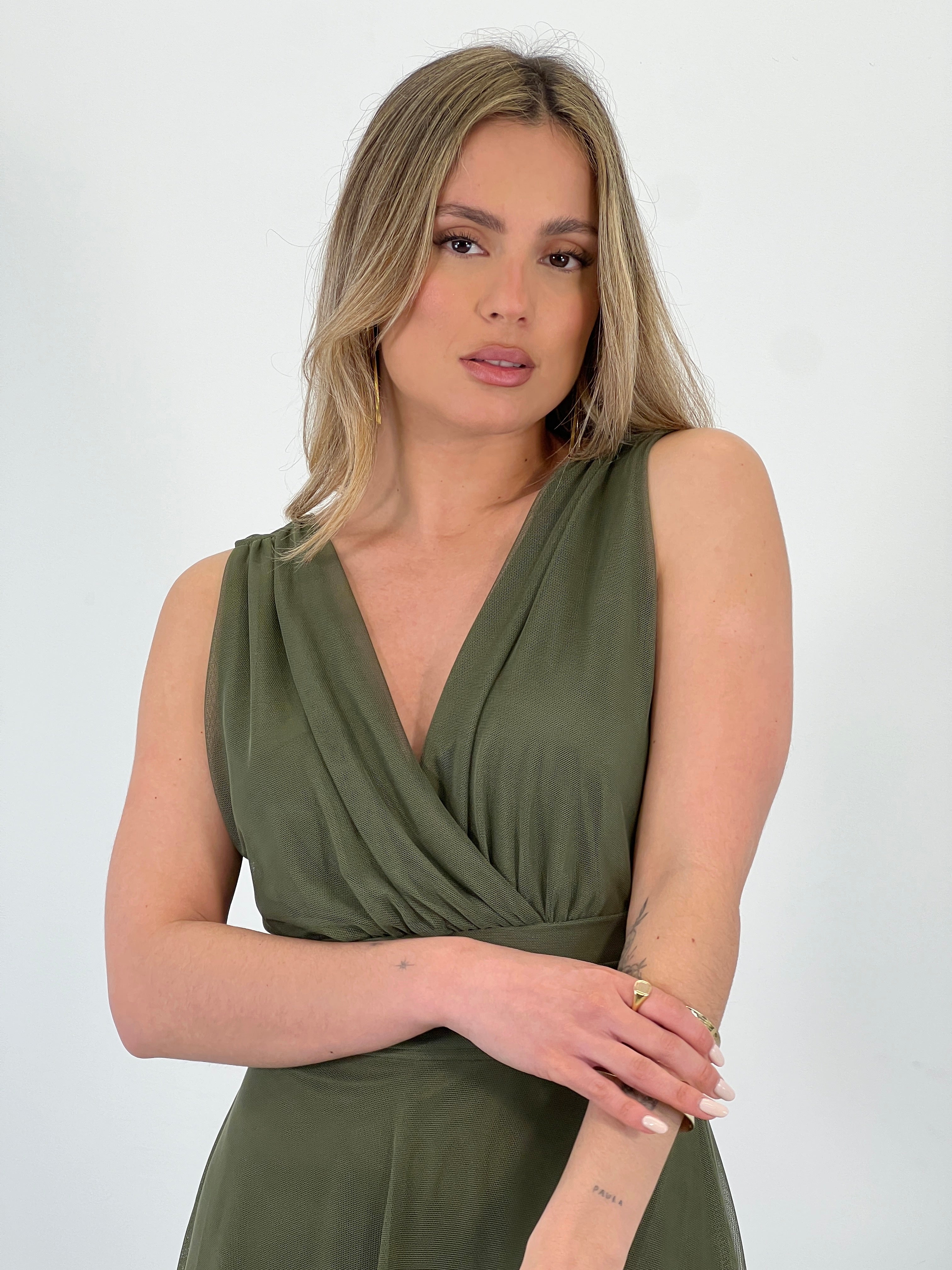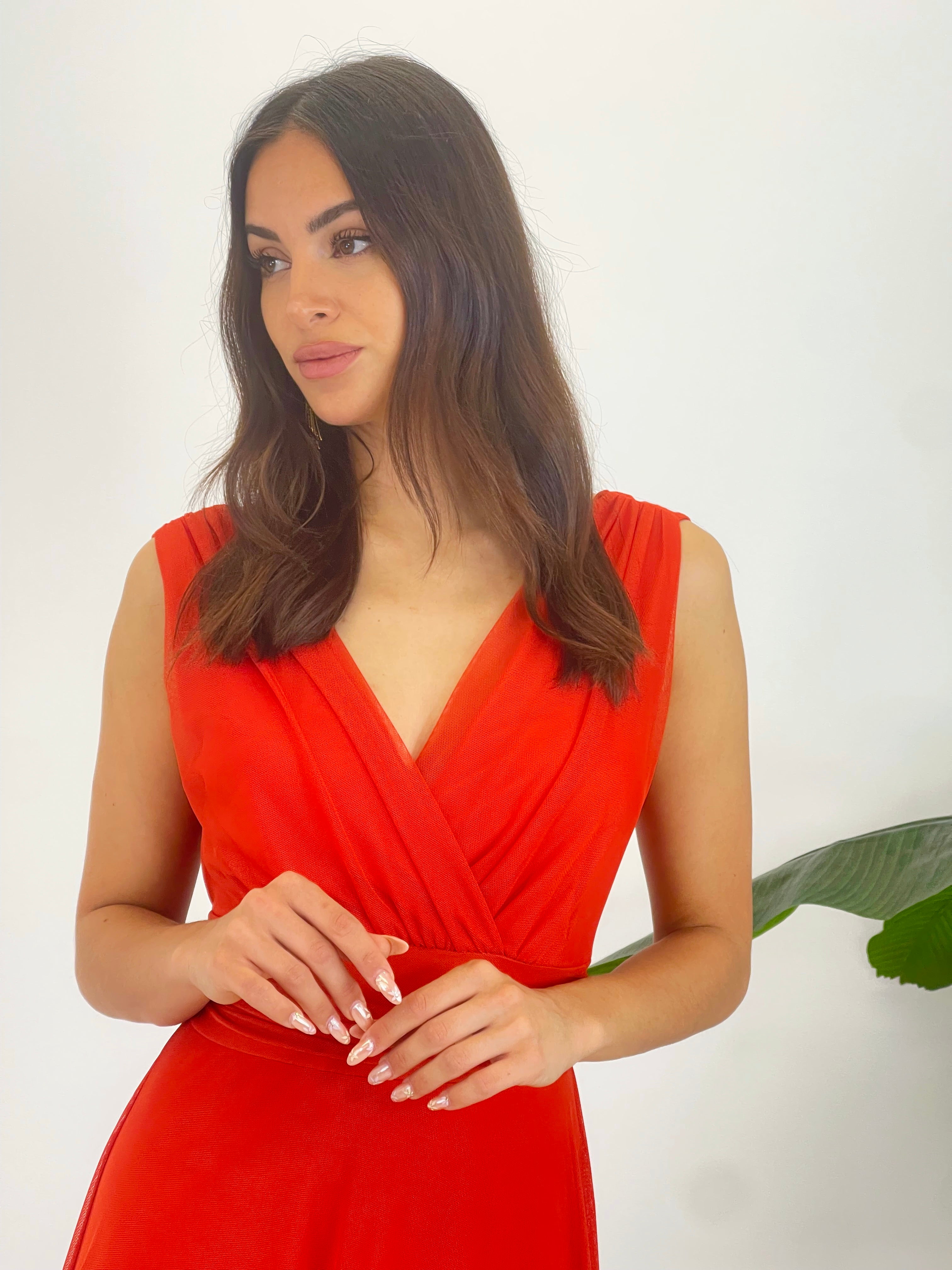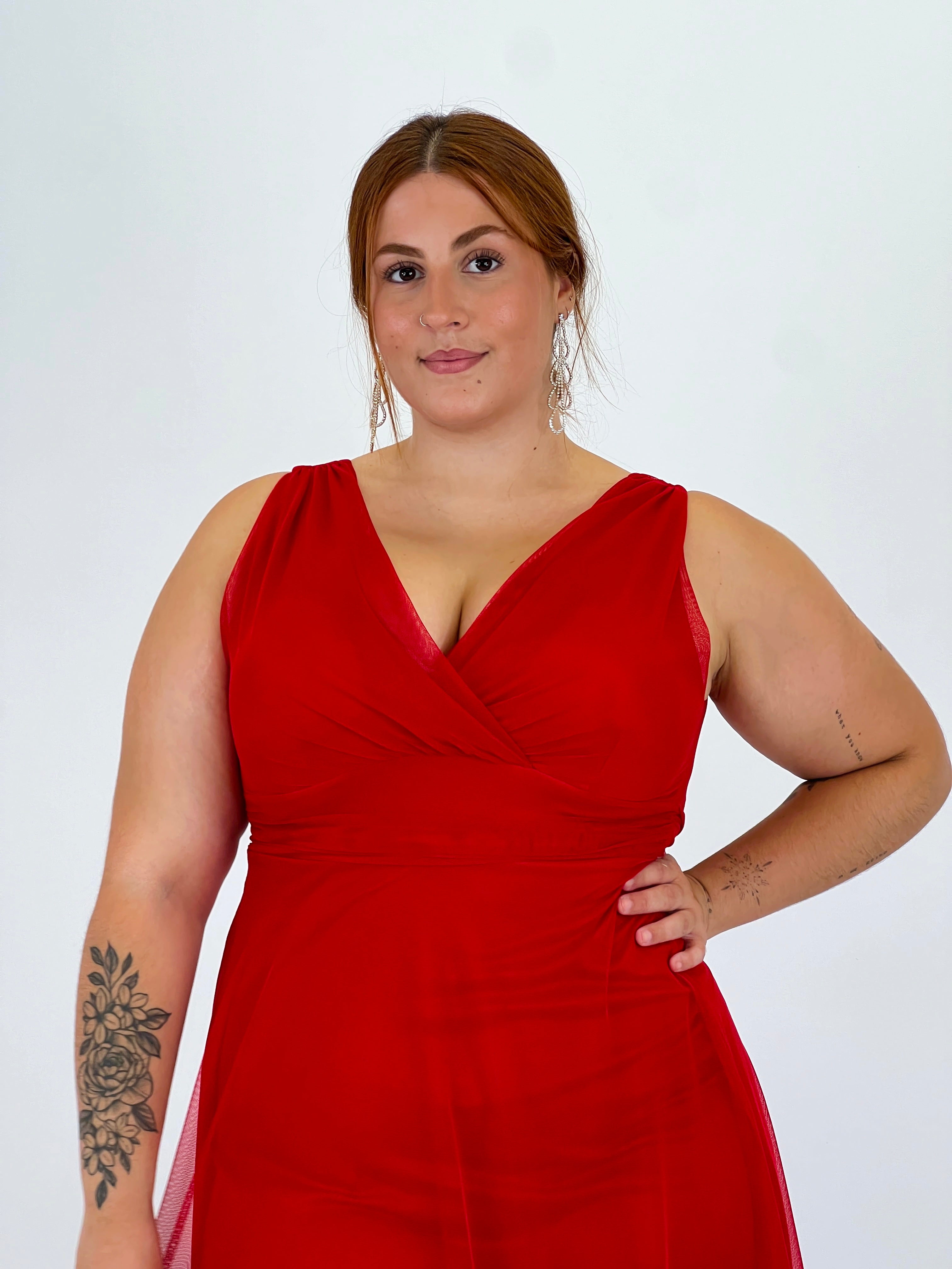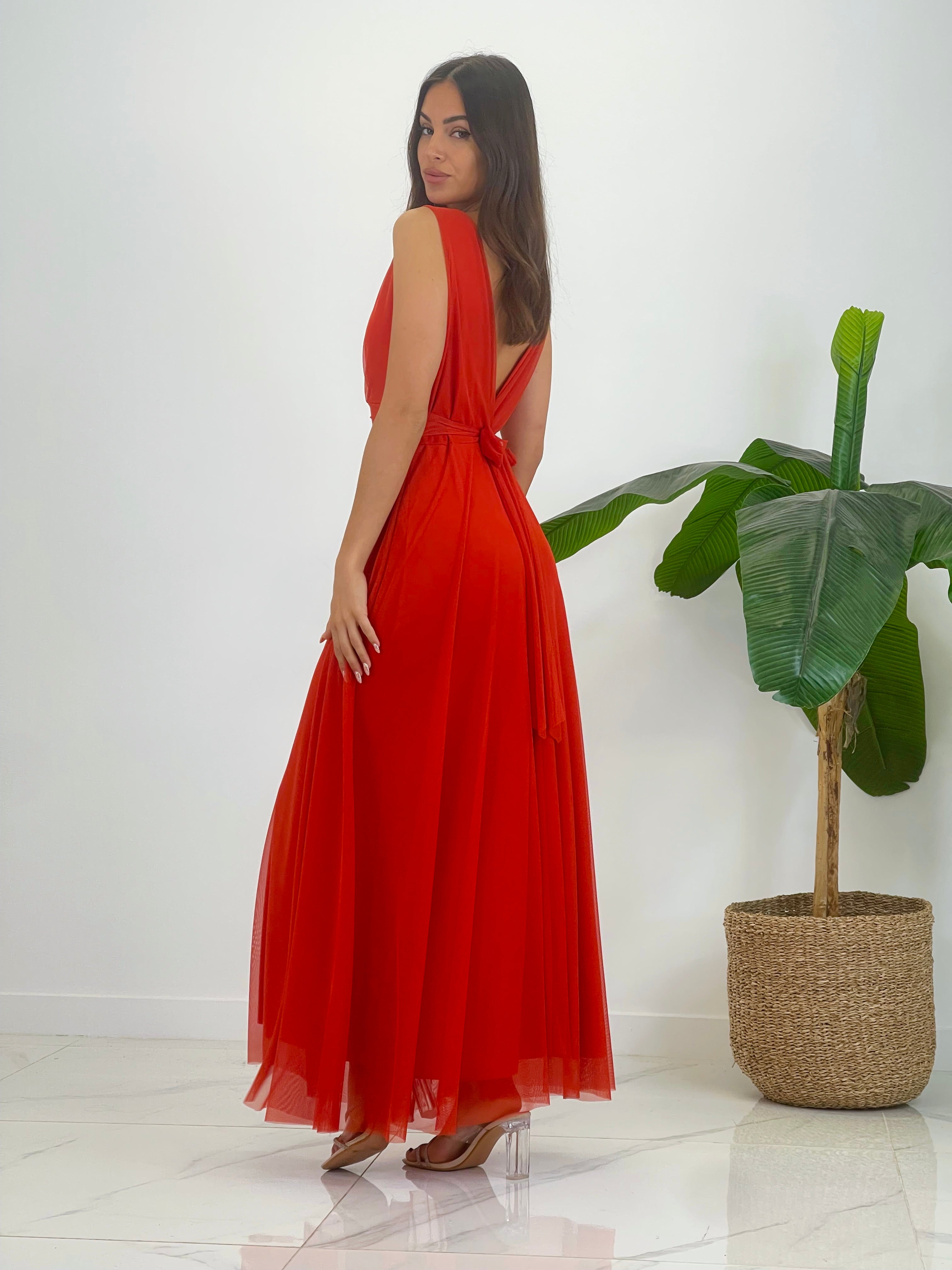 Este vestido largo Alexandra está confeccionado en tul, ofreciendo un toque elegante y delicado. Su escote cruzado resalta el pecho, mientras que la cintura fruncida y la lazada en la espalda te permite ajustarlo a tu silueta. Además, cuenta con un forro interior para mayor comodidad.