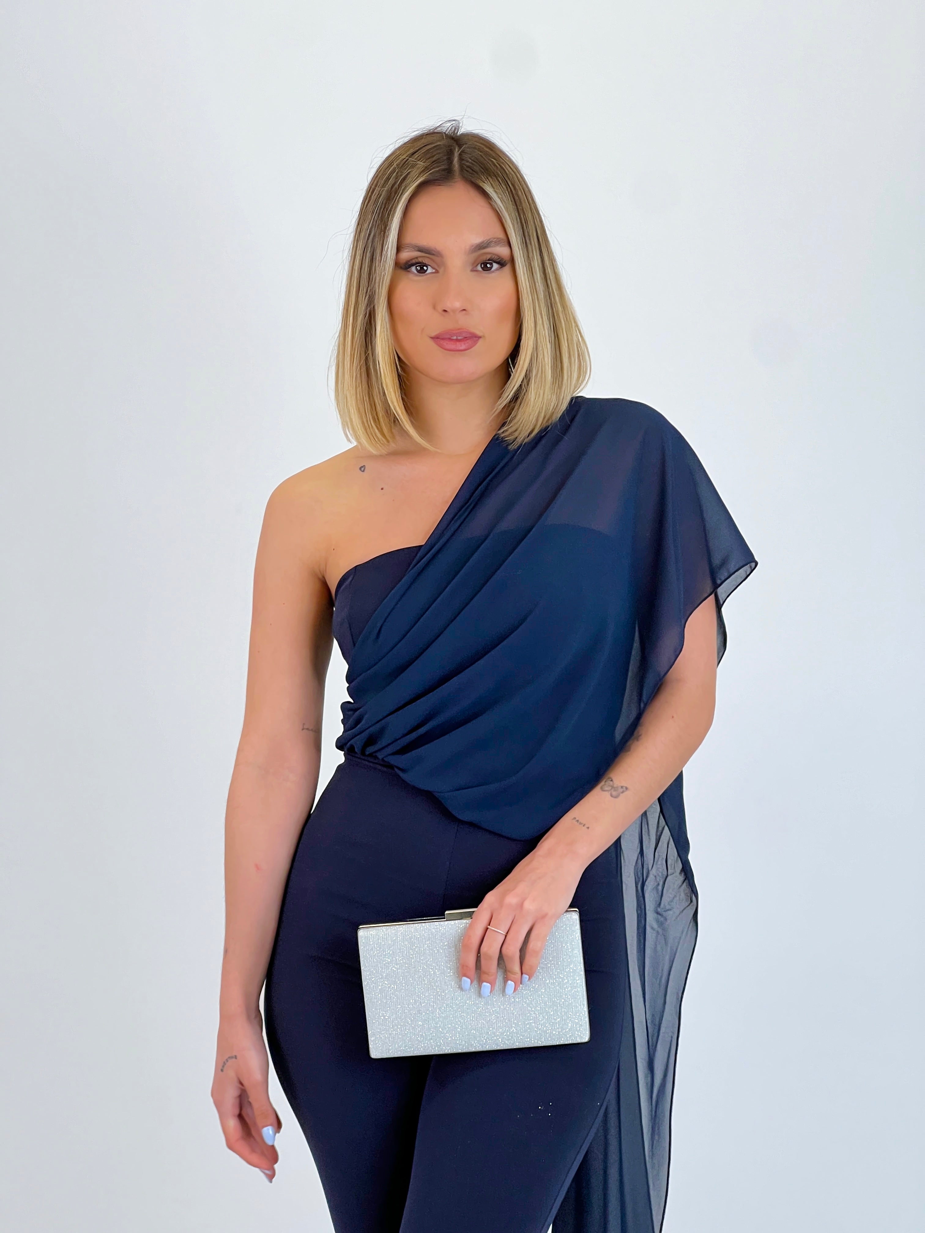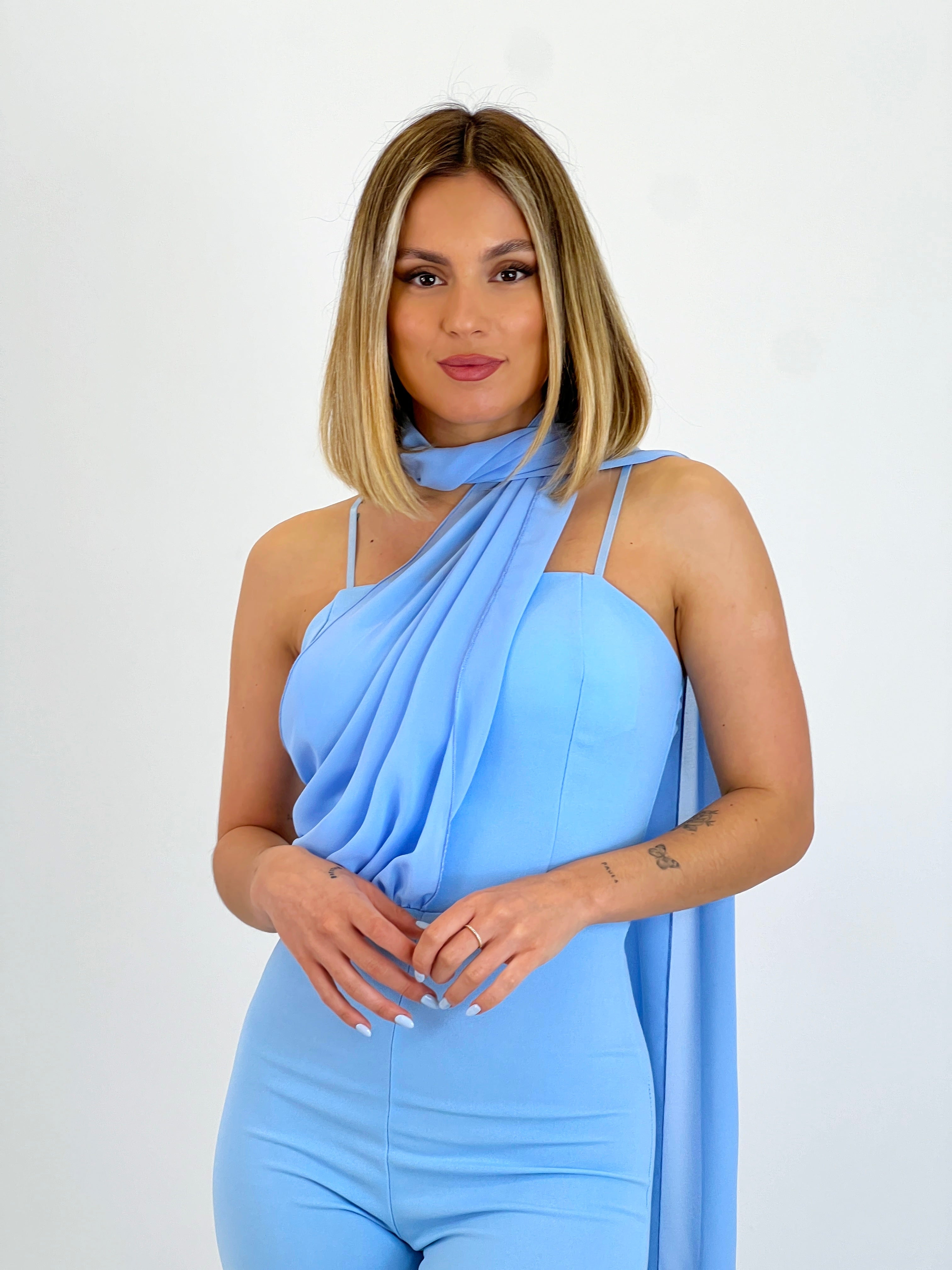 Añade un toque elegante a tu look con nuestro mono combinado Gloria. Con un trozo de tul en la cintura, puedes anudarlo al cuello para un ajuste perfecto. Perfecto para cualquier ocasión.