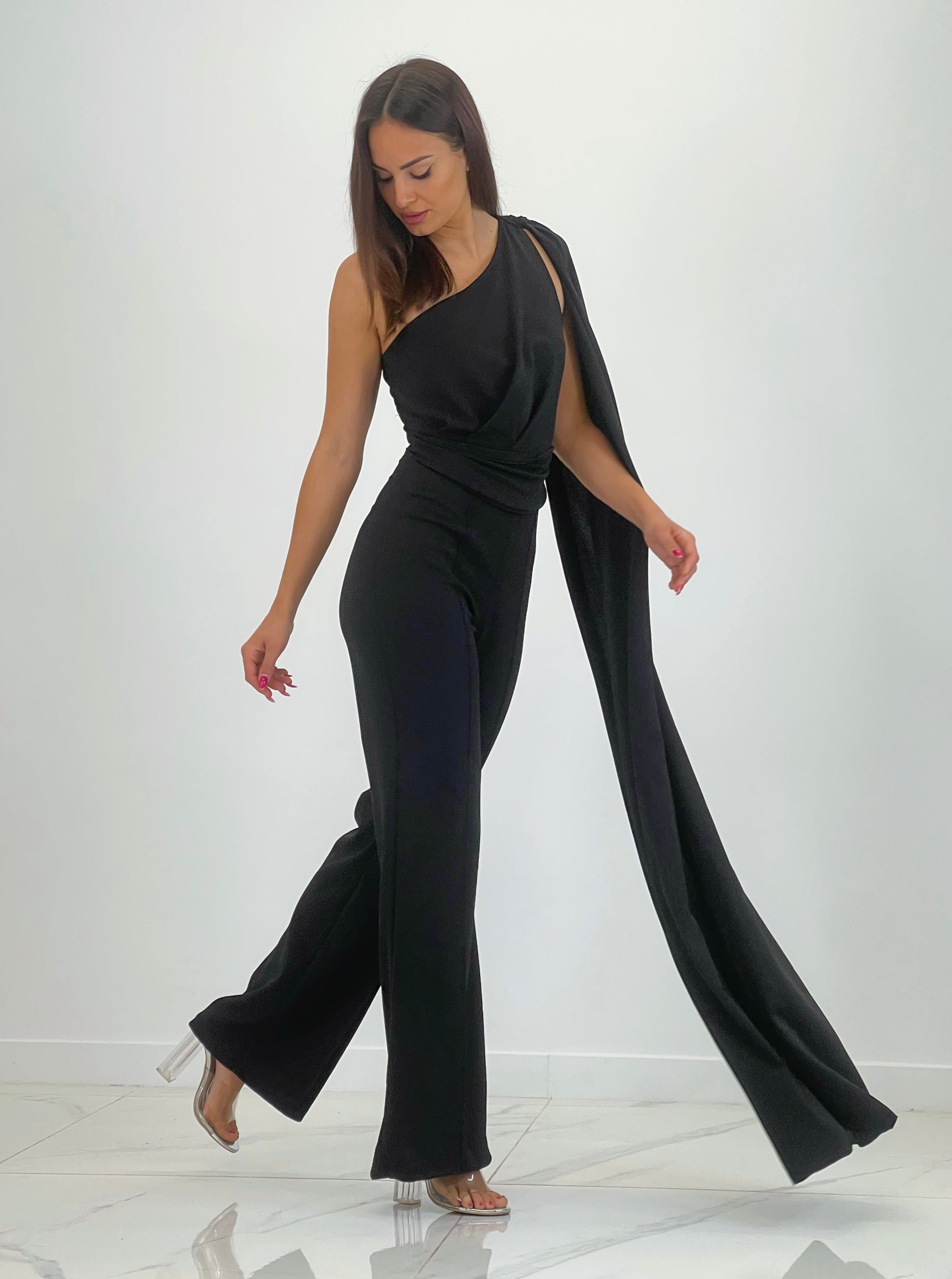 Este elegante mono crepé asimétrico Gladis es perfecto para eventos y ocasiones especiales. Su ajuste de pierna ancha y caída en el hombro lo hacen único y moderno. Disfruta de su comodidad y estilo mientras te destacas en cualquier ocasión.