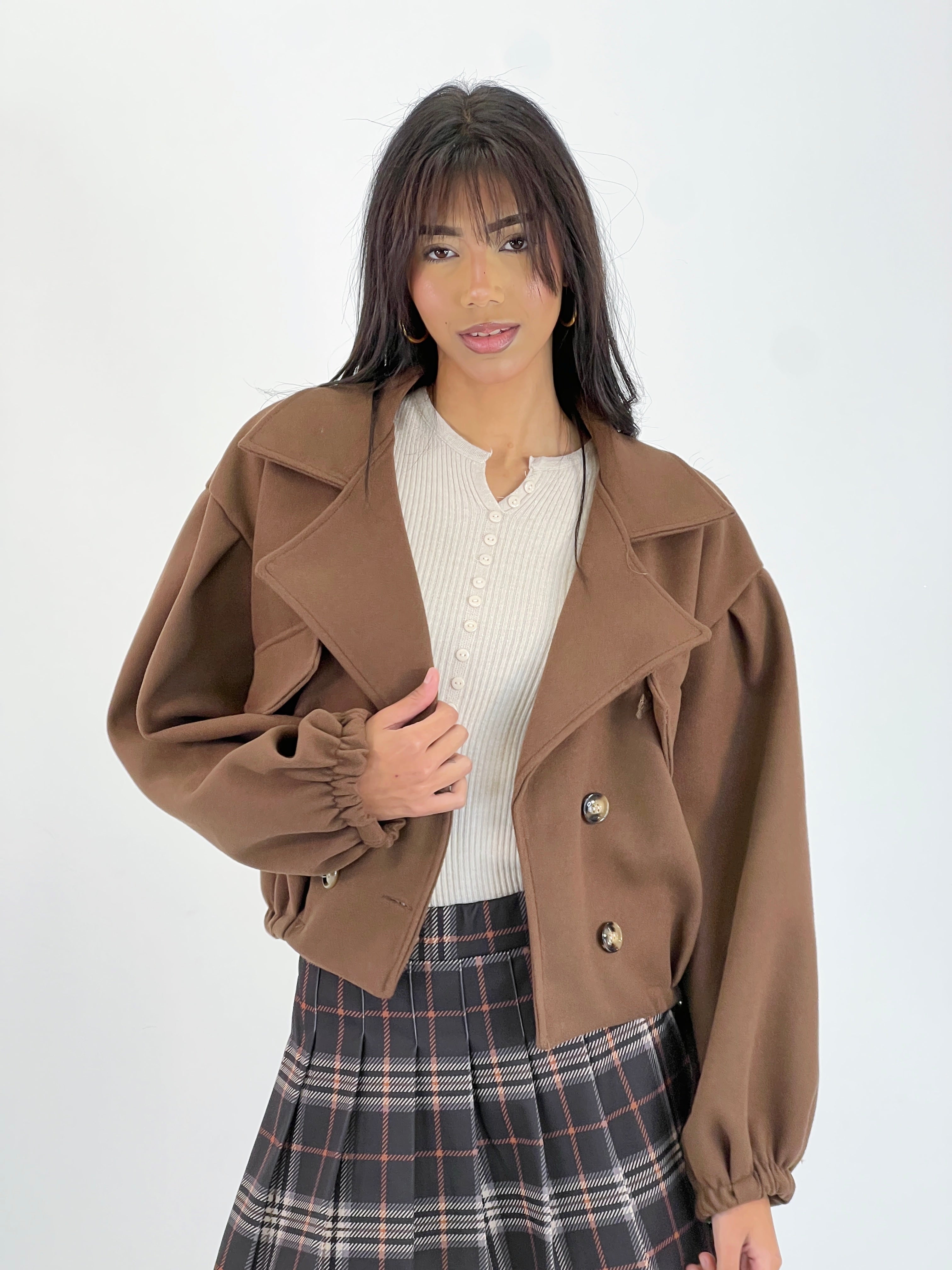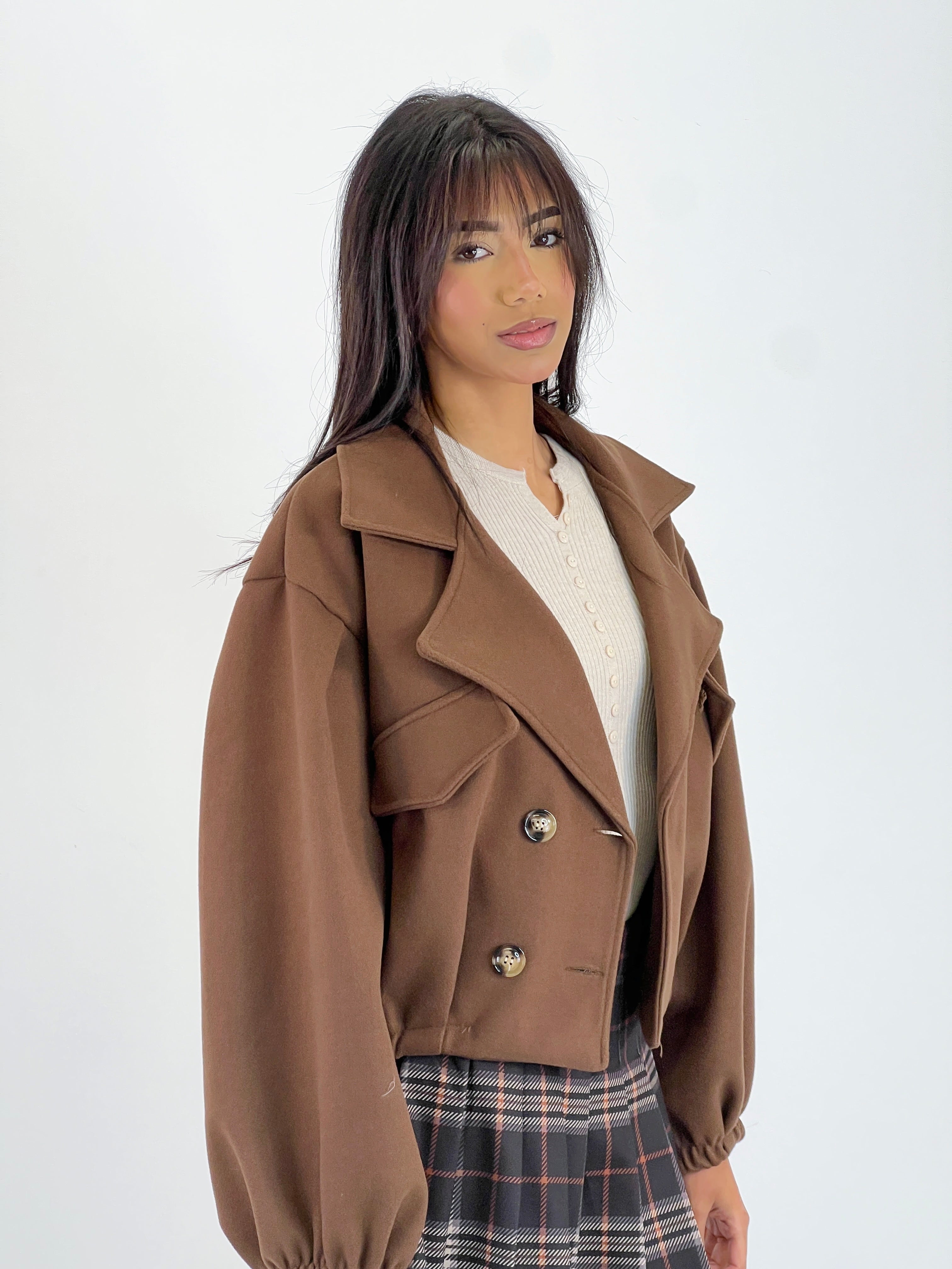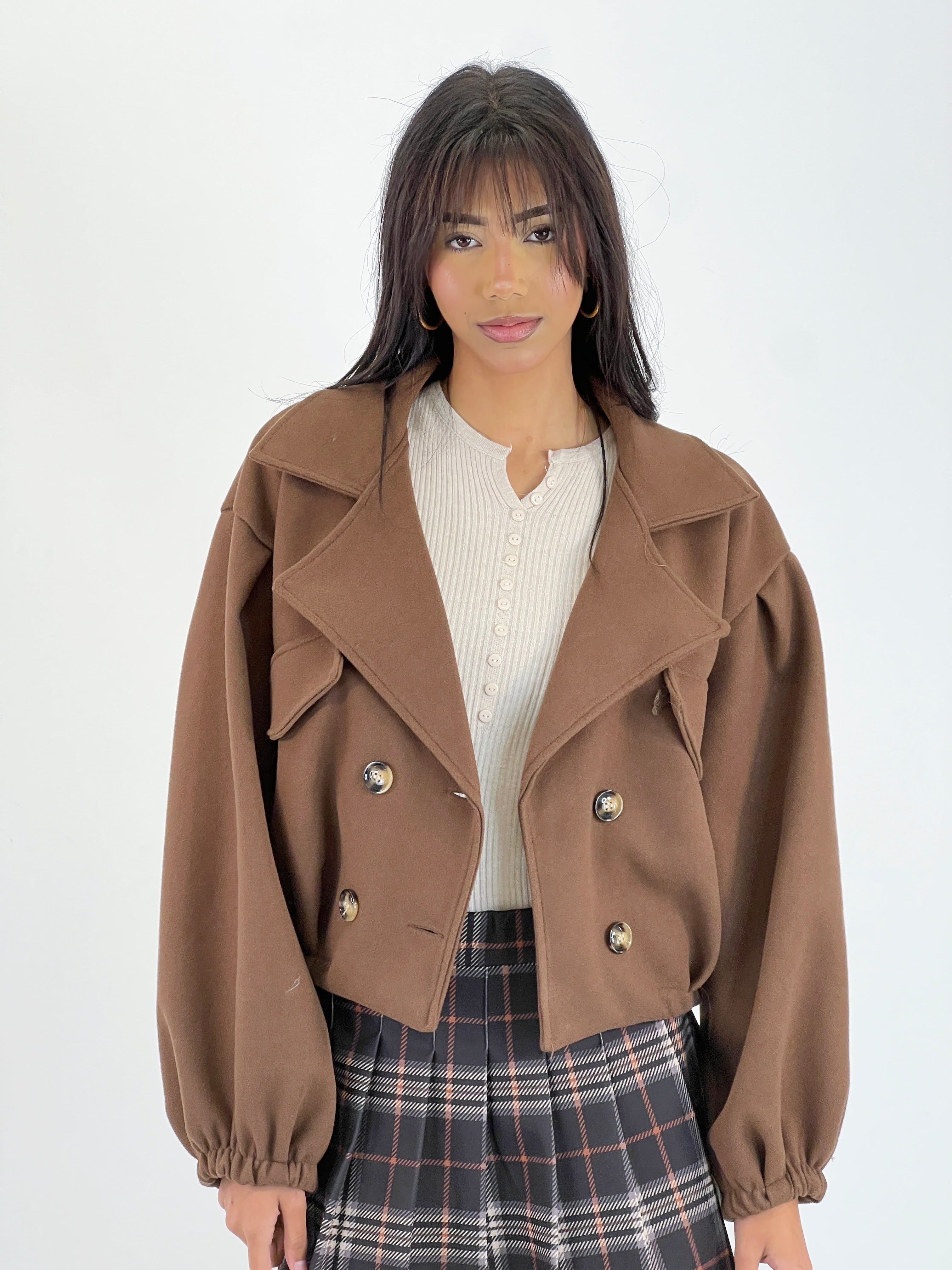 Este abrigo corto de paño combina elegancia y funcionalidad, ofreciendo una prenda cálida y resistente ideal para el clima frío. Su confección en tejido de paño garantiza durabilidad y un acabado refinado. Perfecto para complementar tanto atuendos formales como casuales con un toque sofisticado y práctico.