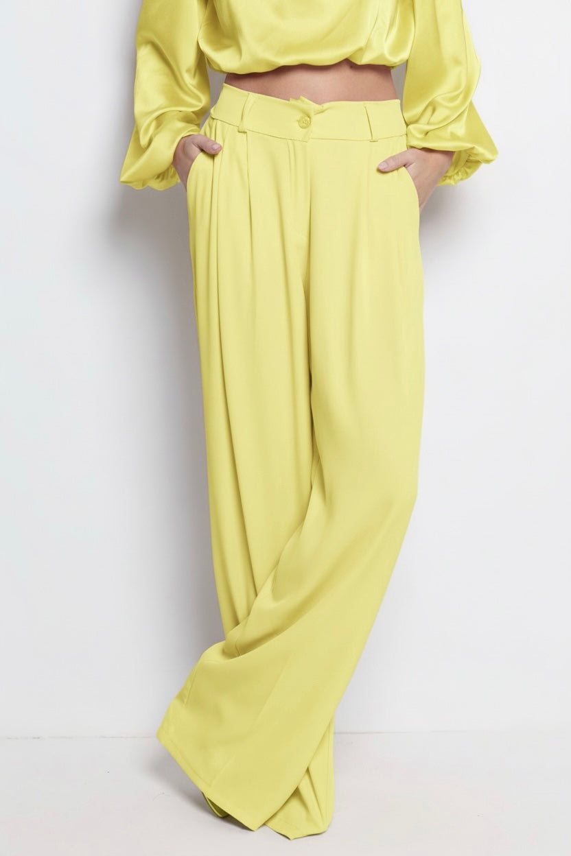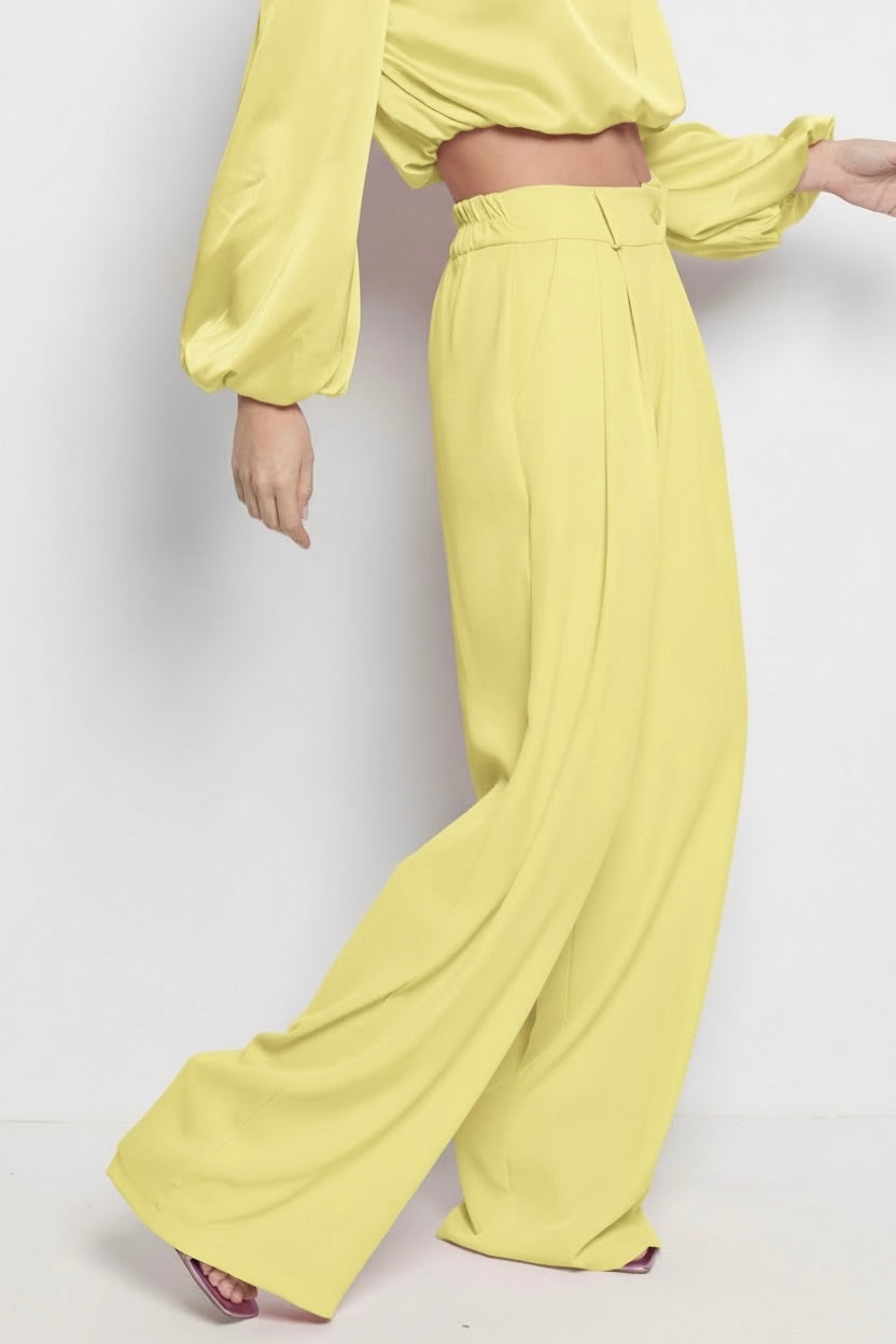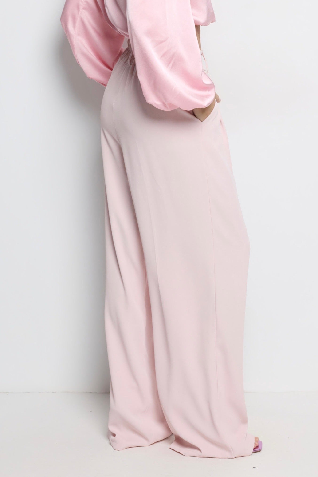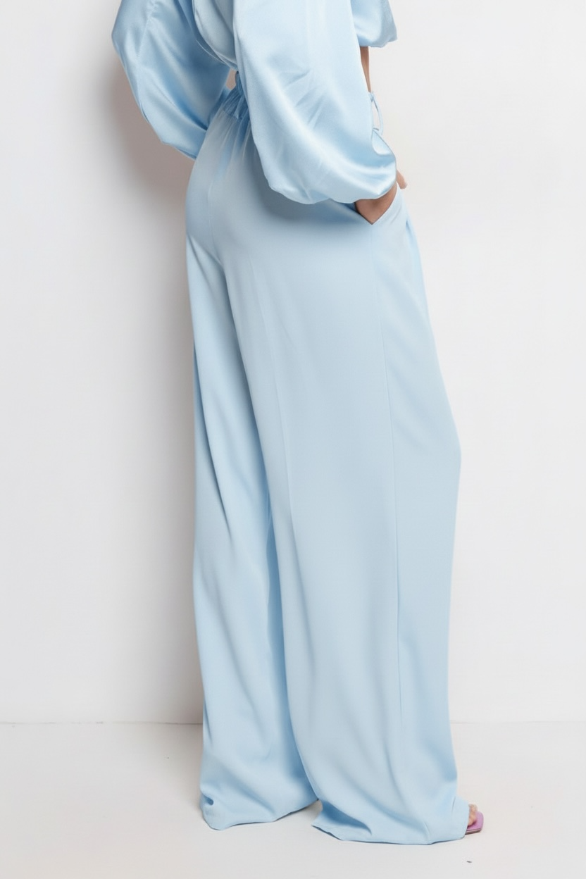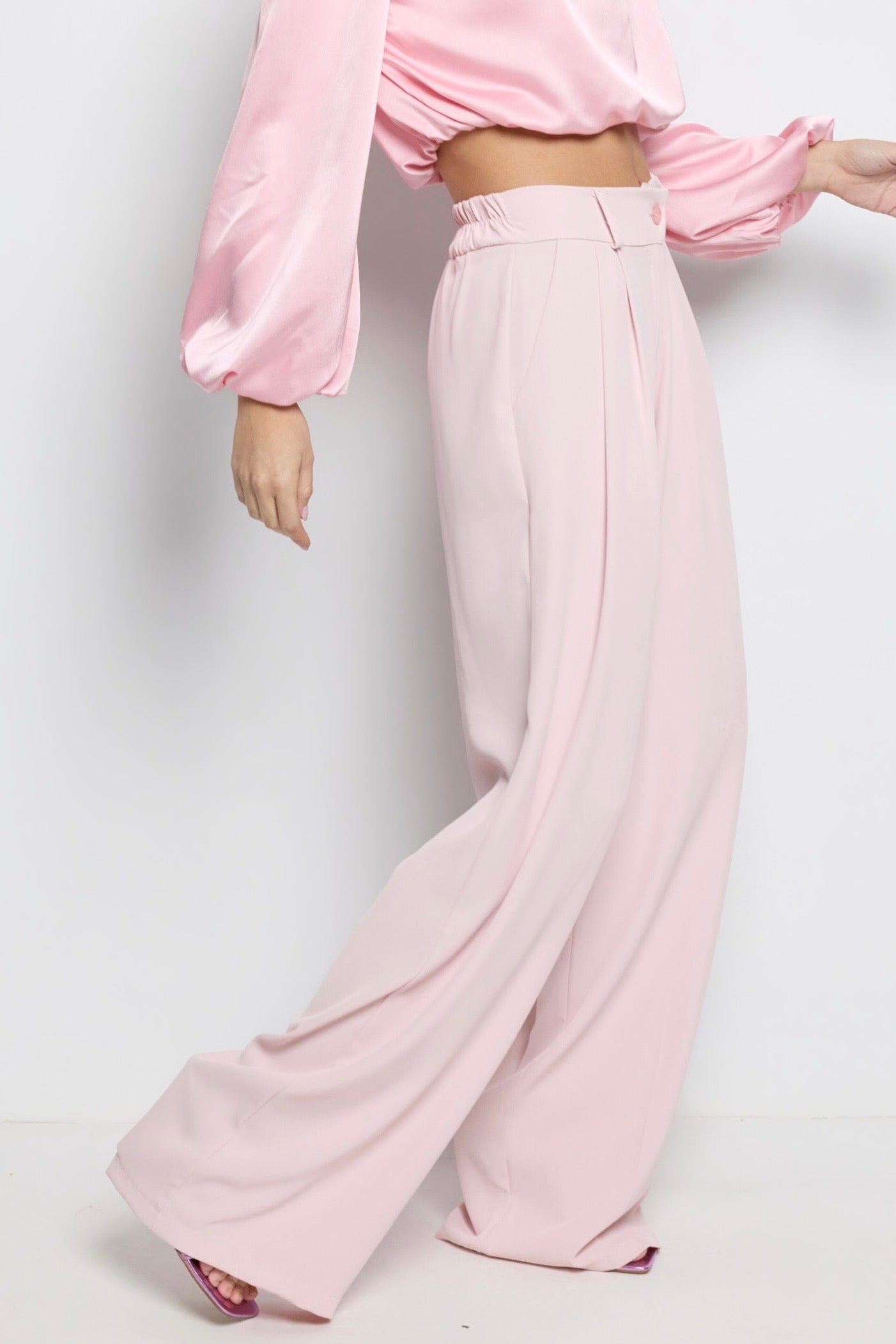 Calças de perna larga com pregas frontais que afinam a silhueta. Cintura reforçada com passadores para um ajuste seguro. Tecido com queda fluida que favorece o movimento. Disponível numa vasta gama de cores para se adaptar ao teu estilo pessoal.