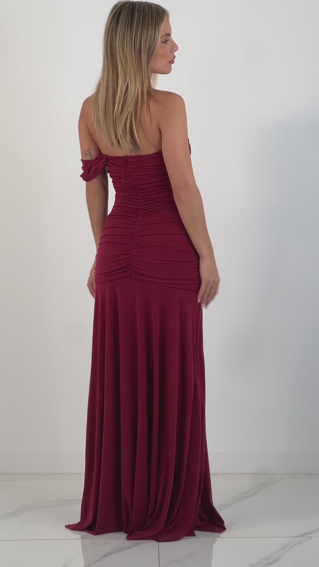 Este vestido largo assimétrico destaca pelo seu design com um só ombro que aporta sofisticação e modernidade. A sua cintura drapeada realça a silhueta, enquanto a queda fluida e a forma sereia oferecem um equilíbrio perfeito entre elegância clássica e um toque contemporâneo. Ideal para ocasiões especiais onde se procura uma presença única e estilizada.